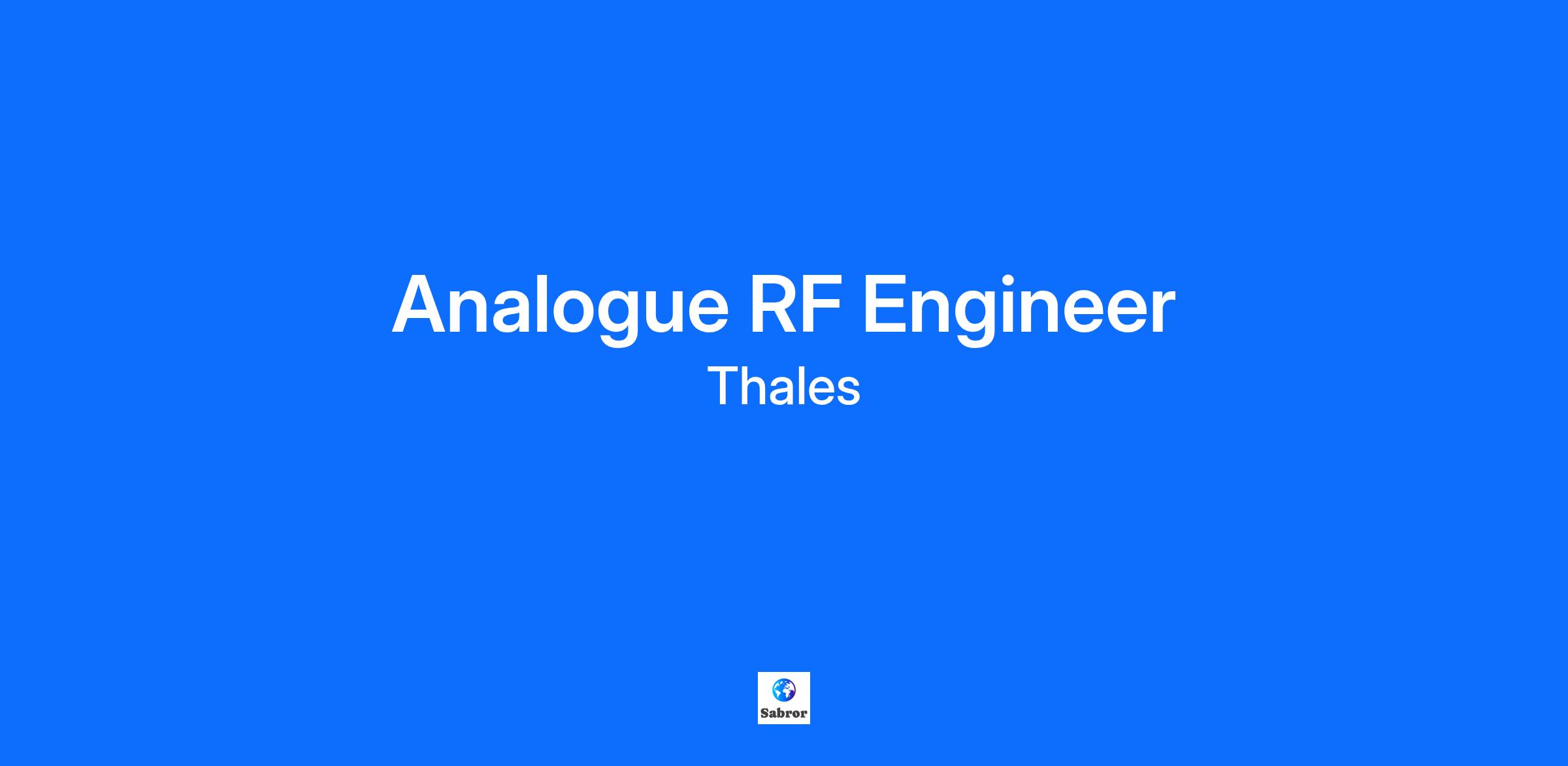 Location: Crawley, United Kingdom Thales people architect solutions at the heart of the defence-security continuum. Interoperable and secure information and telecommunications systems for defence, security, and civil operators, are based upon innovative use of radiocommunications, networks, and cybersecurity. We are ground breaking new digital technologies such as 4G mobile communications, cryptography, cloud computing and big data for use in physical protection systems, and critical information systems. Together we offer fantastic opportunities for committed employees to learn and develop their career with us. At Thales UK, we research, develop, and supply technology and services that impact the lives of millions of people each day to make life better, and keep us safer. We innovate across the major industries of Aerospace, Defence, Security and Space. Your health and well-being matters to us and that’s why we offer you the flexibility to do what’s important to you; whether that’s part time hours, job sharing, home working, or the ability to flex your start and finish times. Where possible, we support a working pattern that suits your lifestyle and helps you reach your ambitions. Analogue RF Engineer Location: Crawley, full-time hybrid working with 3 days in the office, plus travel Ready to drive innovation in cutting-edge hardware that powers secure communications and advanced defence systems across land, air, and sea? What the role has to offer Join us for exceptional growth opportunities and increasing technical responsibility You’ll gain hands-on experience in RF and analogue support, primarily in HF with exciting opportunities in VHF We aim to triple in size over the coming years through self-funded development and a passionate, talented team Our Opportunity Join our team to provide hands-on RF and analogue support, focusing mainly on the HF domain with opportunities to work in VHF as well. Your day-to-day will involve evaluating solutions, troubleshooting, and designing circuits using simulation tools like RF and Spice to enhance development. You’ll create detailed circuit schematics and collaborate closely with PCB layout engineers to bring designs to life. Additionally, you’ll design electronic hardware rigs and assemblies, performing integration, verification, and qualification testing. You’ll produce comprehensive design documentation throughout the product lifecycle—from capturing requirements to defining test specifications. This role offers excellent growth potential, with opportunities to take on increasing technical responsibility as you develop your expertise. Applicants can include suitably experienced RF Network Architects, RF Electronic Hardware Engineers, and Analogue RF Engineers seeking a new challenge. We also welcome applications from Junior Analogue RF Engineers and Associate RF Engineers eager to take the next step in their careers. Building a Future, we can all trust. SIX supplies defence and security customers with secure communications and resilient network, intelligence and surveillance systems, command and control systems and information systems security solutions. Thales designs radios and embedded and tactical communications systems for all three sectors (land, air and sea), identification friend or foe (IFF) systems, radio navigation systems and solutions for electronic communications warfare. Hardware forms the backbone of many of Thales’s state-of-the-art solutions, driven by innovation and the pursuit of new technologies. In this field, you’ll be at the forefront of developing groundbreaking solutions that impress and exceed our customers’ expectations. What We Offer You We offer a competitive salary and benefits package designed to support our employees’ wellbeing and professional growth, which includes: Performance related annual bonus (VCP) Pension – match like-for-like up to 7% of annual base salary Life Assurance – 2 x base salary minimum (8 x salary if part of the pension scheme) Income Protection – 50% of salary less state benefits for 5 years Annual Leave – 201 hours, bank holidays, plus 1 company day Private Medical Insurance - Couples cover Half day every Friday, usually finishing around 1:00pm 24/7 Employee Assistance Programme 24 hours paid leave for volunteering activities Access to flexible benefits and discounts – dental insurance, buying & selling annual leave, cycle to work, and many more Key Responsibilities and Tasks Lead the design and development of innovative, reliable solutions that push the boundaries of technology and deliver real-world impact Conduct thorough testing, measurement, debugging, and verification to ensure products meet the highest standards of performance and quality Utilize advanced simulation and analysis tools to optimize designs and anticipate challenges before they arise Present complex technical issues clearly and confidently during design reviews, influencing decision-making and driving project success Prepare detailed, well-structured design documents that guide teams and stakeholders through every stage of development Provide proactive technical support to production teams, ensuring smooth transitions from design to manufacturing and maintaining product excellence About You At Thales, we are committed to equal opportunities and welcome all talented individuals to consider joining our team. So even if you don't match every statement below but feel you have some of the experience, knowledge or skills needed for this role, we encourage you to apply. It will take all of us working together to deliver solutions to the world’s most critical challenges. BEng Hons in Electrical & Electronic Engineering, or Electronic & Communication Engineering, or related discipline and/ or equivalent experience in a relevant engineering discipline Relevant design and product development experience (commercial, industrial, or defence) Knowledge of engineering processes and lifecycles, includ