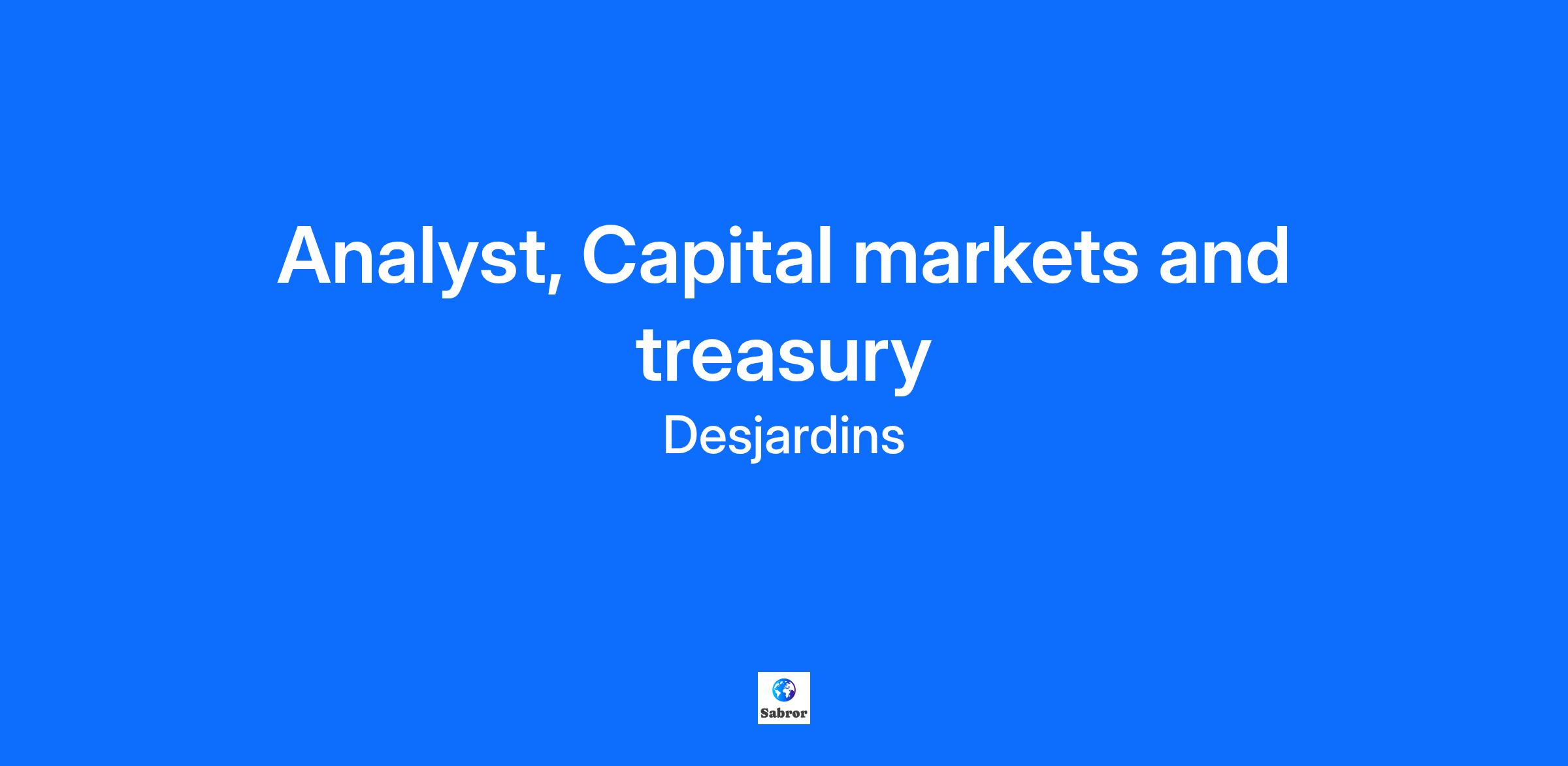Temporary position for 12 months. As a capital markets and treasury analyst, you help carry out financial market, capital market and treasury activities, projects and initiatives. You analyze and diagnose complex issues; provide opinions based on your discipline’s rules; recommend solutions to improve or optimize standards, policies and programs; and propose implementation plans. Your projects and initiatives require extensive knowledge of your line of work. You coordinate the planning, design and execution of projects and initiatives. You help solve complex problems using your analytical skills and extensive knowledge of your line of business. Coordination is critical, so you frequently interact with stakeholders working in other fields. You serve as resource person for your unit, clients and partners. Identify, input, analyze and interpret data to inform management decision-making and monitor the application of management policies and practices. More specifically, you will be required to: Identify, input, analyze and interpret data to inform management decision-making and monitor the application of management policies and practices. Make recommendations Analyze risks, prepare reports, propose solutions and recommendations, and provide advice on how to implement recommendations Prepare and propose action plans to address issues in accordance with rules and parameters Help develop, implement and update policies, practices and standards. What we offer* Competitive salary and annual bonus 4 weeks of flexible vacation starting in the first year Defined benefit pension plan that provides predictable, stable income throughout retirement Group insurance including telemedicine Reimbursement of health and wellness expenses and telework equipment * Benefits apply based on eligibility criteria. What you bring to the table Bachelor's degree in a related field A minimum of four years of relevant experience Please note that other combinations of qualifications and relevant experience may be considered Knowledge of French is required Action oriented, Ambiguity, Business insight, Complexity, Customer Focus, Differences, Nimble learning #LI-Hybrid Trade Union (If applicable) At Desjardins, we believe in equity, diversity and inclusion. We're committed to welcoming, respecting and valuing people for who they are as individuals, learning from their differences, embracing their uniqueness, and providing a positive workplace for all. At Desjardins, we have zero tolerance for discrimination of any kind. We believe our teams should reflect the diversity of the members, clients and communities we serve. If there's something we can do to help make the recruitment process or the job you're applying for more accessible, let us know. We can provide accommodations at any stage in the recruitment process. Just ask! Job Family General finance and accounting (FG) Unposting Date 2025-10-2 Desjardins Group is the largest cooperative financial group in North America. We're the choice for over 52,000 employees and we're named one of Canada's top employers by Mediacorp and Forbes. We offer a full range of financial products and services and share our expertise in personal services, business services, wealth management, life and health insurance, and property and casualty insurance. Pursuing a career at Desjardins means being part of an organization that puts people first. The jobs you found aren’t the right fit? Introduce yourself: we want to know you!