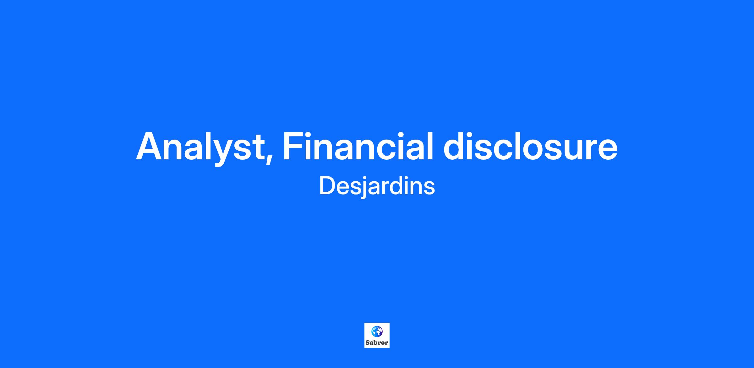 As a financial disclosure analyst, you help prepare, analyze, disclose and monitor financial statements for Desjardins’s financial, statutory, regulatory and strategic reporting. You analyze and help diagnose issues, provide opinions in accordance with your discipline’s rules, and help develop recommendations and implementation plans. You develop tools, methods and processes. Your projects and initiatives require extensive knowledge of your line of work. You share ideas and help solve problems using your analytical skills, extensive knowledge of your line of business and ability to manage complexity. You interact with stakeholders working in other fields. You provide discipline-specific support to your unit, clients and partners. More specifically, you will be required to: Lead specialized accounting and financial reporting initiatives. Perform, validate and analyze accounting and financial transactions in a timely manner while ensuring that data is complete and compliant with the organization’s accounting policies and standards. Identify, input, analyze and interpret data to inform management decision-making and monitor the application of management policies and practices. Make recommendations. Analyze risks and write reports. Prepare recommendations and provide advice on how to implement them. Help prepare and propose action plans to address issues in accordance with rules and parameters. Develop and write methods and processes. What we offer* Competitive salary and annual bonus 4 weeks of flexible vacation starting in the first year Defined benefit pension plan that provides predictable, stable income throughout retirement Group insurance including telemedicine Reimbursement of health and wellness expenses and telework equipment * Benefits apply based on eligibility criteria. What you bring to the table Bachelor's degree in a related field A minimum of two years of relevant experience Please note that other combinations of qualifications and relevant experience may be considered Knowledge of French is required Intermediate advanced proficiency of English due to the nature of the duties or work tools or because the position involves interactions with English-speaking partners, members and/or clients Action oriented, Business insight, Complexity, Customer Focus, Differences, Nimble learning Desjardins it's a world of career possibilities. Explore different fields of work and find what you're passionate about. Click here Trade Union (If applicable) At Desjardins, we believe in equity, diversity and inclusion. We're committed to welcoming, respecting and valuing people for who they are as individuals, learning from their differences, embracing their uniqueness, and providing a positive workplace for all. At Desjardins, we have zero tolerance for discrimination of any kind. We believe our teams should reflect the diversity of the members, clients and communities we serve. If there's something we can do to help make the recruitment process or the job you're applying for more accessible, let us know. We can provide accommodations at any stage in the recruitment process. Just ask! Job Family General finance and accounting (FG) Unposting Date 2025-09-30 Desjardins Group is the largest cooperative financial group in North America. We're the choice for over 52,000 employees and we're named one of Canada's top employers by Mediacorp and Forbes. We offer a full range of financial products and services and share our expertise in personal services, business services, wealth management, life and health insurance, and property and casualty insurance. Pursuing a career at Desjardins means being part of an organization that puts people first. The jobs you found aren’t the right fit? Introduce yourself: we want to know you!