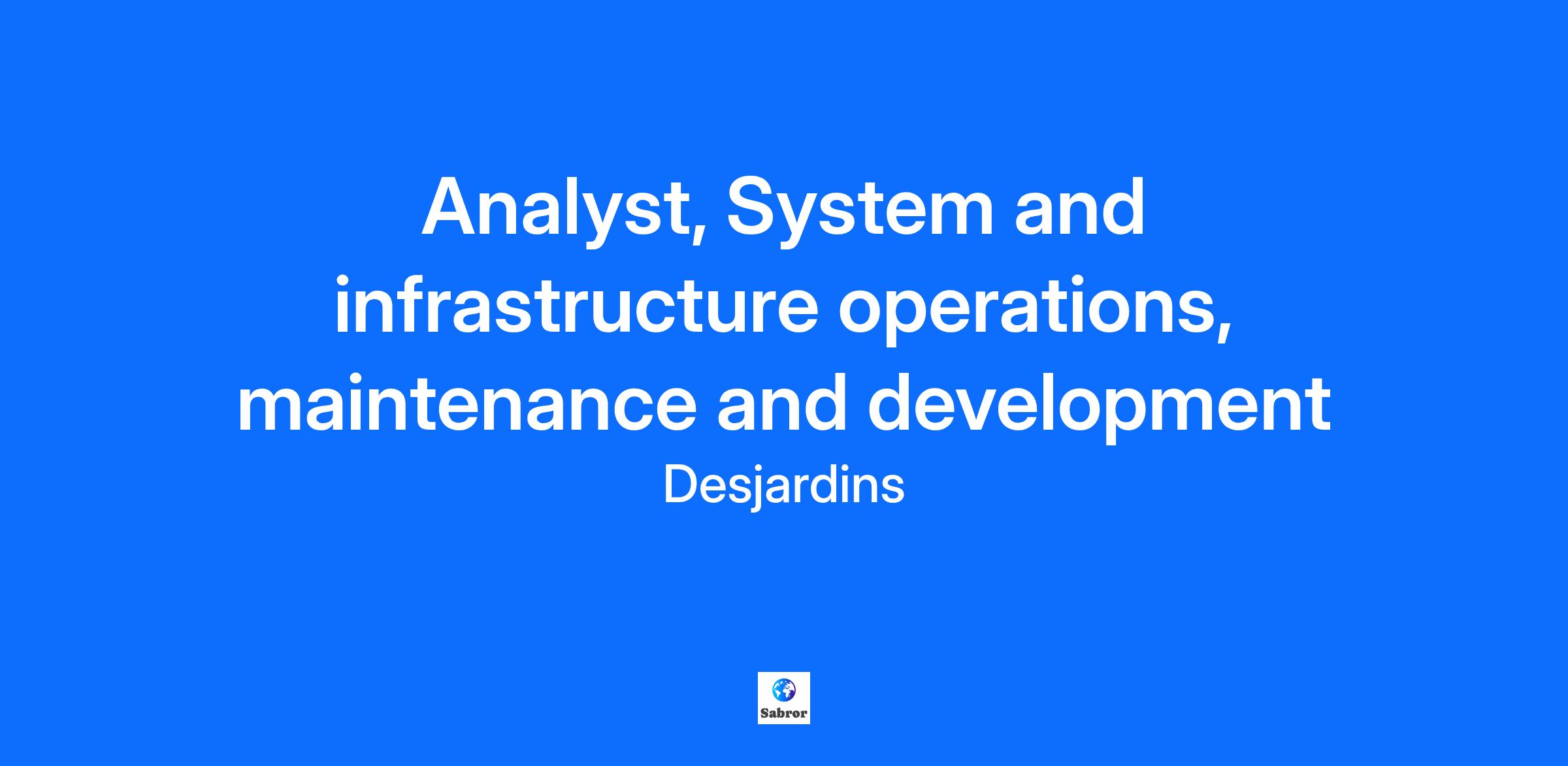 As a systems and infrastructure operations, maintenance and development analyst, you support IT efficiency. You design, configure, administer, maintain and upgrade business solutions, computer networks, management systems, programs and database servers based on the organization's needs. You analyze and diagnose complex issues related to IT rollouts or upgrades in line with business needs and the functions of selected solution modules. You respond to moderately and highly complex development and correction requests. You provide opinions in accordance with your discipline's rules and recommend solutions to improve and optimize standards, policies and programs. You propose implementation plans. Your projects and initiatives require extensive knowledge of your line of work. You coordinate the planning, design and execution of projects, initiatives and activities. You help solve complex problems using your analytical skills and detailed knowledge of your line of business. Coordination is critical. You interact with stakeholders working in other technology fields. You serve as a resource person for your unit, clients and partners. More specifically, you will be required to: Help clients define their needs with a detailed solution design process. Identify, input, analyze and interpret specific functional requirements and data to inform decision-making on choosing appropriate IT solutions and developing applications. Develop functional testing strategies. Analyze risks. Write moderately to highly complex reports and test cases, propose solutions and make recommendations. Provide advice on how to implement recommendations. Prepare and recommend action plans to address issues in accordance with rules and parameters. Actively help develop, implement and update management policies, practices and standards. What we offer* Competitive salary and annual bonus 4 weeks of flexible vacation starting in the first year Defined benefit pension plan that provides predictable, stable income throughout retirement Group insurance including telemedicine Reimbursement of health and wellness expenses and telework equipment * Benefits apply based on eligibility criteria. What you bring to the table Bachelor's degree in a related field A minimum of two four years of relevant experience Please note that other combinations of qualifications and relevant experience may be considered Knowledge of French is required Business insight, Complexity Desjardins it's a world of career possibilities. Explore different fields of work and find what you're passionate about. Click here Trade Union (If applicable) At Desjardins, we believe in equity, diversity and inclusion. We're committed to welcoming, respecting and valuing people for who they are as individuals, learning from their differences, embracing their uniqueness, and providing a positive workplace for all. At Desjardins, we have zero tolerance for discrimination of any kind. We believe our teams should reflect the diversity of the members, clients and communities we serve. If there's something we can do to help make the recruitment process or the job you're applying for more accessible, let us know. We can provide accommodations at any stage in the recruitment process. Just ask! Job Family Information technology (FG) Unposting Date 2025-10-5 Desjardins Group is the largest cooperative financial group in North America. We're the choice for over 52,000 employees and we're named one of Canada's top employers by Mediacorp and Forbes. We offer a full range of financial products and services and share our expertise in personal services, business services, wealth management, life and health insurance, and property and casualty insurance. Pursuing a career at Desjardins means being part of an organization that puts people first. The jobs you found aren’t the right fit? Introduce yourself: we want to know you!
