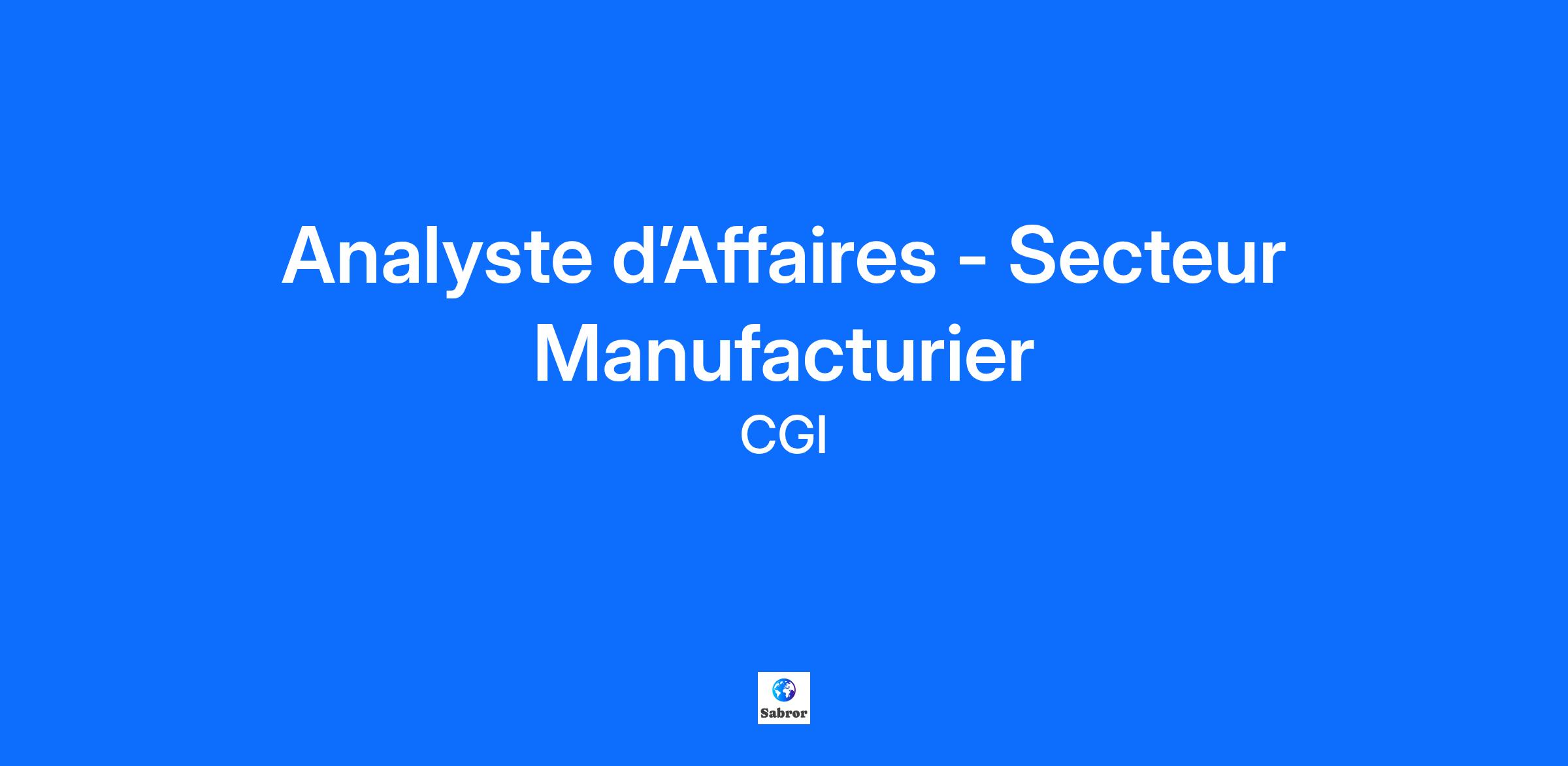 CGI recherche un(e) Analyste d’Affaires passionné(e) par le secteur manufacturier afin d’accompagner nos clients dans leurs transformations numériques et opérationnelles.