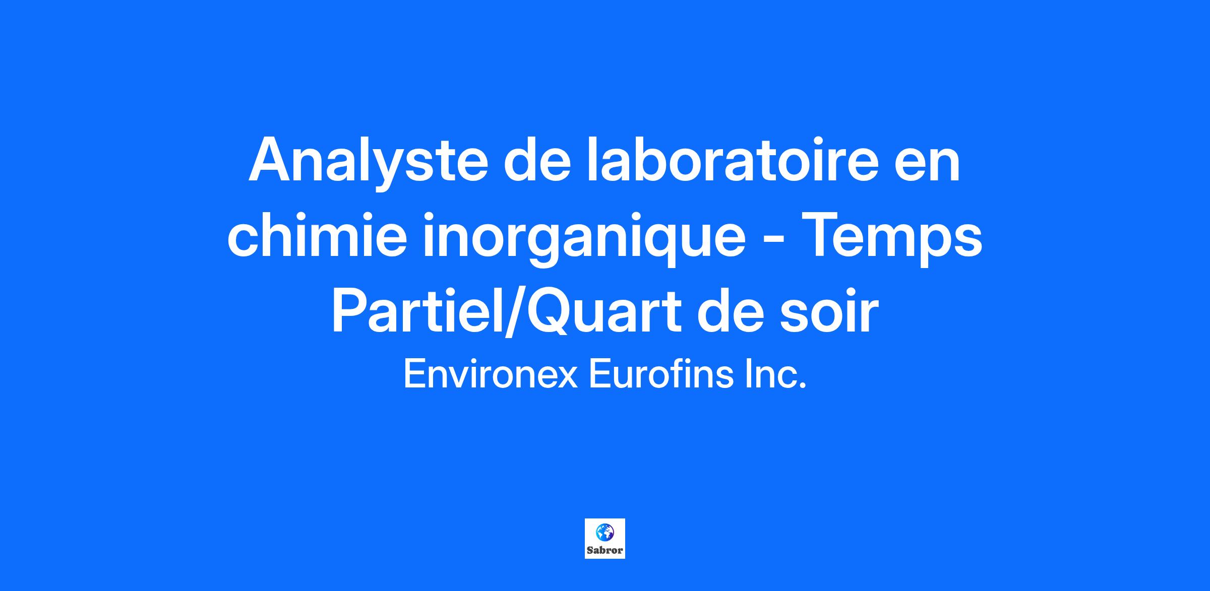 Eurofins EnvironeX : où la science devient un superpouvoir ! En tant que leader mondial des sciences de la vie, nous offrons une gamme unique de services d'essais analytiques pour garantir la sécurité alimentaire, environnementale et pharmaceutique. Avec notre équipe de plus de 62 000 héros répartis dans 62 pays, nous transformons votre environnement en un endroit plus sûr, plus sain et plus durable. Rejoignez l'équipe en tant qu'Analyste de laboratoire en chimie inoganique ! Sous la supervision du superviseur de laboratoire, vous aurez pour mission l'exécution des protocoles analytiques, incluant la préparation et le dosage des échantillons à l'aide de diverses techniques instrumentales. Il assure également la vérification des contrôles de qualité et le transfert des résultats d'analyse dans le système informatique pour approbation par les chimistes. L'analyste doit appliquer rigoureusement les procédures internes établies afin de fournir des données fiables et exploitables. Il est tenu de compléter de manière précise et conforme toute la documentation associée à ces tâches. VOS RESPONSABILITÉS: * Faire les analyses de routine selon la priorité établie et sortir les résultats à temps * Suivre minutieusement les protocoles préétablis et les procédures d’analyse * Effectuer les analyses de routine sur les instruments de production (Chromatographie ionique, Skalar, Gallery, etc.) * Vérification des contrôles de qualité et l’entrée de résultats dans le LIMS; * Préparer les solutions standards et contrôles requis requises pour les analyses * Assurer un suivi des consommables et les standards. * Respecter les normes d’assurance qualité * Remplir de façon adéquate la documentation du laboratoire * Participer aux analyses reliées aux accréditations du laboratoire * Effectuer l’entretien des équipements selon les procédures établies pour les calibrations et les validations * Assurer le suivi des cas problématiques et des résultats hors-normes auprès du Superviseur et l’aviser sans délai * Participer à la mise en place de nouveaux outils documentaires pour l’amélioration et la standardisation des tâches au laboratoire * Participer au maintien des bonnes pratiques de laboratoire * Respecter les règles de santé et sécurité en place * Assister le superviseur dans toute tâche de contrôle et assurance qualité et compléter adéquatement la documentation de ces contrôles * Participer au maintien des normes ISO 17025 * Effectuer différentes tâches de technicien de laboratoire lorsque nécessaire * Toute autre tâche connexe en lien avec le poste * Ces tâches n’ont aucun caractère limitatif et seront susceptibles d’évoluer en fonction des impératifs des besoins d’affaires. CE QUE NOUS OFFRONS : * Poste temporaire à temps partiel jusqu’en décembre 2025, avec possibilité de prolongation ; * Quart de soir sur appel ; * Stationnement sur place ; * Uniforme fourni ; * Possibilité de développement et de formation ; * Stationnement et café gratuits ; * Profiter d’un menu santé ; * Bornes de recharges pour voitures électriques ; * Programme de reconnaissance des années de service ; * Et bien plus ! PROFIL PROFESSIONNEL: * Détenir un DEC en chimie ou biotechnologies ou un BAC en chimie ou biochimie ; * 2 à 3 années d’expérience dans un laboratoire; * Connaissance des paramètres d’analyses en chimie et de divers instruments (analyse par chromatographie ionique, analyse colorimétrique, etc.); * Être organisé, autonome et être doté d'un esprit d’analyse et de synthèse; * Langues parlées et écrites : français & anglais fonctionnel.