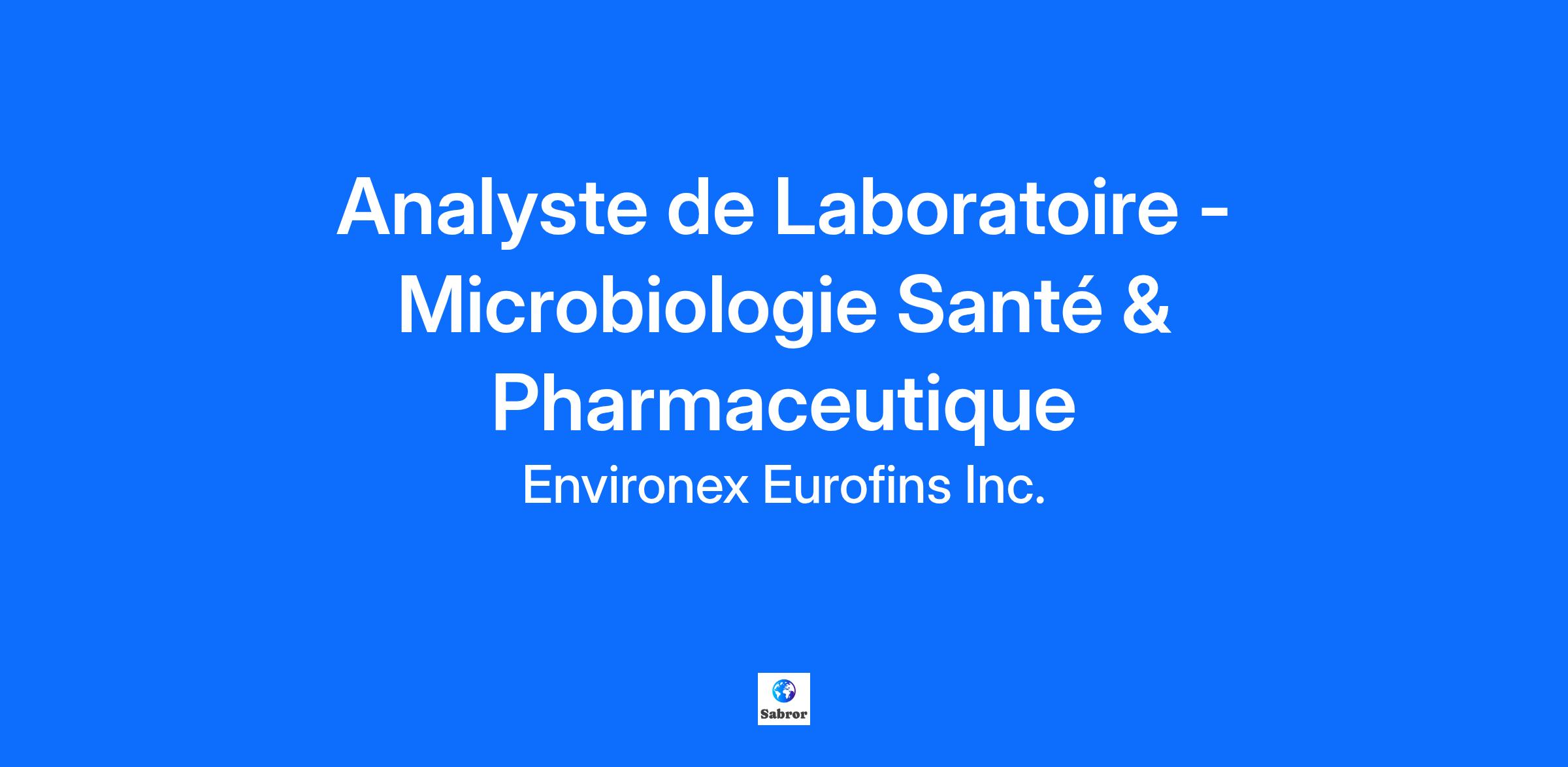 Eurofins : où la science devient un superpouvoir ! En tant que leader mondial des sciences de la vie, nous offrons une gamme unique de services d'essais analytiques pour garantir la sécurité alimentaire, environnementale et pharmaceutique. Avec notre équipe de plus de 63000 héros répartis dans 60 pays, nous transformons votre environnement en un endroit plus sûr, plus sain et plus durable. Rejoignez l'équipe en tant que Analyste de Laboratoire ! L’Analyste de laboratoire accompli des analyses de routine en microbiologie. Il procède à la calibration et aux contrôles de qualité requis par ces analyses selon les règles internes établies ainsi qu’à la compilation et la transmission des résultats d’analyses à notre système informatique. Il supporte le spécialiste CQ dans différentes investigations. VOS RESPONSABILITÉS: * Effectuer des analyses microbiologiques; * Remplir de façon adéquate la documentation du laboratoire; * Préparer les solutions, milieux de culture et contrôles, ainsi que le matériel requis; * Réceptionner et codifier les échantillons au LIMS * Utiliser des techniques de laboratoire adéquates pour minimiser les risques d’erreur d’étiquetage, de confusions dans les échantillons et de contamination croisée entre les échantillons et d’autres matières; * Participer au maintien des bonnes pratiques de laboratoire (BPL), au respect des bonnes pratiques de fabrication (BPF) de Santé Canada et des règles de biosécurité; * Effectuer l’entretien des équipements selon les procédures établies; * Assurer le suivi des cas problématiques et des résultats hors-normes auprès du responsable technique et de la chef de service; * Effectuer différentes tâches d’entretien au laboratoire (ex : aires de travail, laverie, autoclave); * Participer à la mise en place de nouveaux outils documentaires pour l’amélioration et la standardisation des tâches au laboratoire; * Respecter les règles de sécurité en place; * Participer aux investigations et reprises d’analyses suite à l’obtention des résultats non-conformes; * Qualification, vérification et calibration des instruments de laboratoire – (balances, pH-mètre, incubateurs, etc.); * Participe à toutes les rencontres de formation pour assurer le maintien de ses qualifications techniques et de ses connaissances professionnelles à jour; * Détecter les cas de non-conformité et les communiquer au Chef de service; * Avoir un haut niveau de précision et de rigueur dans la préparation des échantillons et dans les étapes analytiques, respecter les délais et minimiser et éliminer les risques des erreurs; * Effectuer toute autre tâche pouvant aider le Chef de service. CE QUE NOUS OFFRONS : * Poste permanent a temps plein ; * Horaire de jour, du jeudi au dimanche de 8h30 a 18h30; * Stationnement sur place; * Uniforme fourni; * Possibilité de développement et de formation; * Et bien plus ! Exigences : * BAC en microbiologie; * Minimum 2 années d’expérience dans le domaine; * Membre AMQ ou admissible. * Connaissance de l’analyse des paramètres microbiologie; * Précision et rigueur; * Être organisé, autonome et être doté d'un esprit d’analyse et de synthèse; * Connaissance de BPF et des BPL;