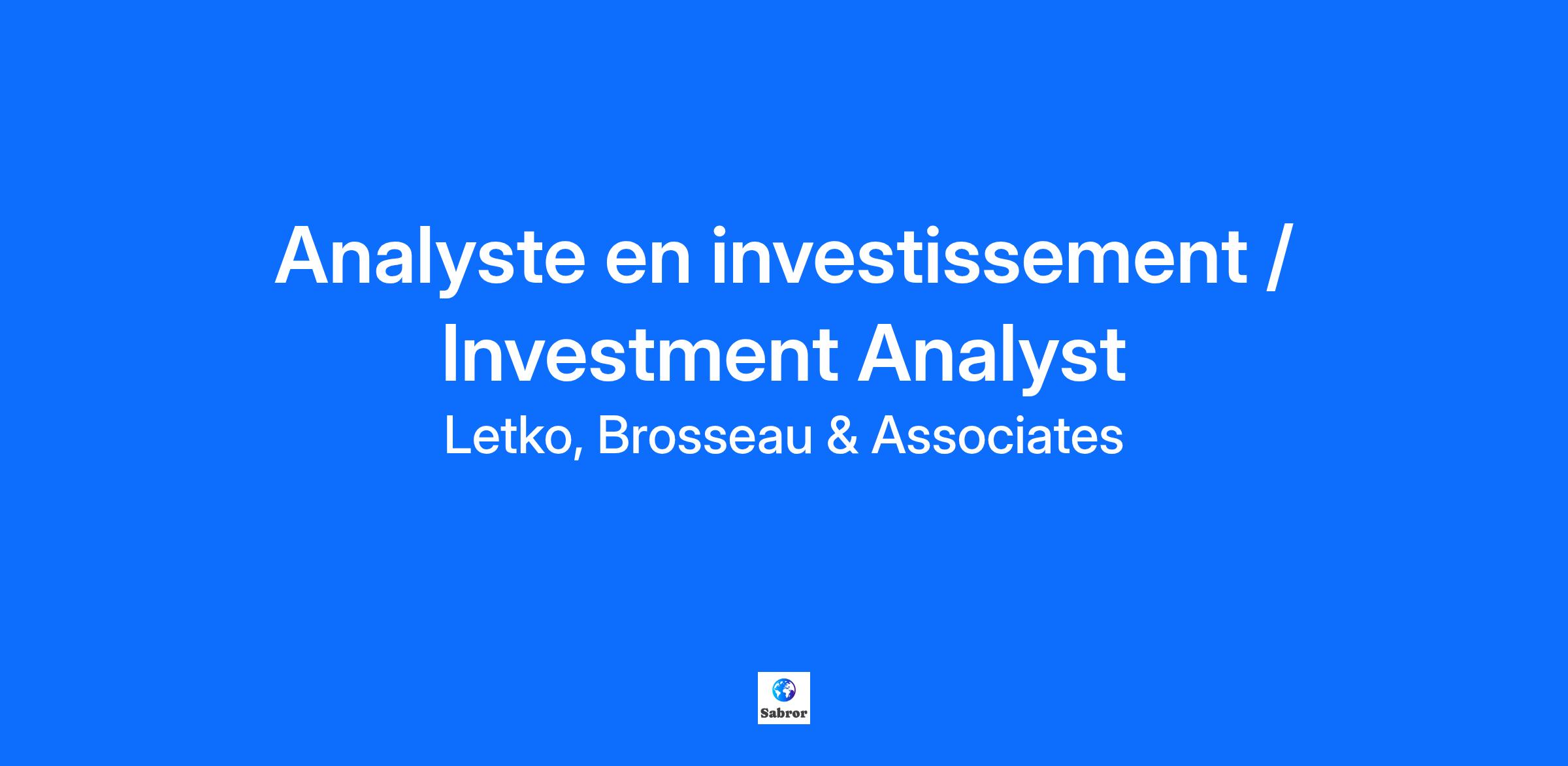 Analyste en investissement / Investment Analyst