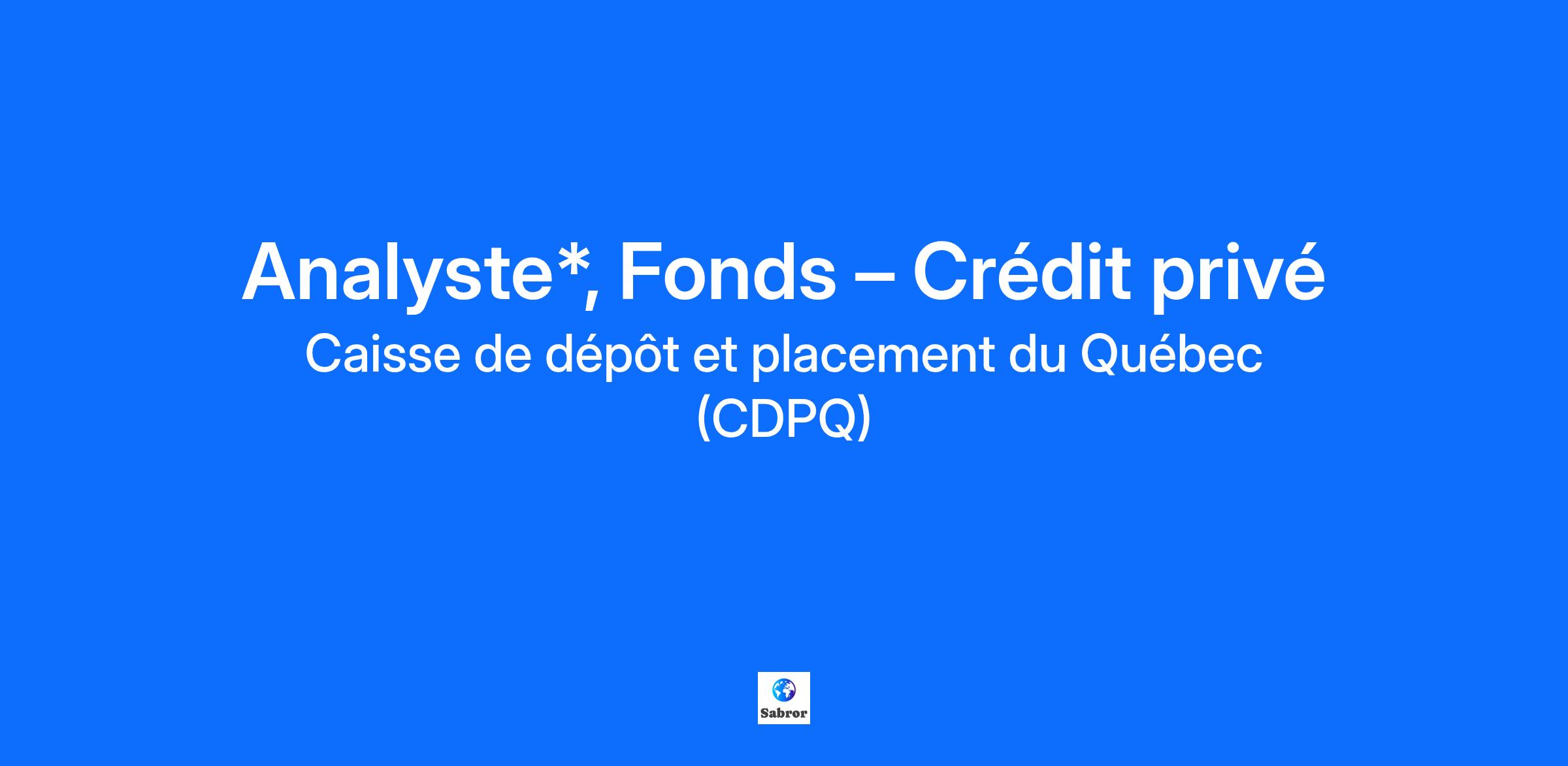 Become invested in the community! Join a global investment group and take pride in helping build a sustainable future. At La Caisse: We value your unique contribution to a world-class team. We give you work that allows you to flourish and excel. We offer opportunities to learn from experts who generously share their knowledge. We are fully invested so that you can fulfil our mission every day. Over the years, we have built a strong culture based on four pillars: ambition to push ourselves further, accountability to bring our convictions to life, openness to grow through creative ideas, and collaboration to drive us toward the best outcomes. This job is located within the CDPQ Private Equity subsidiary. Job Description *Le niveau de poste peut varier en fonction du profil de la personne retenue *Poste temporaire d’une durée de 18 mois. Au sein de l’équipe Fonds – crédit privé, l’analyste travaillera en étroite collaboration avec les membres de l’équipe sur le plan de la sélection et du suivi de gestionnaires externes, pour les stratégies de crédit. Ce que vous ferez Suivre des gestionnaires externes dans son secteur (firmes, équipes de gestion, processus d’investissement et gestion du risque); Analyser et suivre les portefeuilles, la performance et le risque des gestionnaires externes; Veiller au maintien d’une banque de gestionnaires potentiels; Contribuer à l’évaluation et à la recommandation de candidats potentiels; Produire des rapports de visite et de suivi de gestionnaires externes et de candidats potentiels; Établir et maintenir les relations avec les gestionnaires de portefeuille et les candidats potentiels; Participer à différents projets ou activités reliés à l’amélioration du processus d’investissement de l’équipe et à la systématisation accrue de nos outils de suivi de portefeuille; Analyser des tendances dans l'industrie des firmes d'investissement et maintenir des relations avec les différents intermédiaires de l'industrie des firmes d'investissement; Assurer la transmission des meilleures pratiques de gestion de l'industrie aux équipes de gestion interne de la CDPQ. Ce que vous êtes Vous vous distinguez par votre : Autonomie et sens de l’initiative; Rigueur analytique et esprit méthodique; Fort esprit d’analyse, de déduction et de synthèse; Curiosité intellectuelle et esprit innovant; Orientation vers les résultats; Aptitudes relationnelles et capacité à bien communiquer. Ce que vous apportez Diplôme universitaire de 1er ou 2e cycle en administration des affaires, finance, comptabilité, ou toute autre discipline connexe; Un minimum de un (1) à trois (5) ans d'expérience pertinente au poste. Une combinaison équivalente de scolarité et d'expérience pourra être prise en considération; Bonne connaissance des stratégies d'investissement en crédit, produits structurés et des instruments financiers; Expérience dans l’analyse de données et de résultats et capacité à formuler des recommandations pratiques tant à l’oral qu’à l’écrit; Connaissances en informatique et expérience dans l’utilisation de plateforme d’analyse de risque (Preqin, Capital IQ, Bloomberg, Barra, Axioma etc.) (atout); Maitrise du français et de l’anglais*, tant à l’oral qu’à l’écrit. *Interactions fréquentes en anglais, à l’oral et à l’écrit, avec des partenaires externes basés à l’extérieur du Québec tels que des fournisseurs de services, des cabinets d'avocats, des pairs, des banquiers, des firmes de courtage, des firmes d’analyse de crédit et des agences de crédit. Feeling that my role is important. Having fun every day. Growing in step with my ambitions. Earning compensation that reflects my contribution. That’s the professional experience La Caisse offers! We carefully review each application and directly contact those selected for an interview. La Caisse offers equal employment opportunities to everyone. Women, visible/ethnic minorities, Indigenous people and individuals with disabilities are all encouraged to apply. If you’re interested in this job but you don’t meet all the criteria, apply anyway! La Caisse is also committed to promoting equity, diversity and inclusion as key values and sees them as a source of enrichment and pride for all its employees. Please let us know if you require adopted measures for the recruiting process. La Caisse represents the Caisse de dépôt et placement du Québec and its subsidiaries. We are a leading global institutional asset manager. We invest in major financial markets and the principal asset classes. To carry out our mission, we have teams of experts recruited from among the best in Quebec and around the world.
