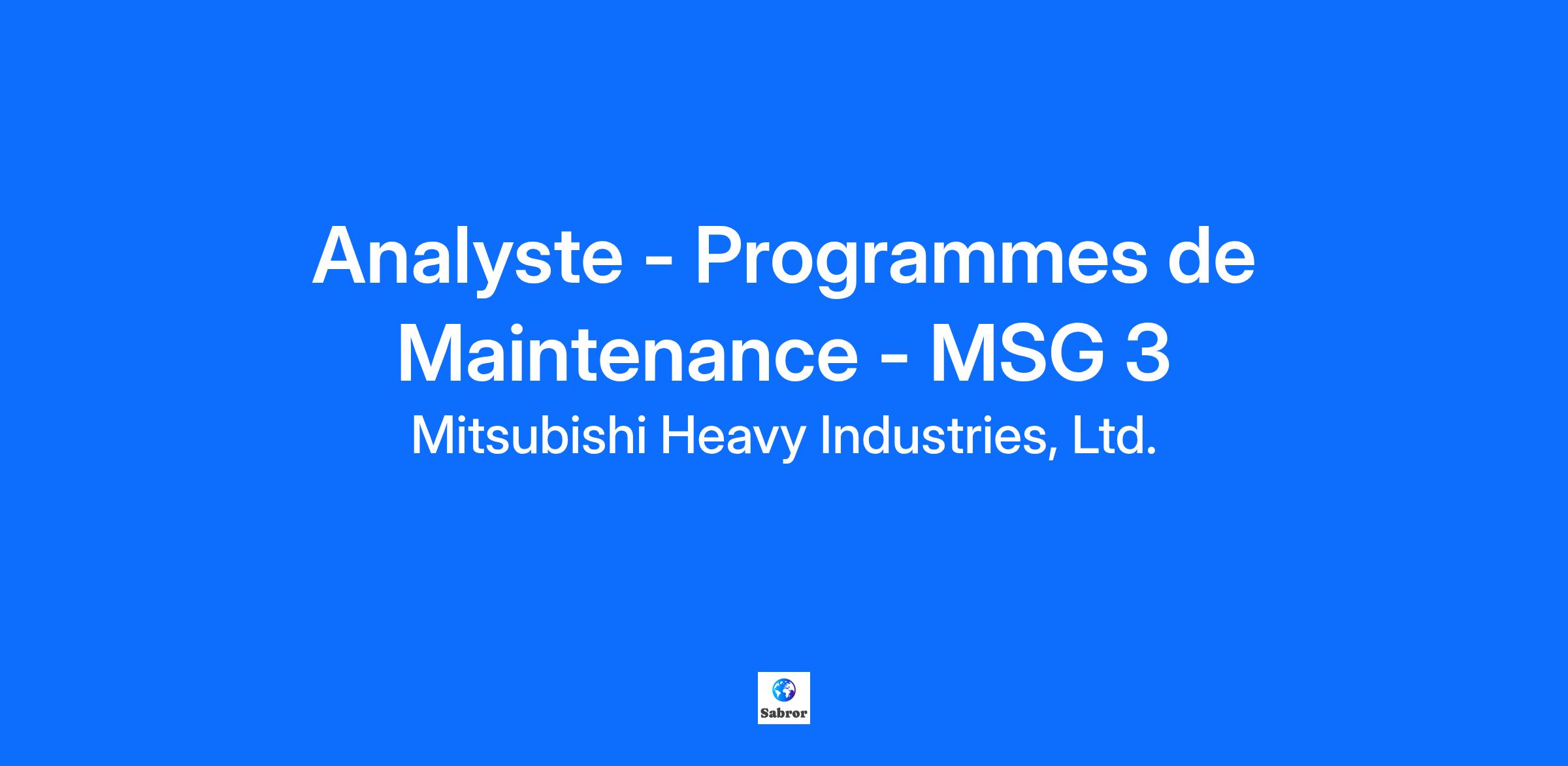 MHIRJ est la fusion de deux patrimoines importants : Mitsubishi Heavy Industries (MHI) et le programme CRJ Series. Nous fournissons des solutions complètes d'exploitation, d'ingénierie et de support client, comprenant la maintenance, la remise à neuf, les publications techniques, les activités de marketing et de vente pour l'industrie mondiale des avions régionaux. Nous recherchons un(e) Analyste des Programmes de Maintenance pour rejoindre nos rangs ! Sommaire du poste L’Analyste des Programmes de Maintenance développera et optimisera les exigences de maintenance planifiée pour la famille d’avions CRJ. Votre contribution en tant qu’Analyste des Programmes de Maintenance: Faire partie intégrante de l’équipe d’ingénierie de maintenance vers les objectifs commerciaux en définissant les priorités. Réviser, maintenir et développer de nouvelles exigences de maintenance planifiée en appliquant les principes MSG-3. Présenter les analyses MSG-3 et les présentations techniques relatives à la maintenance planifiée lors des réunions du Comité Directeur de l’Industrie (ISC). Justifier les tâches et intervalles de maintenance à l’aide de données de maintenance en service, de coûts et de fiabilité. Définir et mettre en œuvre des actions préventives et correctives en réponse aux constats en service, conformément aux pratiques MSG-3 établies. Participer régulièrement à des événements clients et réglementaires pour soutenir l’amélioration continue des exigences de maintenance planifiée et les activités de réduction des coûts. Préparer et présenter des présentations techniques lors de divers événements clients/réglementaires. Répondre aux demandes internes et externes concernant des livrables tels que des analyses, des estimations d’impact et de coût, et des propositions de programme. Collecter et analyser les dossiers de maintenance planifiée, examiner les informations PIREP/MAREP et effectuer des analyses approfondies des données en service pour optimiser les programmes de maintenance. Collaborer avec l’ingénierie MHIRJ, les fournisseurs et les opérateurs pour établir des exigences et intervalles de maintenance efficaces. Travailler avec des opérateurs spécifiques pour adapter leurs programmes de maintenance à leurs caractéristiques opérationnelles. Travailler en étroite collaboration avec les autorités aéronautiques pour obtenir l’approbation de la maintenance planifiée. Des déplacements occasionnels peuvent être requis pour ce poste. Voici ce qui est nécessaire pour réussir : Bonne compréhension des principes MSG-3 et du processus du Comité de Révision de la Maintenance (MRB) et ISC. Maîtrise des principes MSG-3 conformément aux directives établies. Capacité à gérer plusieurs projets simultanés et à respecter des délais serrés. Réflexion rapide et créative dans un contexte commercial dynamique et en évolution. Solides compétences analytiques et expérience en statistiques pour résoudre des problèmes d’ingénierie. Excellente communication, compétences interpersonnelles et en négociation. Maîtrise de l’anglais (écrit et oral) requise. Aptitude à interagir efficacement avec les clients et les autorités aéronautiques, avec un esprit orienté client et une attitude proactive. Compétences solides en présentation, à l’aise devant un auditoire Maîtrise avancée de MS Word, MS Excel, MS PowerPoint. L'anglais est requis pour le poste car la personne sélectionnée devra régulièrement communiquer avec des collègues, clients ou partenaires situés à l'extérieur du Québec. Si votre expérience correspond aux qualifications requises pour ce poste, nous vous encourageons à poser votre candidature - nous aimerions vous connaître ! Pourquoi vous joindre à nous? Vous êtes passionné(e) par l'aviation ? Vous êtes impatient(e) d'avoir un impact significatif sur les clients? Aspirez-vous à une carrière épanouissante en tant qu’Analyste des Programmes de Maintenance ? Si oui, vous êtes au bon endroit. Chez MHIRJ, nous reconnaissons et apprécions votre contribution à notre équipe unifiée.Nous vivons selon nos valeurs et incarnons nos comportements qui sont les moteurs de notre succès. Prenez votre envol avec une équipe qui partage votre passion et vous soutient dans votre parcours. Envolons-nous ensemble à MHIRJ ! Nous offrons des avantages complets pour vous et votre famille, ainsi que de nombreuses possibilités d'évolution de carrière. Assurance santé, dentaire et vision compétitive Banque de congés annuels Rémunération compétitive et plan de primes annuelles Plans d'épargne retraite Réductions pour les employés et bien plus encore ! MHIRJ est un employeur qui souscrit au principe de l'égalité des chances et encourage les femmes, les autochtones, les personnes handicapées et les membres des minorités visibles à poser leur candidature.