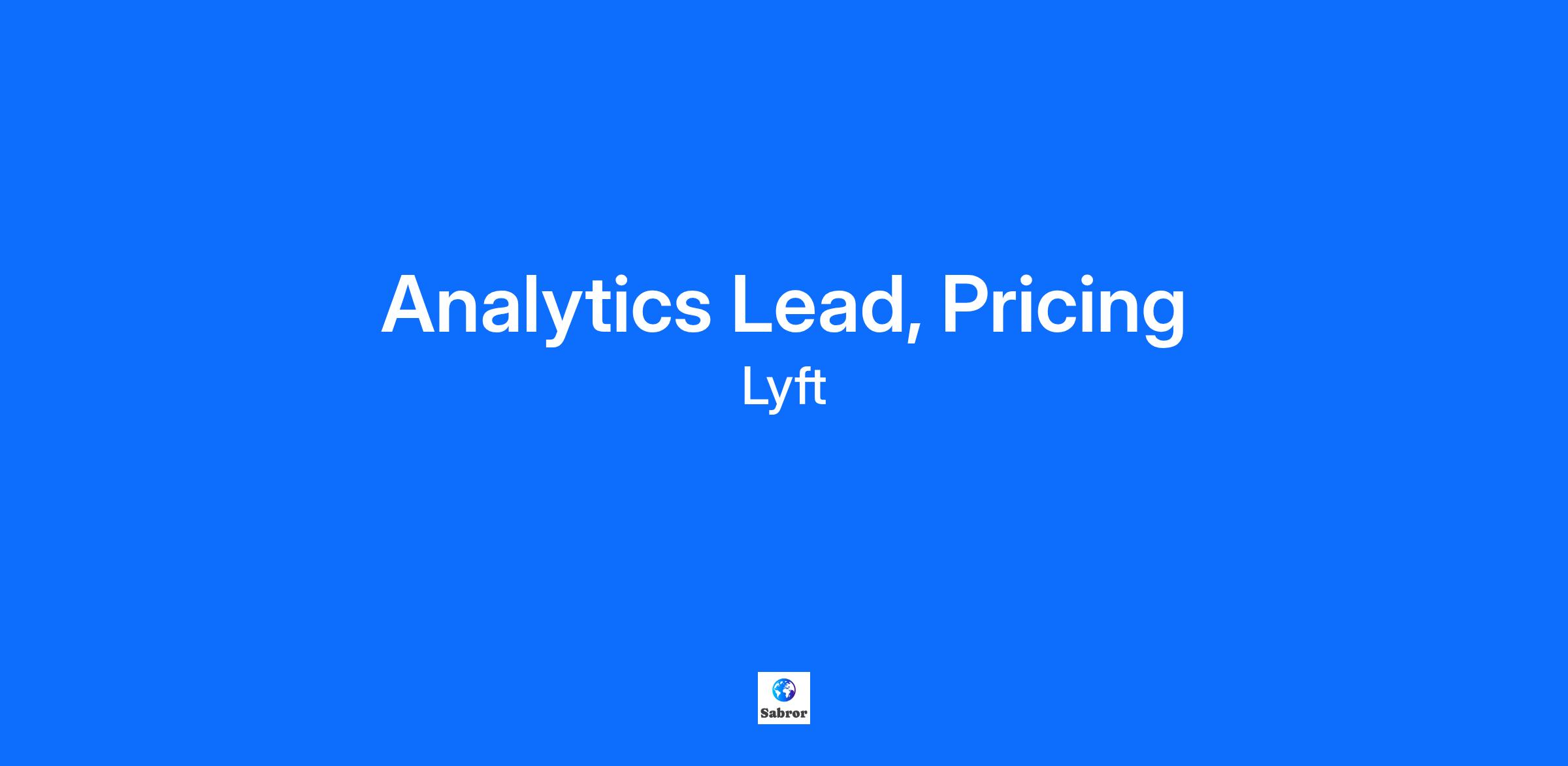 Analytics Lead, Pricing