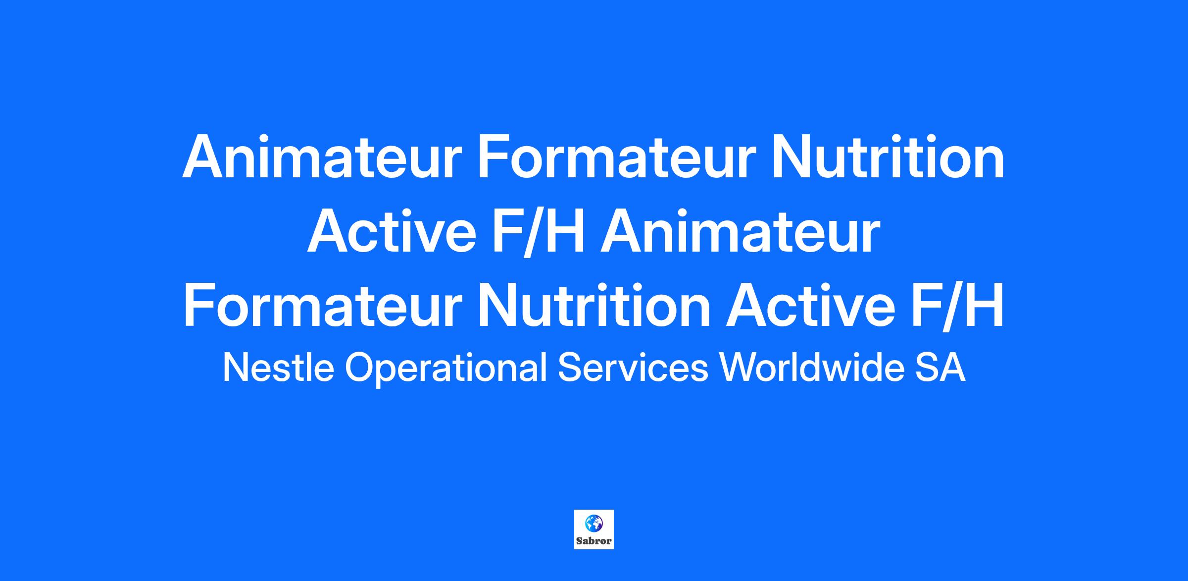 Animateur Formateur Nutrition Active F/H Animateur Formateur Nutrition Active F/H