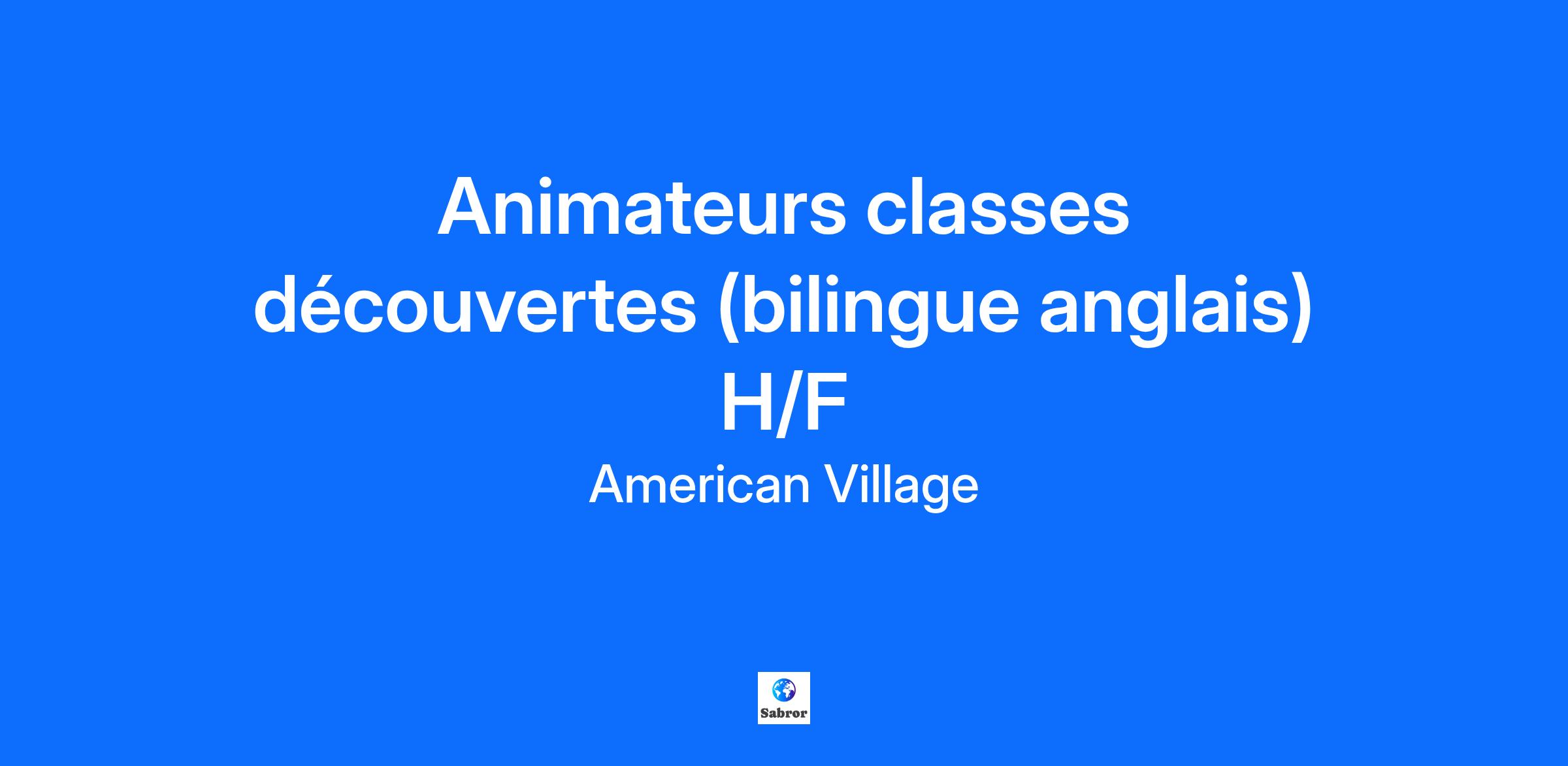 Tu rêves de travailler en anglais sans quitter la France ? Tu es dynamique, créatif et à l'aise en anglais ? Rejoins American Village ! Nous recherchons des animateurs bilingues français-anglais (H/F) pour encadrer nos colonies immersives 100% anglais à travers la France ! Des postes à pourvoir dès le 12 mars dans nos centres American Village (Gréoux les Bains, Vesc, Bauduen, Azé, Chamberet, Miramont, St Félix de Pallieres, Cour et Buis, Les Biards, Jasseron). American Village, c'est des séjours pour les 8-17 ans, conçus pour apprendre l'anglais en s'amusant. Au programme : Cours d’anglais ludiques, Grands jeux et veillées 100% en anglais le tout sans quitter la France ! Vos missions Tes missions : Enseigner l’anglais de manière fun et interactive à travers des cours et des activités ludiques. Créer un environnement sécuritaire, bienveillant et stimulant pour les campeurs. Préparer et animer le programme du camp (cours, activités, soirées thématiques). Imaginer et présenter des sketchs, chansons, jeux, avec ton équipe. Le tout 100% en anglais ! Vos compétences Ton profil : → Anglais niveau C1 minimum : tu parleras anglais toute la journée. → Tu as déjà une première expérience réussi en animation ou en enseignement ? C’est l’idéal ! → Polyvalence sur le terrain, tes missions seront diverses Avantages Ce qu’on t’offre : → 2002 € brut/ mois en CDD saisonnier (Contrat à durée déterminée) → Pension complète (hébergement, repas, linge) → 100€ remboursés sur tes frais de transport pour te rendre sur le centre. → Durée flexible selon tes disponibilités. → Une équipe multiculturelle pour une expérience unique ! Prêt(e) à postuler ? Rends-toi sur notre site "AmericanVillage" et complète ton dossier ! L'aventure n’attend que toi ! Découvrez-en plus sur le concept American Village : Youtube: TeamAmericanVillage Facebook: AmericanVillageCampsInFrance Instagram: american_village_recruitment
