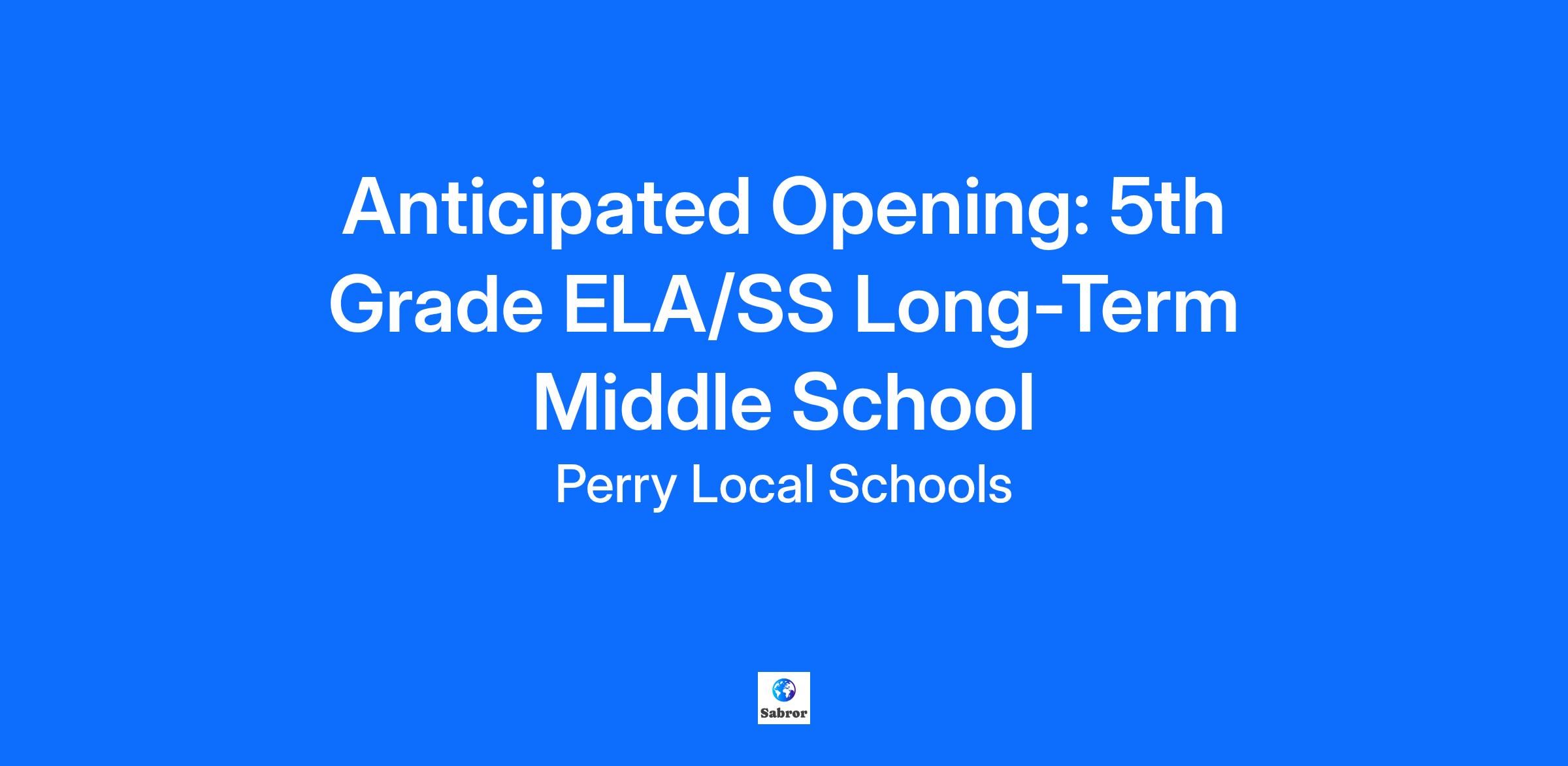 Job Title: Anticipated Opening: Long-Term 5th Grade ELA/SS Middle School Teacher Location: Perry Middle School Position Available: 2025-26 (Start date: February 9, 2026) Compensation: Long Term Sub Rate Per PCTA Negotiated Agreement Job Summary: The Perry Local Schools desires to employ an Ohio-licensed teacher to serve as a ELA and social studies teacher at Perry Middle School. The successful candidate will plan and provide daily classroom instruction in ELA and/or social studies. The candidate will also meet regularly with grade level and PLC teachers to discuss curriculum, instruction, assessment, and student issues. Candidate will possess strong classroom management skills, be able to implement research-based instructional strategies with a deep understanding of Ohio Learning Standards, and a strong demonstration of engaging students in remote learning.