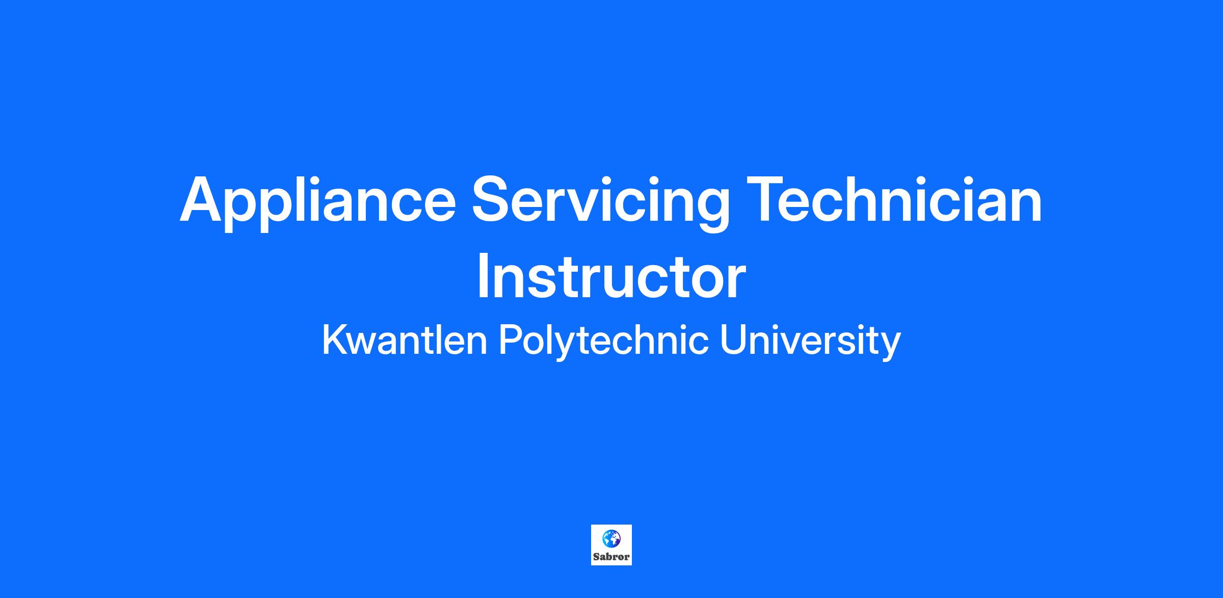 APPLIANCE SERVICE TECHNICIAN INSTRUCTOR POSITION TYPE: QUALIFIED FACULTY LIST POSITION START: As Soon As Possible FACULTY OVERVIEW: The Appliance Service Technician program prepares students for entry into the appliance service and repair industry. Students complete all of the in-school training required for Red Seal qualifications and develop their skills through hands-on opportunities. Students also acquire a sound knowledge of common appliance systems and essential skills necessary to succeed in the industry. POSITION OVERVIEW: The Faculty of Trades and Technology is currently seeking a Non-regular Type 1 Appliance Service Technician Instructor to provide short-term coverage in the Appliance Service Technician program which may extend from a single day to several weeks, possibly leading to a regularized contract. Part of this contract may require the delivery of the BC Provincial Appliance Service Technician Gas Certificate. More information concerning the working conditions for a faculty member are outlined in Article 12 of the Kwantlen Faculty Association (KFA) Collective Agreement QUALIFICATIONS: A BC Certificate of Qualification (BC TQ), or a Certificate of Qualification with Interprovincial Red Seal (IP RSE) from another jurisdiction. A BC Gas Certificate, or equivalent. A minimum of five years relevant, related, industry experience as an Appliance Service Journeyperson. APPLICATION REQUIREMENTS: Candidates will be required to undergo a Criminal Record Check. *SALARY INFORMATION: Placement on the salary scale will be dependent on level of education and relevant teaching experience. Advancement up the pay scale is based on FTE and employment status.