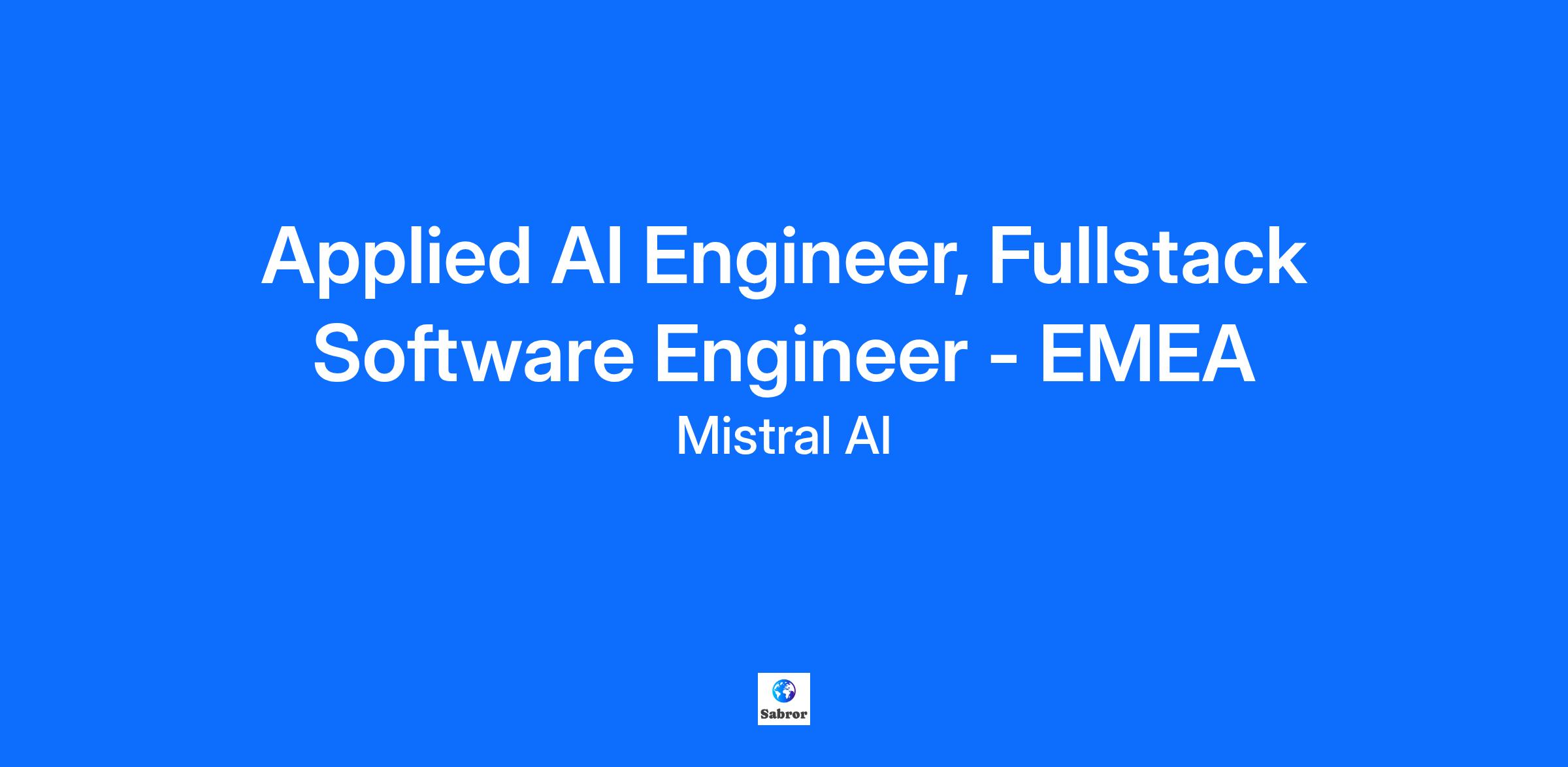 About Mistral At Mistral AI, we believe in the power of AI to simplify tasks, save time, and enhance learning and creativity. Our technology is designed to integrate seamlessly into daily working life. We democratize AI through high-performance, optimized, open-source and cutting-edge models, products and solutions. Our comprehensive AI platform is designed to meet enterprise needs, whether on-premises or in cloud environments. Our offerings include le Chat, the AI assistant for life and work. We are a dynamic, collaborative team passionate about AI and its potential to transform society. Our diverse workforce thrives in competitive environments and is committed to driving innovation. Our teams are distributed between France, USA, UK, Germany and Singapore. We are creative, low-ego and team-spirited. Join us to be part of a pioneering company shaping the future of AI. Together, we can make a meaningful impact. See more about our culture on https://mistral.ai/careers [https://mistral.ai/careers]. About The Job Mistral AI is seeking an Applied AI Engineer to facilitate the adoption of its products among customers and collaborate with them to address complex technical challenges. The Applied AI Engineer - Software Engineer will be an integral part of our Applied AI Engineering team, which is dedicated to driving the successful deployment of Mistral AI products. They will work hand-in-hand with customers from the pre-sale stage to post-implementation, ensuring our solutions meet and exceed client expectations. What you will do • Collaborate closely with researchers, AI engineers, and product engineers on complex customer projects, integrating cutting-edge AI models into clients’ software products. • Design, develop, and maintain scalable and robust full-stack applications, ensuring seamless integration between front-end and back-end systems. • Develop complex use cases with our customers, providing guidance and ensuring the best production integration with back-end and front-end interfaces. • Collaborate with our product and science team to continuously improve our product and model capabilities based on customers’ feedback. About you • You are fluent in English • You hold a degree in Computer Science, Software Engineering, or a related field. • You have 2+ years as a technical individual contributor on cutting-edge technologies • You have strong technical coding skills in Python and TypeScript • You have experience with front-end frameworks such as React, NextJS, or VueJS. • You have experience with back-end technologies such as NodeJS. • You have a solid understanding of software development principles, including design patterns, data structures, and algorithms. • You hold strong communication skills with an ability to explain complex technical concepts in simple terms with technical and non-technical audiences Ideally you have: • Experience with LLM/GenAI models • Contributed to open-source projects or libraries • Experience as a Customer Engineer, Forward Deployed Engineer, Sales Engineer, Solutions Architect or Technical Product Manager Benefits We have local offices in Paris, London, Marseille and Singapore. France 💰 Competitive cash salary and equity 🥕 Food : Daily lunch vouchers 🥎 Sport : Monthly contribution to a Gympass subscription 🚴 Transportation : Monthly contribution to a mobility pass 🧑⚕️ Health : Full health insurance for you and your family 🍼 Parental : Generous parental leave policy 🌎 Visa sponsorship \n \n