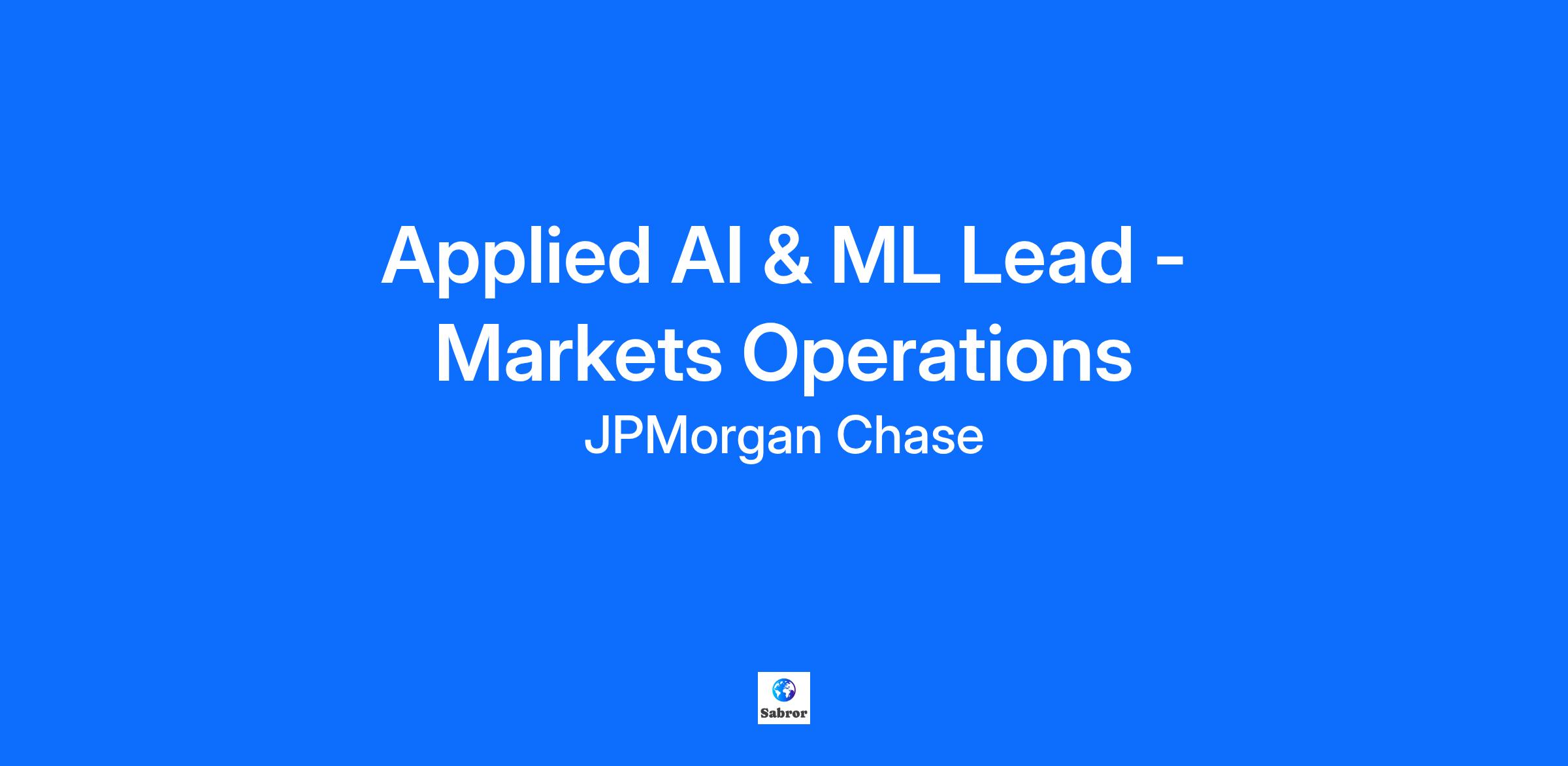 Are you ready to shape the future of Market Operations with cutting-edge AI and ML? At JPMorgan Chase, you’ll have the opportunity to lead a talented team, solve complex business challenges, and make a real impact on our operations. We value your expertise, encourage your growth, and support your journey as you deliver transformative solutions. Join us to collaborate with industry leaders and advance your career in a dynamic, inclusive environment. As an Applied AI & ML Lead in the Market Operations team, you will drive the strategy, design, and delivery of AI/ML solutions that enhance and transform Market Operations. You will lead a team of scientists and engineers, partner with business stakeholders and technology leaders, and ensure the successful implementation and scaling of AI-driven tools. You will identify opportunities, set technical direction, and deliver measurable impact through innovative AI/ML applications. Your leadership will help foster a culture of collaboration and continuous learning. Job Responsibilities: Lead the development, implementation, and scaling of advanced machine learning models and algorithms to address operational challenges Set technical vision and strategy for AI/ML initiatives, aligning with business goals Oversee the architecture and deployment of generative AI applications and agents to automate and enhance processes Manage and mentor a team of AI/ML scientists and engineers, fostering innovation and collaboration Ensure production-grade AI/ML applications and tools are built, maintained, and optimized Establish best practices for monitoring, evaluating, and improving solution performance Guide the analysis of large and complex datasets to identify trends and opportunities for automation Engage with subject matter experts and senior stakeholders to gather requirements and validate solutions Champion documentation of methodologies, results, and best practices for knowledge sharing Stay up to date with the latest AI/ML advancements and apply relevant techniques to business problems Represent the team in cross-functional forums and communicate technical concepts clearly Required Qualifications, Capabilities, and Skills: BSc/MSc in Data Science, Computer Science, Artificial Intelligence, or a closely related field (or equivalent experience) Leadership experience in AI/ML, including leading teams and projects from conception to production Strong foundation in AI/ML concepts and practical experience with data analysis, feature engineering, and model development Experience working with large, complex datasets and applying statistical analysis Hands-on experience training, deploying, and maintaining machine learning models in production environments Proficiency in Python and relevant AI/ML libraries (e.g. scikit-learn, TensorFlow, PyTorch) Experience with MLOps practices and tools for managing the machine learning lifecycle Experience building and deploying Generative AI applications, including familiarity with LLMOps Exposure to cloud platforms (e.g. AWS, GCP, Azure) Problem-solving skills and ability to work independently and as a leader within cross-functional teams Excellent communication skills, with the ability to present technical concepts to senior business stakeholders and non-technical audiences Preferred Qualifications, Capabilities, and Skills: PhD in Data Science, Computer Science, Artificial Intelligence, or a related field Experience in financial services, banking, or Market Operations environments Experience leading AI/ML initiatives in a regulated industry Join us to help shape the future of Market Operations through innovative AI and ML solutions at one of the world’s leading financial institutions.