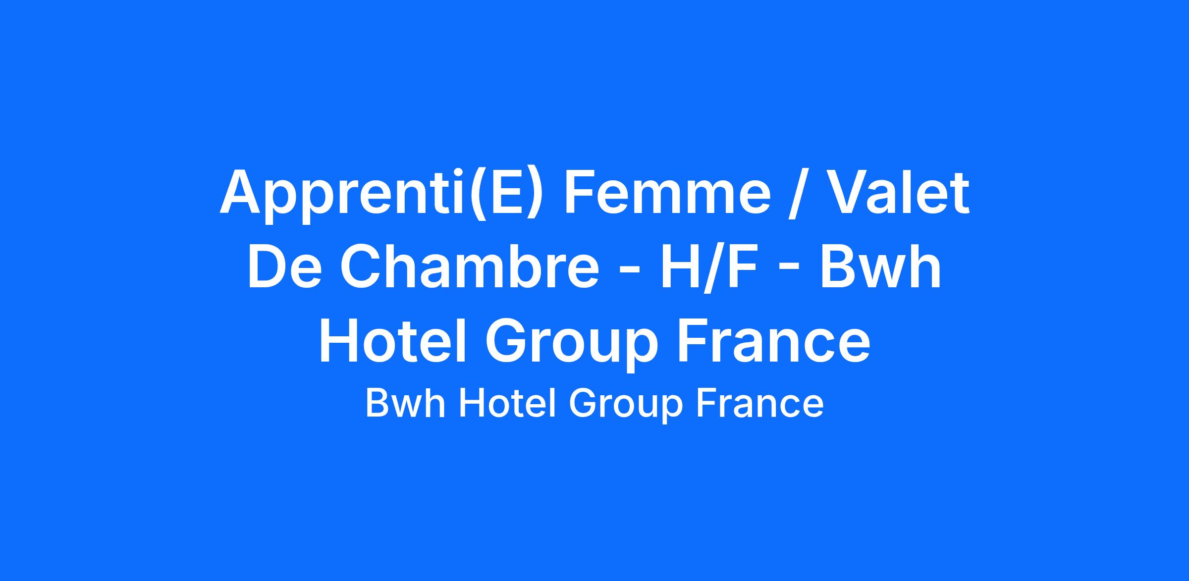 Nous sommes à la recherche d'un Valet ou d’une Femme de chambre en contrat d'apprentissage pour un poste de femme / valet de chambre (horaires variables).