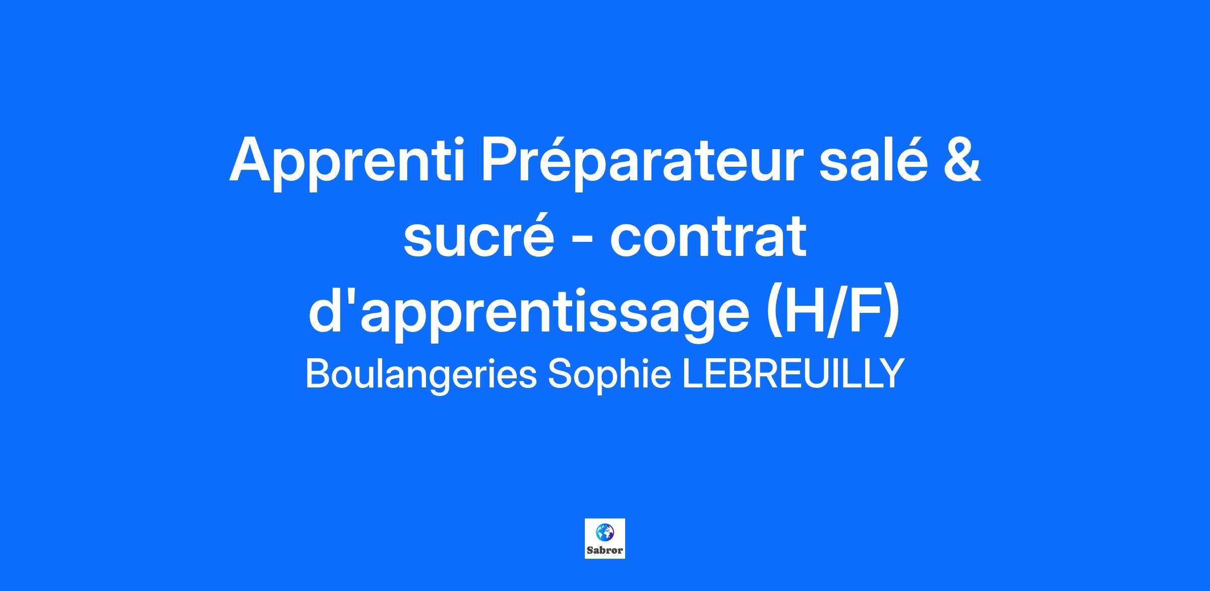 NOTRE ENTREPRISE En plein développement, les boulangeries Sophie LEBREUILLY comptent plus de 80 boutiques spécialisées dans la vente en boulangerie, viennoiserie, pâtisserie et restauration. Notre mission est de proposer à nos clients du pain et des gourmandises de qualité, accessibles à tous, pour tous les goûts et toute la journée au sein de lieux de convivialité. Dans le cadre de notre développement, nous sommes à la recherche de notre futur(e) Apprenti(e) Préparateur(rice) salé et sucré afin de venir compléter l'équipe de la boulangerie située au cœur de la ville de Berck (62). TES PRINCIPALES MISSIONS Sous la responsabilité de ton maitre d'apprentissage, tu seras formé(e) et accompagné(e) afin de maitriser les missions du métier de Préparateur(rice) salé et sucré qui sont les suivantes : Utilise ta passion du métier pour confectionner nos préparations salées et sucrées (sandwiches, salades, pizzas, burgers, etc) ; Réalise les sorties pâtisseries et assemble les tartes et tartelettes ; Mets à profit ta rigueur pour respecter les règles de qualité, d'hygiène et de sécurité alimentaire. TON PROFIL Minutieux(se), tu as une vraie culture du travail bien fait et tu es un défenseur de la qualité. Ta motivation et ta détermination feront le reste pour t'aider à maîtriser ton futur métier. TON ÉVOLUTION La réussite de ton apprentissage te permettra de décrocher un emploi et pourquoi pas un parcours évolutif au sein de nos boulangeries. TES PETITS + 20% de remise sur toute la gamme pour te régaler ; Repas pris en charge à 100% sur le lieu de travail ; Remises CSE ; Primes sous conditions ; Des moments de convivialité à partager avec la famille Sophie. Chez Sophie, nous avons également à cœur de proposer une opportunité d’évolution professionnelle à chacun de nos collaborateurs ainsi qu'une ambiance de travail chaleureuse et conviviale. INFORMATIONS COMPLEMENTAIRES Conditions du contrat : Contrat d'apprentissage ; Rémunération : Selon la grille de rémunération de l'alternance. Tous nos postes sont ouverts aux personnes en situation de handicap. Si pour toi motivation rime avec ambition, alors prends rendez-vous avec ton avenir et envoie-nous ta candidature pour rejoindre la famille Sophie !