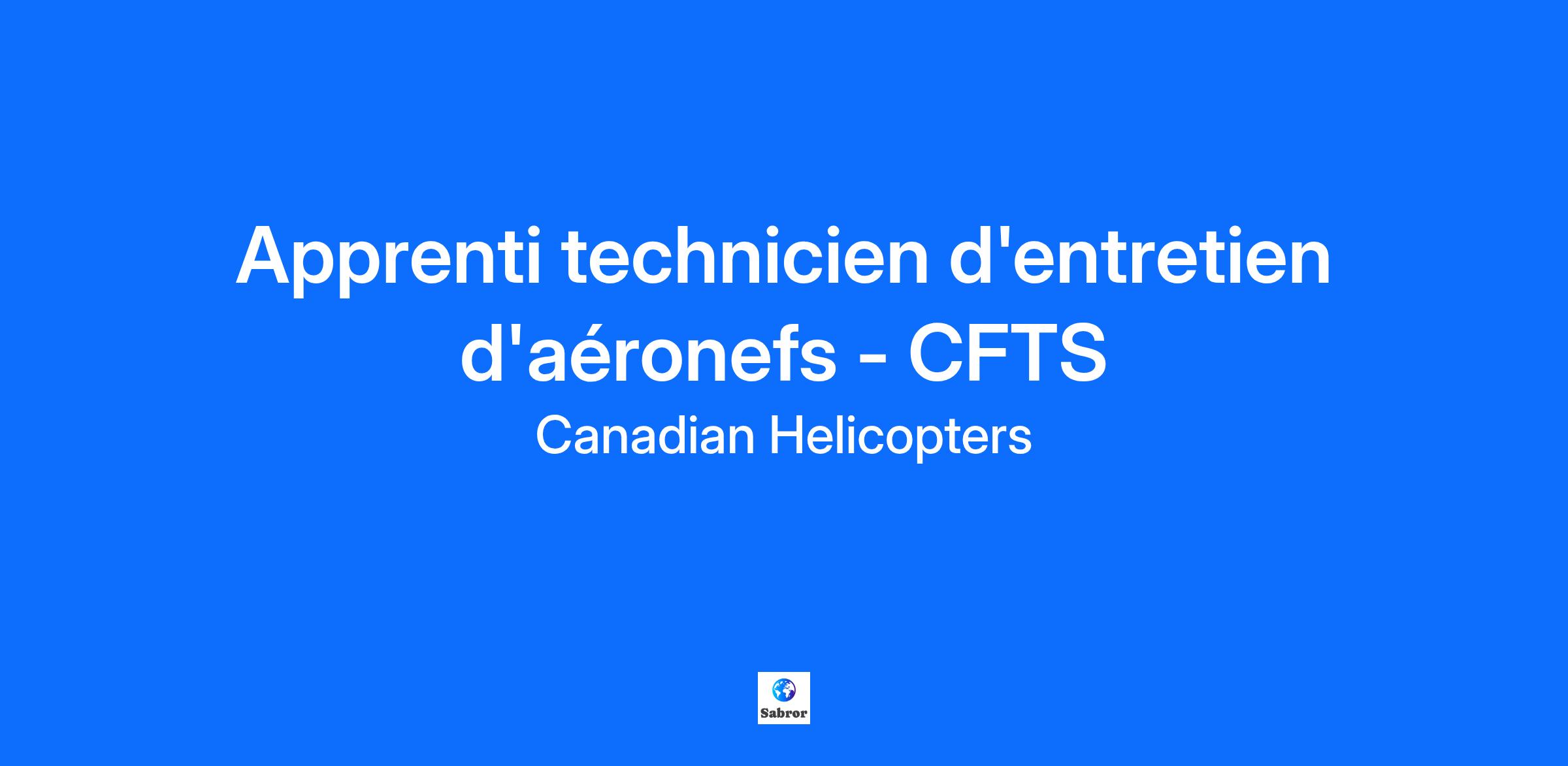 Description de l'entreprise Hélicoptères Canadiens Limitée (HCL) est une entreprise diversifiée qui offre des services de location d'hélicoptères, de soutien à la maintenance et de formation au pilotage. HCL exploite des aéronefs à voilure tournante depuis 1947 et est le plus grand exploitant d'hélicoptères au Canada, avec plus d'une vingtaine de sites répartis dans tout le pays et une flotte de près de 100 aéronefs monomoteurs et multimoteurs. Formation et soutien en vol sous contrat (CFTS) Le programme de formation et de soutien au pilotage sous contrat (CFTS) supervise le contrat de services de formation et de soutien au pilotage pour les programmes de formation des pilotes de l'ARC menés à Southport, au Manitoba. En tant que partenaire fondateur du programme, HCL a été impliqué dès le début, avec la responsabilité d'assurer l'entretien des aéronefs à voilure tournante et l'instruction académique en vol pour la flotte d'hélicoptères Bell 412 et Bell 206. Ce programme passionnant à long terme offre des possibilités d’expérience pratique immédiate et d’exposition à un large éventail d’événements de maintenance et d’exploitation, de croissance professionnelle et d’exploration de carrière tout en contribuant à l’état de préparation global de la défense du Canada. Description du poste Ce poste requiert des personnes soucieuses de la sécurité, dotées d'un comportement professionnel, d'une attitude positive et d'excellentes compétences en communication. Relevant du TEA en chef, l'apprenti technicien d'entretien d'aéronefs effectue le nettoyage, l'entretien, l'inspection, la maintenance et la réparation des aéronefs et des produits aéronautiques. Les fonctions comprennent : Entretien, inspection, dépannage et réparation d'aéronefs à voilure tournante Tenir des registres détaillés des travaux effectués Consultation avec l'équipage Organisation et entretien du hangar Autres tâches assignées par le superviseur Ce poste implique un travail par quarts comprenant des jours, des soirs et des week-ends ainsi qu'une rotation sur appel. Environnement de travail Le travail est principalement effectué dans notre hangar de Southport, au Manitoba, et comprend la manutention au sol et l'entretien des avions à l'intérieur et à l'extérieur, selon les besoins. Des déplacements pour soutenir les opérations à l'extérieur de la base peuvent être requises. Qualifications Être actuellement inscrit ou avoir terminé un programme de formation de base reconnu par Transports Canada ou un équivalent militaire Permis de conduire canadien valide Forte aptitude mécanique ou expérience mécanique antérieure Excellentes capacités d'écoute et de communication Être axé sur le client et bien travailler en équipe Doit résider ou être prêt à déménager dans la région de Southport, au Manitoba Une expérience antérieure en voilure tournante est un atout Exigences de sécurité Doit être en mesure d'obtenir une cote de sécurité de fiabilité du gouvernement du Canada Doit pouvoir obtenir l’accès aux marchandises contrôlées Doit être admissible à travailler au Canada Volonté et capacité de voyager à l’échelle nationale et internationale Informations supplémentaires Statut: temps plein, permanent Salaire: CHL offre un salaire compétitif en fonction de l'expérience et des qualifications Ensemble complet d’avantages sociaux, y compris une couverture médicale et dentaire complète, une assurance-vie et une assurance invalidité de courte et de longue durée Régime de retraite complémentaire de l’entreprise Travailler pour Hélicoptères Canadiens, c'est l'occasion de : Évoluer professionnellement dans un environnement dynamique et plein d'opportunités Travailler avec des gens passionnés, engagés et qui aiment se mettre au défi Faire partie d'une culture organisationnelle basée sur des principes fondamentaux Avoir un employeur de choix offrant des conditions de travail justes et compétitives Hélicoptères Canadiens Limitée s'engage envers l'équité en matière d'emploi et la diversité et encourage les candidatures de femmes, d'Autochtones et de minorités visibles. Pour plus d'information, nous vous invitons à visiter notre site Web: www.canadianhelicopters.com Suivez-nous sur LinkedIn : https://ca.linkedin.com/company/canadian-helicopters-limited
