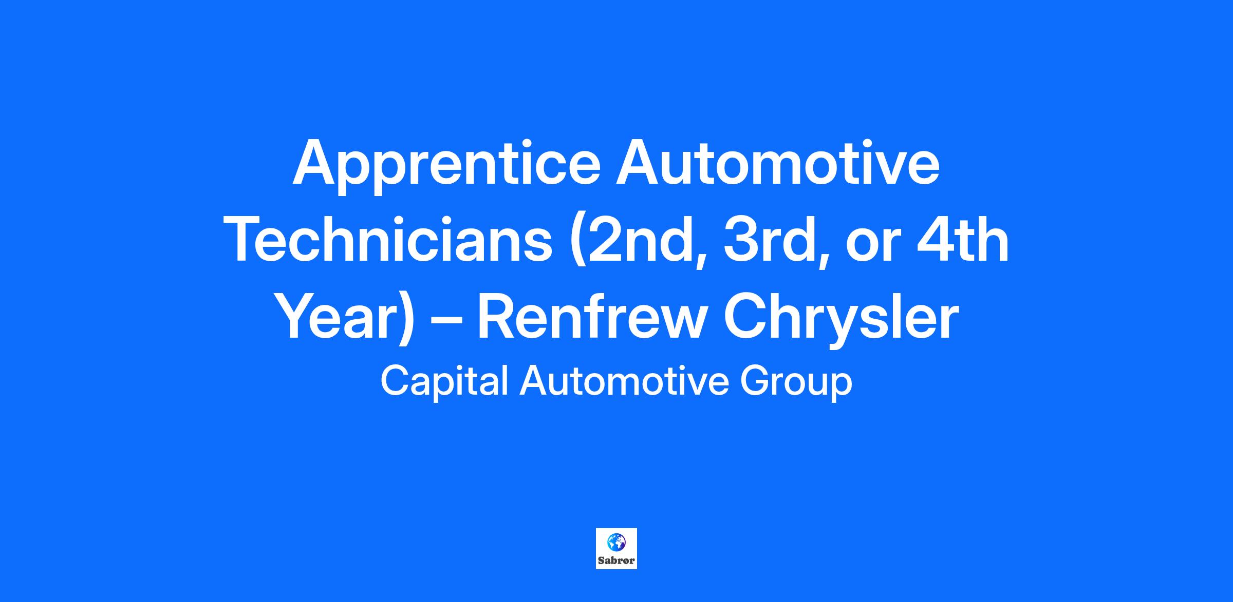 Company: Renfrew Chrysler Dodge Jeep Ram Ltd. Now Hiring: Apprentice Automotive Technicians (2nd, 3rd, or 4th Year) – Renfrew Chrysler Dodge Jeep RAM, Calgary Are you ready to take your career to the next level? Renfrew Chrysler Dodge Jeep RAM — the #1 Chrysler store in Canada — is seeking motivated 2nd, 3rd, and 4th-year Apprentice Automotive Technicians to join our award-winning service team. This is a rare opportunity to learn in a high-volume shop, refine your skills, and build your career with unparalleled growth potential. Why Choose Renfrew Chrysler? Competitive wages for apprentices, with production bonuses. State-of-the-art facility equipped with OEM diagnostic tools and modern equipment. Hands-on mentorship from experienced Journeyman Technicians. Consistently busy shop with steady work and ongoing learning opportunities. Paid manufacturer training courses. Comprehensive Benefits and Perks Full health and dental benefits, including prescription, paramedical, and life insurance. Boot allowance and professionally cleaned uniforms provided. Employee discounts on vehicles, parts, and service. Company events and social gatherings to build a strong team culture. Career growth opportunities with advancement potential within our dealership network. Who We Are Looking For Apprentice automotive technicians at the 2nd, 3rd, or 4th-year level. Hardworking individuals eager to learn and grow in the trade. Candidates with strong work ethic, reliability, and attention to detail. Experience with Chrysler, Dodge, Jeep, and Ram vehicles is an asset, but not required. Join Our Team This is more than just an apprenticeship — it’s your chance to gain experience at the top-performing Chrysler store in the country. If you’re motivated, driven, and ready to work alongside some of the best technicians in the industry, we want to hear from you. Apply today to start your journey with Renfrew Chrysler Dodge Jeep Ram in Calgary! At Capital Automotive Group, our vision is to be the most respected auto group in North America. In keeping with our mission, we strive to move customers’ lives forward with the best in automotive solutions, service and people. Through demonstrating our core values of respect, transparency, care, excellence, and innovation, we stand out from the rest and create a growth-driven organization. Capital Automotive Group, founded in 1974, has expanded and continues to grow significantly. Our team consists of service technicians, product specialists and support staff from each location. Capital Automotive Group believes in providing an inclusive workplace where all individuals have the opportunity to succeed. We are committed to doing so by providing accessible employment practices. Requests for accommodation due to a disability can be made at any stage of the recruitment process. There is one clear answer on how we’ve become a leading provider in the automotive industry. It is the people at Capital Automotive Group who make us who we are. They come from a variety of professional backgrounds, at all career levels from the most junior to the most senior. If you share our commitment to doing what’s best for our customers, enjoy working in teams and hold yourself to the highest ethical standards, you will fit right in.