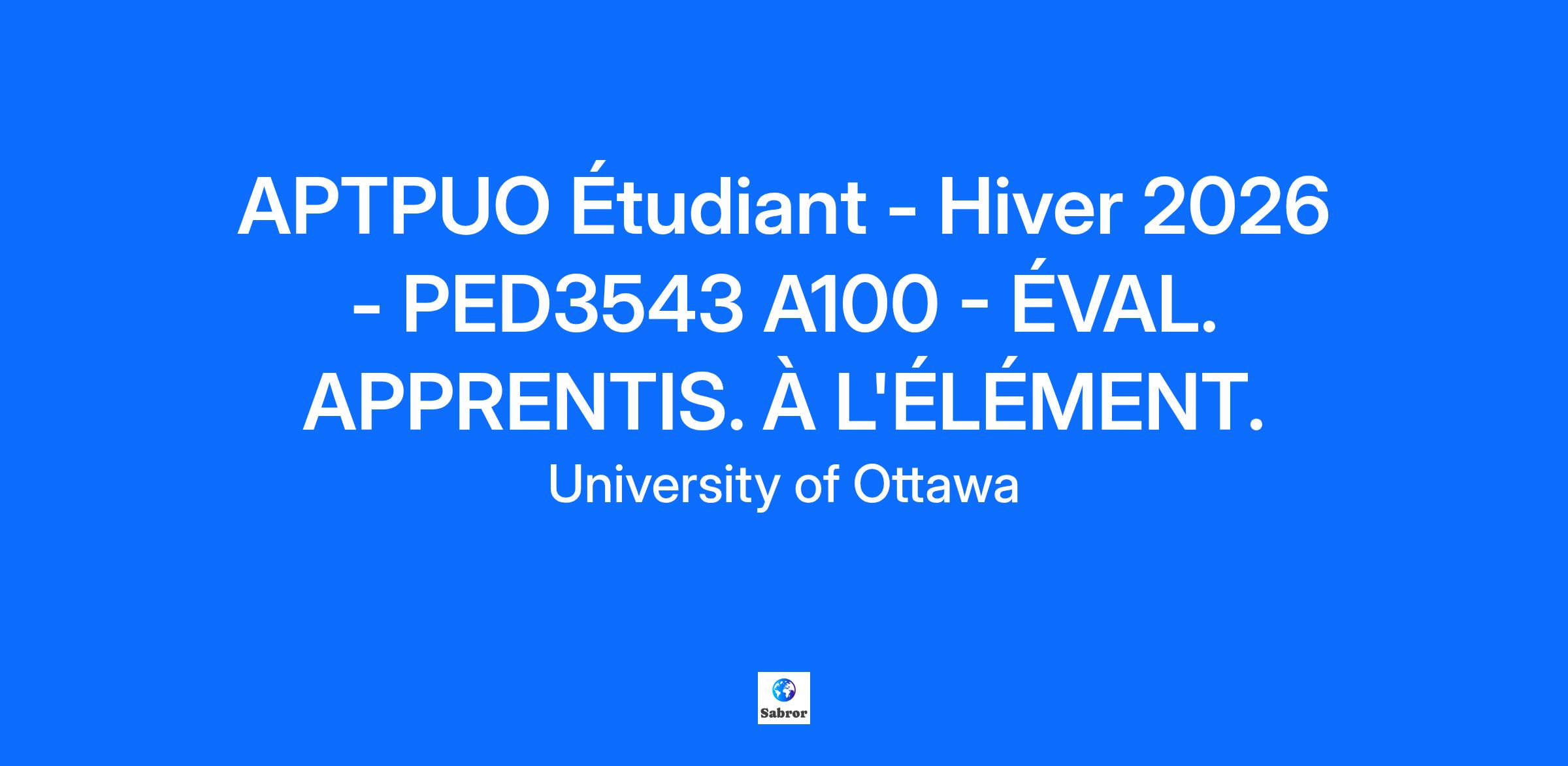 Location: Main Campus Session: 2026 Winter Semester | Trimestre d'hiver Faculty: Faculté d'éducation / Faculty of Education Unit: Undergraduate Programs_Part Time Professors Course Title: Évaluation des apprentissages à l'élémentaire Course Code: PED3543 Section: A100 Course Description: Étude des différentes étapes de l'évaluation scolaire. Développement et analyse d'outils d'évaluation. Étude des contenus en lien avec les politiques du Ministère de l'Éducation de l'Ontario. Développement du jugement en évaluation des apprentissages. Étude de la nature, des fonctions et des finalités de l'évaluation. Posting limited to: Professeur à temps-partiel étudiant / Student Part-Time Professor Date Posted (YYYY/MM/DD): 2025/09/22 Applications must be received BEFORE (YYYY/MM/DD): 2025/10/23 Expected Enrolment: 42 Approval date: 2025/09/22 Number of credits: 3 Work Hours: 39 Course type: B Posting type: Régulier / Regular Language of instruction: Français | French Competence in second language: Passive Course Schedule: Lundi | Monday 8:30-11:30 Mercredi | Wednesday 8:30-11:30 - Cours offert en présentiel Requirements: Un niveau d'éducation/d'expérience jugé équivalentes pourrait suppléer aux exigences d'éducation et/ou d'expérience requises. Si on vous invite à poursuivre les étapes du processus de sélection, veuillez nous aviser de tout besoin nécessitant des mesures d'adaptation. Les renseignements communiqués seront traités avec respect et confidentialité. Les employé(e)s sont tenus(e) par la loi provinciale de mener à bien des formations obligatoires. La liste des formations peut être modifiée par une loi provincial. - Maîtrise en éducation requise; la préférence sera accordée à un doctorat en éducation. - Au moins un parmi : Expérience récente en enseignement à temps plein dans une école ou en administration au sein d'un conseil scolaire, incluant deux ans de mise en oeuvre du curriculum de l'Ontario (matière - français) avec une qualification spécialiste (matière - français) ou dossier de recherche actuel et arbitré (matière - français), ou examen de synthèse (Ph.D.) récent (matière - français). Connaissance démontrée du Curriculum de l'Ontario actuel se rapportant au français et des documents du ministère de l'Éducation de l'Ontario se rapportant au français. Capacité prouvée à appliquer les Normes d'exercice de la profession et le Code de déontologie de l'Ordre des enseignantes et des enseignants l'Ontario. - L'Université peut considérer l'expérience ou des qualifications équivalentes à celles mentionnées ci-haut. Cours offert en présentiel Additional Information and/or Comments: An acceptable level of education and/or experience could be viewed as being equivalent to the educational required and/or demonstrated experience. If you are invited to continue the selection process, please notify us of any adaptive measures you might require. Information you send us will be handled respectfully and in complete confidence. Employees are required under provincial law to successfully complete all mandatory legislated training. The list of training may be modified by provincial law. The hiring process will be governed by the current APTPUO collective agreements; you can click here for the main unit, here for the OLBI unit, or here for the Toronto/Windsor unit to find out more. The University of Ottawa embraces diversity and inclusion in the workplace. We are passionate about our people and committed to employment equity. We foster a culture of respect, teamwork and inclusion, where collaboration, innovation, and creativity fuel our quest for research and teaching excellence. While all qualified persons are invited to apply, we welcome applications from qualified Indigenous persons, racialized persons, persons with disabilities, women and LGBTQIA2S+ persons. The University is committed to creating and maintaining an accessible, barrier-free work environment. The University is also committed to working with applicants with disabilities requesting accommodation during the recruitment, assessment and selection processes. Applicants with disabilities may contact vra.affairesprofessorales@uottawa.ca to communicate the accommodation need. All qualified candidates are encouraged to apply; however, Canadians and permanent residents will be given priority. Prior to May 1, 2022, the University required all students, faculty, staff, and visitors (including contractors) to be fully vaccinated against Covid-19 as defined in Policy 129 – Covid-19 Vaccination. This policy was suspended effective May 1, 2022 but may be reinstated at any point in the future depending on public health guidelines and the recommendations of experts. Start by filtering by Full/Part-time Then filter by Job Type: Academic Term for Part-Time Professor positions Academic Regular for Full-Time Professor positions For Canada Research Chair positions, filter the Academic Regular results by the Job Profile filter for “CRC” Admin Regular or Admin Term for all administrative and support positions, including management and senior leadership roles Student for TA/RA positions and other part-time positions available to students Then filter by Job Category or by Faculty/Service IF you are currently an active employee of the University of Ottawa, please apply using your worker profile in Workday and NOT through this external site. The University of Ottawa is the largest bilingual (English-French) university in the world. Located at the heart of Canada’s capital, we have ready access to the great institutions of our country. Our advances in social sciences, health, engineering, science and the humanities make uOttawa a unique place to learn, grow and excel. The University of Ottawa aspires to employing a staff that fully represents the diversity of Canada's population. As a result, it is committed to employment equity principles and aims to provide an inclusive an