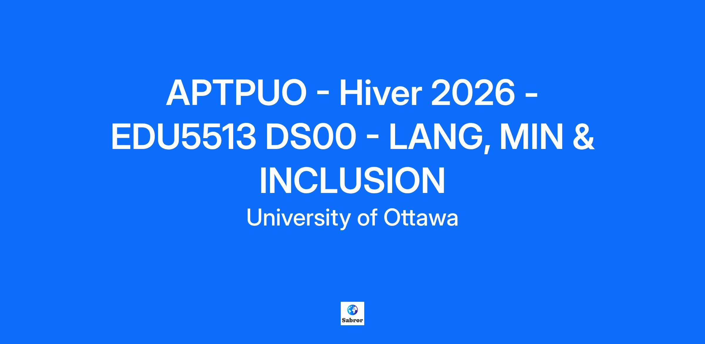 APTPUO - Hiver 2026 - EDU5513 DS00 - LANG, MIN & INCLUSION