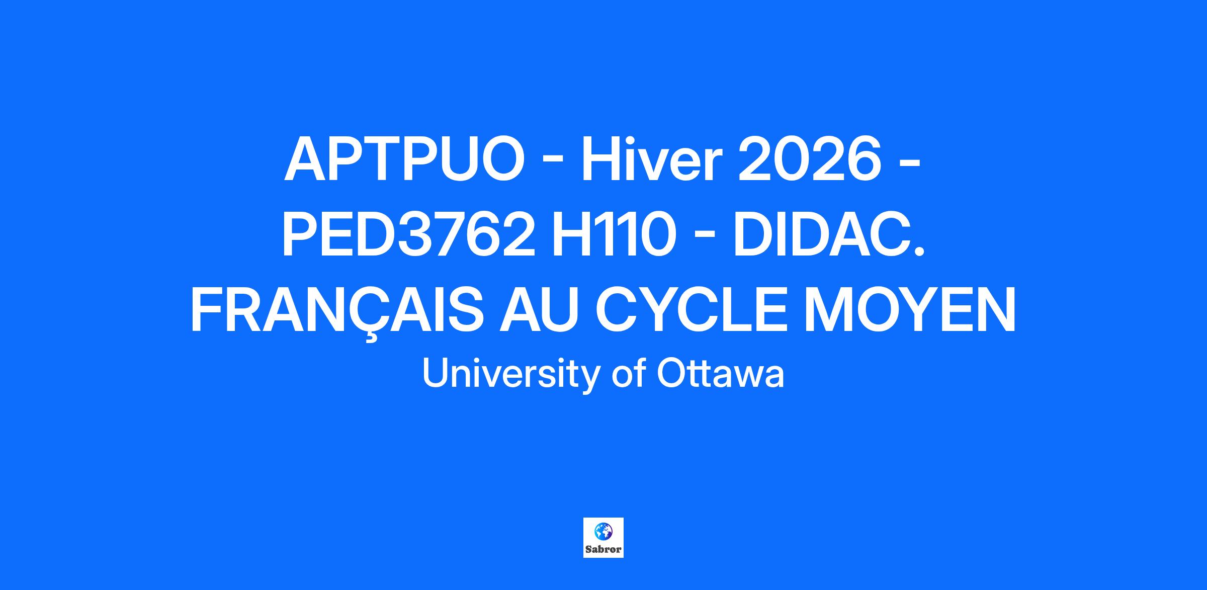 APTPUO - Hiver 2026 - PED3762 H110 - DIDAC. FRANÇAIS AU CYCLE MOYEN