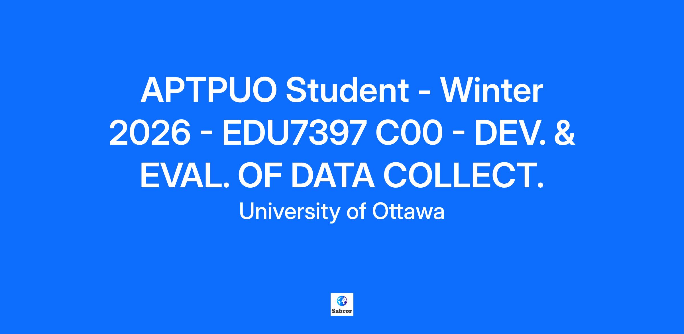 Location: Main Campus Session: 2026 Winter Semester | Trimestre d'hiver Faculty: Faculté d'éducation / Faculty of Education Unit: Graduate Programs_PT Professors Course Title: Development and Evaluation of Data Collection Instruments Course Code: EDU7397 Section: C00 Course Description: Development and Evaluation of Data Collection Instruments Study of the construction of data collection instruments and of the validation of interpretations of findings. Posting limited to: Professeur à temps-partiel étudiant / Student Part-Time Professor Date Posted (YYYY/MM/DD): 2025/09/25 Applications must be received BEFORE (YYYY/MM/DD): 2025/10/26 Expected Enrolment: 35 Approval date: 2025/09/25 Number of credits: 3 Work Hours: 39 Course type: C Posting type: Régulier / Regular Language of instruction: Anglais | English Competence in second language: Passive Course Schedule: Lundi | Monday 17:30-20:30 - - This course is offered on campus IN PERSON Requirements: Currently registered in a PhD program in education Completed Comprehensive Examinations Successfully Publications in the field of study within the last 5 years Expertise in this subject area Experienced in e-learning Additional Information and/or Comments: An acceptable level of education and/or experience could be viewed as being equivalent to the educational required and/or demonstrated experience. If you are invited to continue the selection process, please notify us of any adaptive measures you might require. Information you send us will be handled respectfully and in complete confidence. Employees are required under provincial law to successfully complete all mandatory legislated training. The list of training may be modified by provincial law. The hiring process will be governed by the current APTPUO collective agreements; you can click here for the main unit, here for the OLBI unit, or here for the Toronto/Windsor unit to find out more. The University of Ottawa embraces diversity and inclusion in the workplace. We are passionate about our people and committed to employment equity. We foster a culture of respect, teamwork and inclusion, where collaboration, innovation, and creativity fuel our quest for research and teaching excellence. While all qualified persons are invited to apply, we welcome applications from qualified Indigenous persons, racialized persons, persons with disabilities, women and LGBTQIA2S+ persons. The University is committed to creating and maintaining an accessible, barrier-free work environment. The University is also committed to working with applicants with disabilities requesting accommodation during the recruitment, assessment and selection processes. Applicants with disabilities may contact vra.affairesprofessorales@uottawa.ca to communicate the accommodation need. All qualified candidates are encouraged to apply; however, Canadians and permanent residents will be given priority. Prior to May 1, 2022, the University required all students, faculty, staff, and visitors (including contractors) to be fully vaccinated against Covid-19 as defined in Policy 129 – Covid-19 Vaccination. This policy was suspended effective May 1, 2022 but may be reinstated at any point in the future depending on public health guidelines and the recommendations of experts. Start by filtering by Full/Part-time Then filter by Job Type: Academic Term for Part-Time Professor positions Academic Regular for Full-Time Professor positions For Canada Research Chair positions, filter the Academic Regular results by the Job Profile filter for “CRC” Admin Regular or Admin Term for all administrative and support positions, including management and senior leadership roles Student for TA/RA positions and other part-time positions available to students Then filter by Job Category or by Faculty/Service IF you are currently an active employee of the University of Ottawa, please apply using your worker profile in Workday and NOT through this external site. The University of Ottawa is the largest bilingual (English-French) university in the world. Located at the heart of Canada’s capital, we have ready access to the great institutions of our country. Our advances in social sciences, health, engineering, science and the humanities make uOttawa a unique place to learn, grow and excel. The University of Ottawa aspires to employing a staff that fully represents the diversity of Canada's population. As a result, it is committed to employment equity principles and aims to provide an inclusive and barrier-free workplace. The University of Ottawa offers a generous pay and benefits package that includes a competitive salary, a defined benefit pension plan, group insurance coverage and an employee and family assistance program. Explore Our Benefits