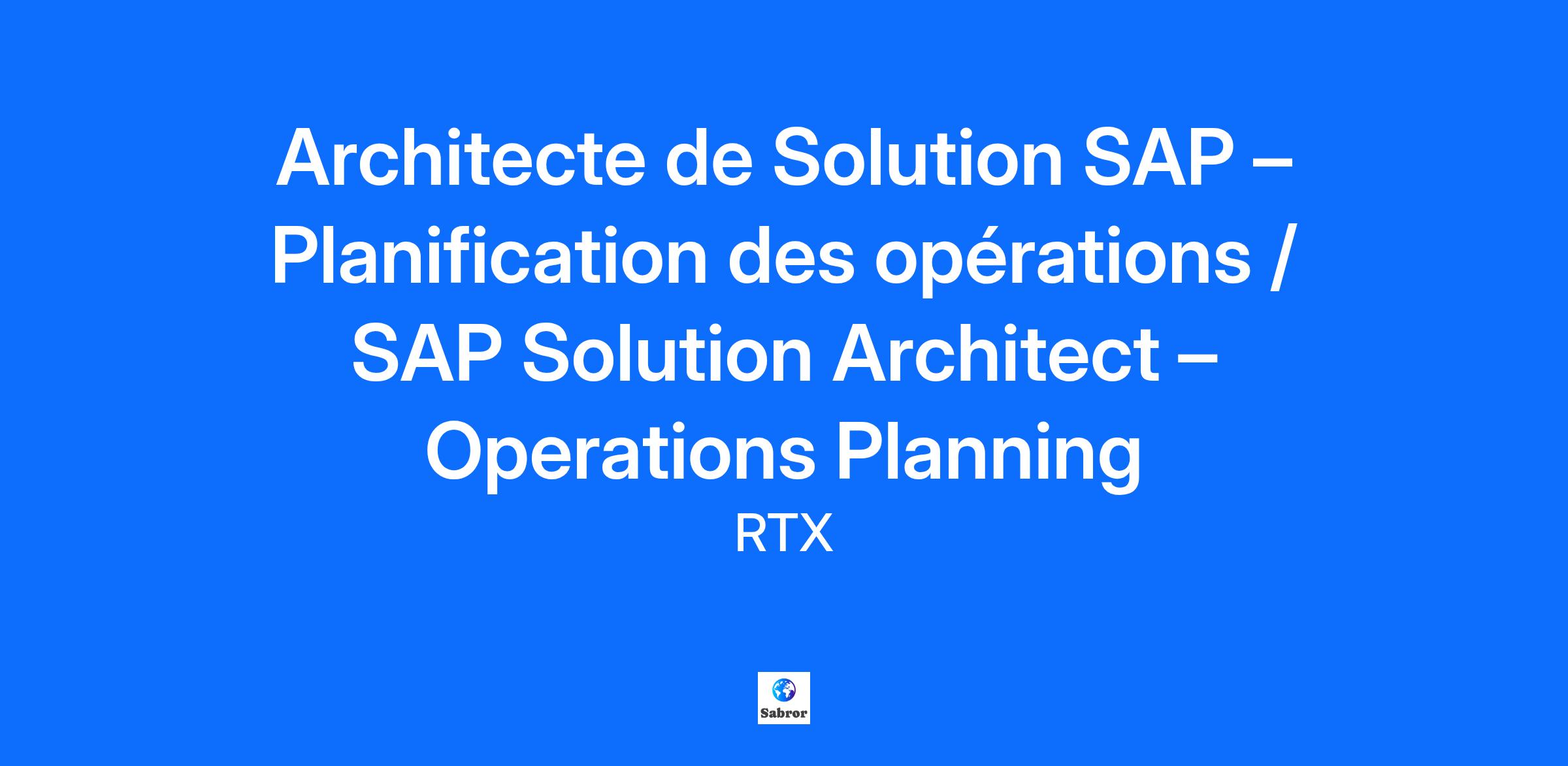 Job Title: SAP Solution Architect – Operations Planning