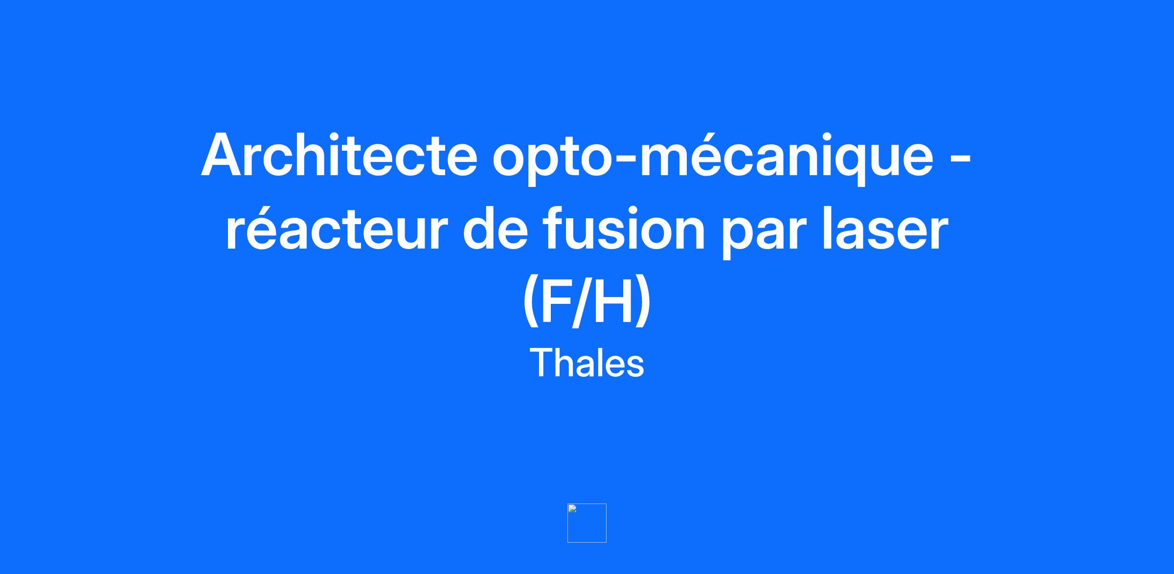 Lieu : Bordeaux, France Construisons ensemble un avenir de confiance Thales est un leader mondial des hautes technologies spécialisé dans trois secteurs d’activité : Défense & Sécurité, Aéronautique & Spatial, et Cyber & Digital. Il développe des produits et solutions qui contribuent à un monde plus sûr, plus respectueux de l’environnement et plus inclusif. Le Groupe investit près de 4 milliards d’euros par an en Recherche & Développement, notamment dans des domaines clés de l’innovation tels que l’IA, la cybersécurité, le quantique, les technologies du cloud et la 6G. Thales compte près de 81 000 collaborateurs dans 68 pays. Nos engagements, vos avantages Une réussite portée par notre excellence technologique, votre expérience et notre ambition partagée Un package de rémunération attractif Un développement des compétences en continu : parcours de formation, académies et communautés internes Un environnement inclusif, bienveillant et respectant l’équilibre des collaborateurs Un engagement sociétal et environnemental reconnu Votre quotidien Notre site du Barp, situé entre Bordeaux et Arcachon, est spécialisé dans le développement, l’intégration et le Maintien en Conditions Opérationnelles de systèmes et d’équipements générant ou amplifiant des signaux de très fortes puissances. Au sein de GenF, vous serez en charge de l’architecture d’un démonstrateur d’irradiation qui combinera un grand nombre de lasers de puissance. Vos missions principales seront : A partir des exigences attendues vous établirez l’architecture fonctionnelle et physique du démonstrateur et proposerez ses concepts principaux : structure mécanique et opto-mécanique, concept d’alignement, de contrôle de position et de synchronisation entre lasers et cibles, moyens de métrologie et méthodes de contrôle actif. Vous établirez les spécifications des sous-systèmes en établissant des budgets de performance et de tolérancement, incluant les interfaces et exigences du bâtiment (vibration, contrôle de température, …). Vous participerez activement à la stratégie « Make/Team/Buy » du projet : choix de sous-traiter des lots de travaux (études intermédiaires, calculs, développements de fonctions ou modules, fabrication de sous-ensembles) en « design to spec » ou « built to spec ». Vous serez le pilote technique d’une équipe multidisciplinaire d’ingénieurs et de scientifiques. Cette équipe étendue sera constituée de collaborateurs GenF, de ses partenaires (Thales, CEA) ainsi que des sous-traitants sélectionnées pour les développements de lots de travaux. Vous piloterez également l’interface technique avec la maîtrise d’œuvre du bâtiment accueillant l’installation d’irradiation. Vous planifierez et piloterez la phase d’intégration, de vérification, de validation et de qualification du démonstrateur et vous projetterez sur ses évolutions. Votre expertise pourra également être mobilisée sur les travaux de design du réacteur de fusion (ingénierie système, développements des briques laser). Le poste sera basé au Barp (33) avec des déplacements réguliers à prévoir en région parisienne (second site de GenF à Palaiseau). Votre profil Ingénieur et/ou docteur de formation vous avez une expérience : d’au moins 10 ans dans la conception et la réalisation de systèmes complexes répondant à des exigences extrêmes d’alignement et de contrôle de position de sources lumineuses (lasers ou autres). sur l'expertise dans plusieurs des disciplines ou spécialités suivantes : conception mécanique, calcul de structures, conception optique avec notamment le transport et la mise en forme de faisceaux de lumière (lasers par exemple), opto-mécanique, métrologie optique, contrôle de vibration, contrôle actif de position. sur la proposition des solutions offrant les meilleurs compromis performance / coût et savez affecter les spécifications système vers les sous-systèmes fonctionnels et logiques. sur le pilotage de sous-traitance de lots d’ingénierie. Si vous êtes curieux, avez une forte culture scientifique et technique et appréciez de travailler au sein d’équipes de domaines variés de l’ingénierie et de la science alors ce poste est fait pour vous ! Thales, entreprise Handi-Engagée, reconnait tous les talents. La diversité est notre meilleur atout. Postulez et rejoignez nous !