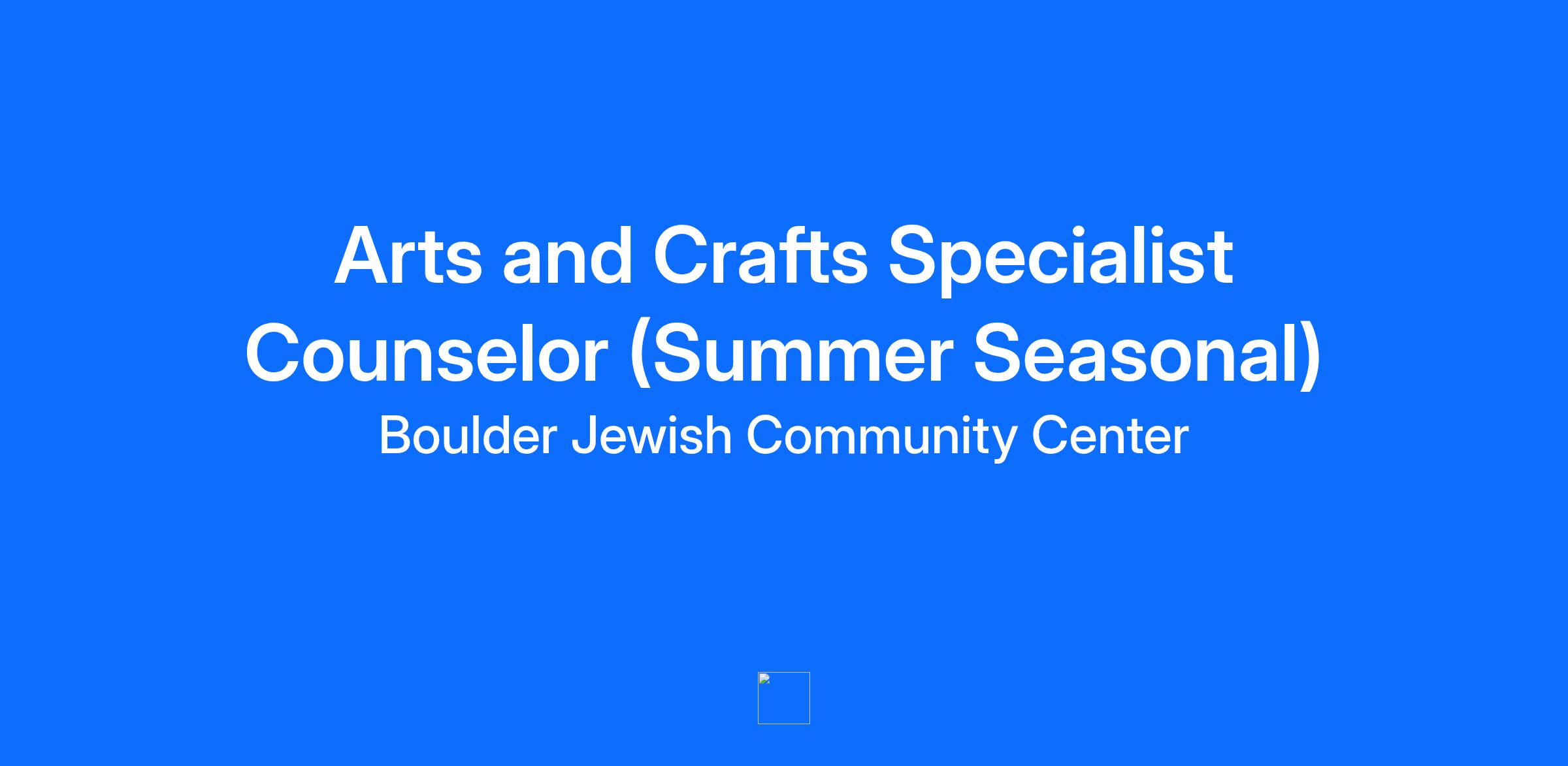 Description Job Summary Do you enjoy sharing your love of arts and crafts? Do you like helping people discover their inner creativity? Do you love introducing kids to new mediums and tools to express themselves? Are you inspired to create positive change in our community? Would you thrive working in a collaborative and supportive environment for a values-driven organization that cares deeply for its employees? If so, the Boulder JCC might be the place for you. If you like working with kids; our dynamic and community-centered organization is looking for an energetic, conscientious, and resourceful Arts and Crafts Specialist to join our team for the season. Our summer day camp program serves children ages 4-12 and we are looking for a passionate, creative Arts and Crafts specialist. RESPONSIBILITIES Serve as lead educator for Arts and Crafts instruction for the Cherryvale Day Camp Program with potential to lead our two week speciality Arts and Crafts Camp, “Get Crafty”. Develop and document diverse, age appropriate activities for each group. Assist in creating and implementing art projects for other speciality camps, including Farm and Nature camps. Maintain a safe and healthy environment for campers, abiding by all camp rules and policies. Assist any camper with empathy and patience. Enthusiastically participate in all camp programs and activities. Assisting in camp groups when staff support is needed Work with the leadership team (Assistant Camp Director, Program Coordinator, Camp Director, Camper Care Specialist, Kindergarten Camper Care Specialist) as needed. WORKING ENVIRONMENT This role is in-person, seasonal, and full time during the camp season, May 18 - August 7, 2026. Our Camps programs are operated outdoors unless weather prohibits it. Working conditions include spending full days under the sun in all temperatures. Arts and crafts will have a designated tent space. We have two full weeks of training before camp begins. Requirements QUALIFICATIONS Must be over the age of 18. Background in area of Specialty expertise education or instruction Experience or willingness to work with children (ages 4 – 12) Ability to integrate camp values in programs Has the ability to think and act creatively, be flexible, demonstrate pride of work, and is caring about the individuals they serve. Physical Requirements While performing regular duties, you will be required to sit, stand, reach, walk, or kneel, and to lift and/or move up to 25 pounds. The physical demands described here are representative of those that must be met by an employee to successfully perform the essential functions of this job. Reasonable accommodations may be made to enable individuals with disabilities to perform the essential functions. While this role is primarily seasonal, from May - August, there is opportunity for a limited number of staff to extend beyond seasonal capacity. COMPENSATION This is a non-exempt hourly position with a salary range of $17.25-18.50/hour commensurate with experience. This is a 40-hour a week position May-August. The benefits for seasonal and temporary employees currently include a 403b retirement plan with generous company match, sick leave and more. The anticipated closing of this position is May 4, 2026. APPLY NOW Applications are accepted here. Once you submit your application, a member of our hiring team will be in touch if we would like to schedule an interview. An offer of employment in this position will be contingent on the successful completion of a background check. We look forward to hearing from you! The Boulder JCC's mission is to be a home for community that builds relationships, embraces differences, and embodies what Jewish life can be. We are a central gathering place for people of all ages and backgrounds that supports the JCC's values of community, joy, care, respect, growth, and generosity. Reasonable Accommodations The Boulder JCC is committed to providing reasonable accommodations to qualified individuals with disabilities to enable them to perform the essential functions of the job. The organization engages in an interactive process with applicants and employees who request accommodations and makes determinations on a case-by-case basis. Accommodations may be available during the application process as well as during employment. Requesting an accommodation will not adversely affect employment opportunities or status. All information regarding disabilities and accommodation requests will be kept confidential in accordance with applicable laws. Don't meet every single requirement? Studies have shown that women and people of color are less likely to apply for jobs unless they meet every single qualification. At the Boulder Jewish Community Center, we are dedicated to building a diverse, inclusive, and authentic workplace, so if you're excited about these roles but your past experience doesn't align perfectly with every qualification noted above, we encourage you to apply. You may be just the right candidate for this or other positions. The Boulder JCC is an Equal Opportunity Employer and does not discriminate on the basis of race, color, religion, national origin, sex, age, disability, sexual orientation, gender identity, or any other status protected by law.