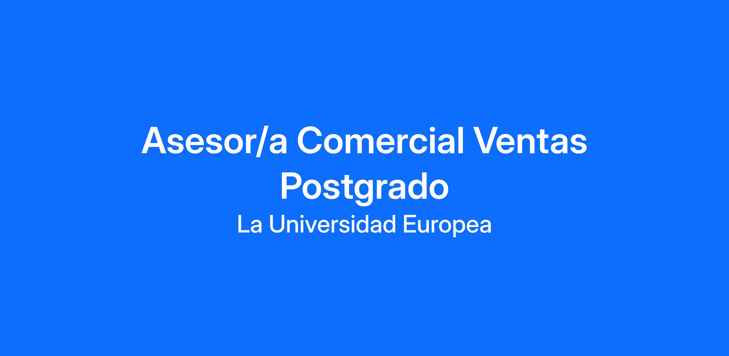 Desde la Universidad Europea de Madrid estamos en búsqueda de un/a Asesor /a Comercial para nuestro Equipo de Ventas Postgrado cuya misión será transmitir los valores de nuestra Universidad a nuestros futuros estudiantes y motivarles en su elección formativa.