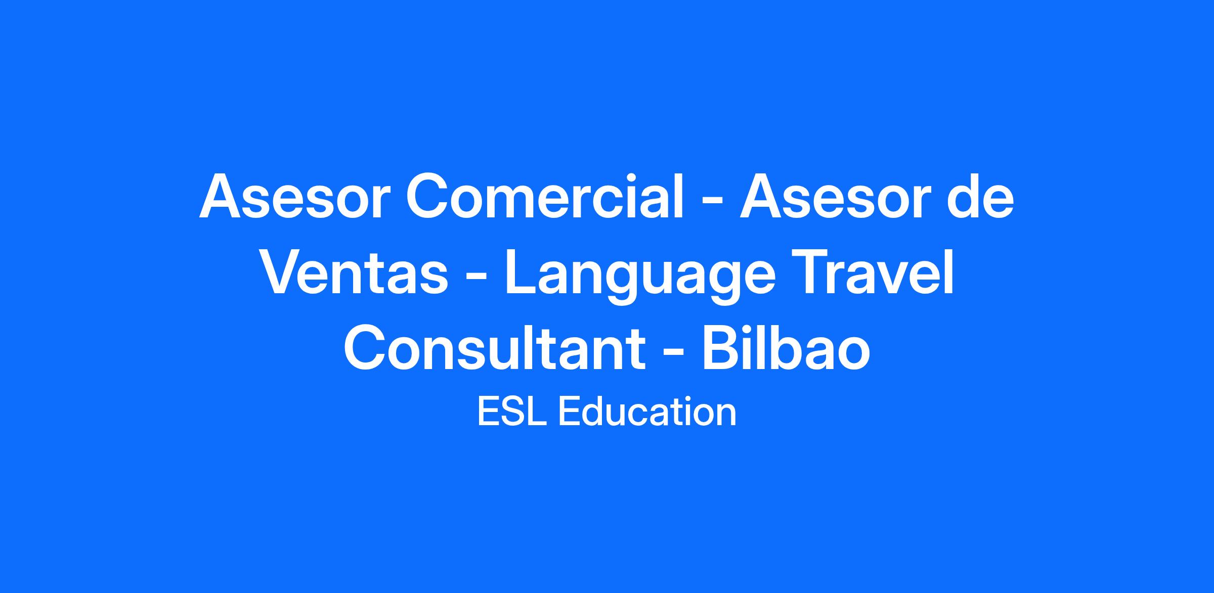 En ESL Languages buscamos incorporar un/a Asesor/a Comercial de Programas de Idiomas para nuestra oficina de Bilbao.