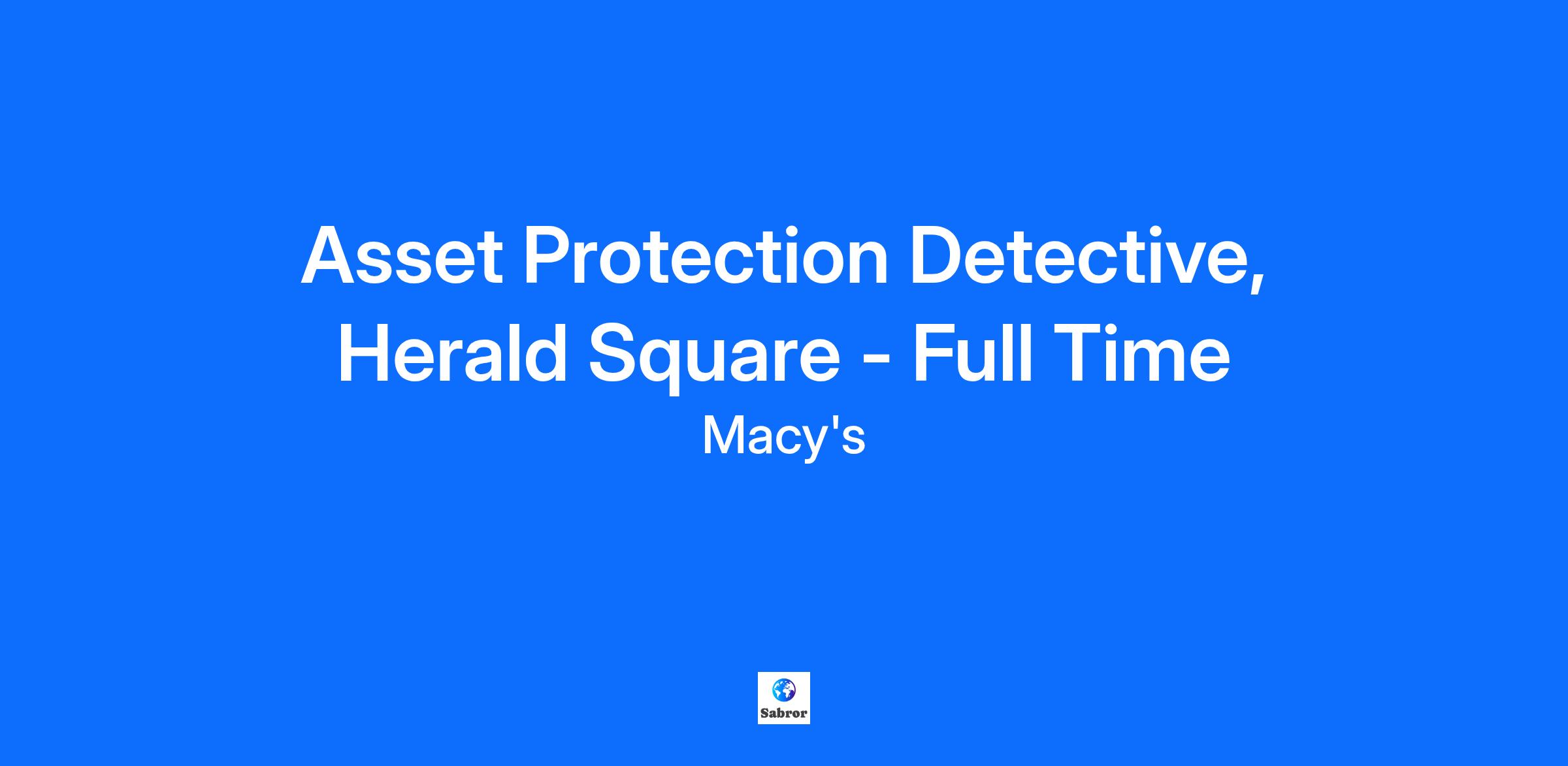 Asset Protection Detective, Herald Square - Full Time