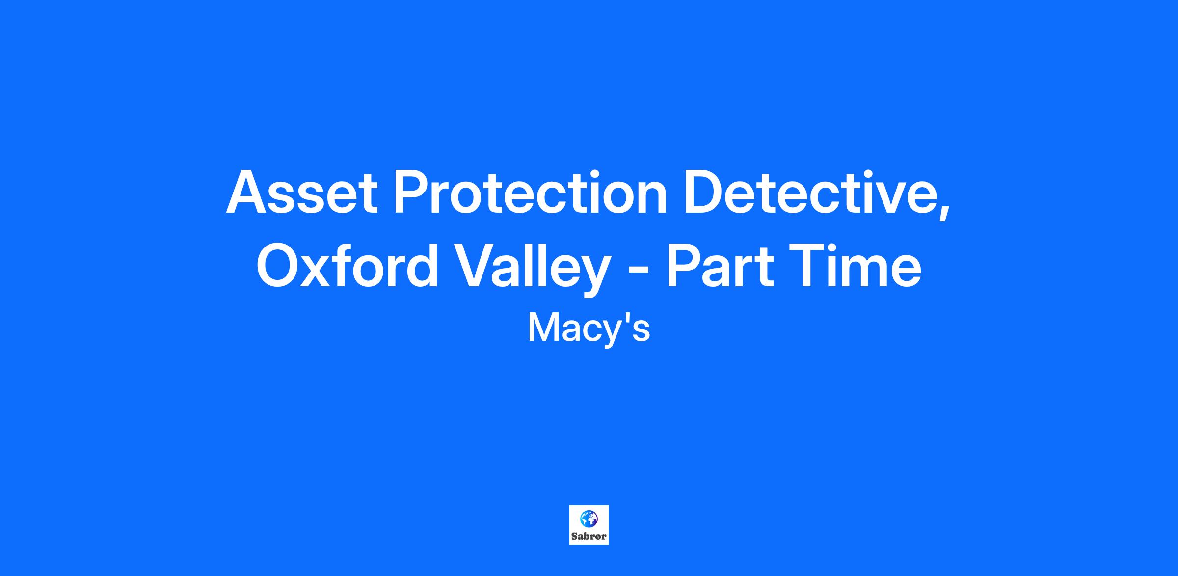 Asset Protection Detective, Oxford Valley - Part Time