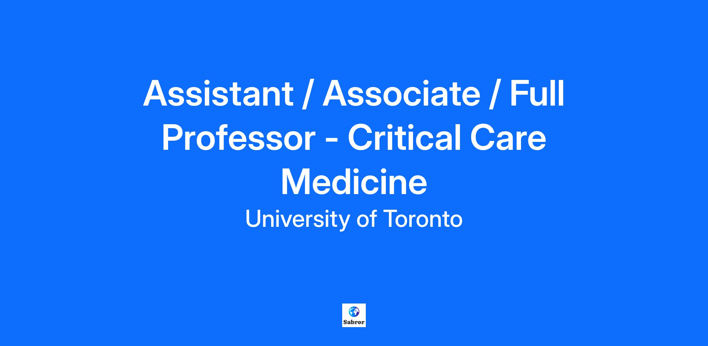Date Posted: 09/23/2025 Closing Date: 10/28/2025, 11:59PM ET Req ID: 45255 Job Category: Faculty - Clinical Faculty/Division: Temerty Faculty of Medicine Department: Dept of Paediatrics Hospital Affiliation: Hospital for Sick Children Campus: St. George (Downtown Toronto) Description: Effective July 1, 2026, the Department of Paediatrics, Temerty Faculty of Medicine at the University of Toronto and the Department of Critical Care Medicine at The Hospital for Sick Children, 555 University Avenue, Toronto, Ontario, an academic health science centre dedicated exclusively to children, affiliated with the University of Toronto, is recruiting a full-time permanent staff intensivist. The successful candidate will be eligible for a full-time clinical academic appointment at the University of Toronto at the rank of Assistant, Associate, or Full Professor. Dedicated exclusively to children and their families, SickKids is a world-renowned, state-of-the-art paediatric health care facility affiliated with the University of Toronto. The hospital is committed to ongoing learning and development and features a caring and supportive work environment. The Division of Pediatric Intensive Care is currently comprised of 12 Physicians and is responsible for the comprehensive care for all patients admitted to the Pediatric Intensive Care Unit, including mechanical support of the circulation. Evidence of excellence in teaching, research and/or other scholarly work is required. Clinical and/or research expertise in transport medicine, respiratory failure, respiratory physiology and/or mechanical ventilation is preferred. The successful candidate must have training and extensive clinical experience in Pediatric Intensive Care. The successful candidate must be committed to a career as an academic clinician. The successful candidate’s responsibilities include full-time equivalent clinical Pediatric Intensive Care practice, research, education, and administrative responsibilities as required by a Staff Physician in the Department of Critical Care Medicine. Clinical duties will include; being the Most Responsible Physician for critically ill children admitted to the PICU. This includes being responsible for all management decisions, assessments and engagement and consultations with other clinicians in the care of patients admitted to this unit. Performing procedures as required while caring for critically ill children admitted to the PICU. Providing advice to referring physicians from SickKids catchment areas who call to seek help when caring for a critically ill child at their hospital. This includes providing management suggestions and dispatching our critical care transport team to retrieve these patients and transport them to SickKids. Providing an in-hospital consultation service to assist in the care of acutely unwell children admitted to SickKids via our Critical Care Response Team. All candidates must be able to function proficiently in English, hold an MD, MBBS or equivalent thereto and be certified or eligible for certification by the Royal College of Physicians and Surgeons of Canada or have comparable qualifications. Candidates must hold or be eligible for licensure with the College of Physicians and Surgeons of Ontario. This position will remain open until filled. Rank and salary ($266,000-$380,000) per annum (at time of writing); for 35 hours per week plus on call responsibilities, will be commensurate with qualifications and experience. Periodic billing overage distributions may be received over and above base salary. Support for relocation expenses will be offered. Interested individuals should submit a letter of application, curriculum vitae, and the names and addresses of three referees to: Dr. Elaine Gilfoyle, PICU Division Head, Department of Critical Care email: elaine.gilfoyle@sickkids.ca, The Hospital for Sick Children, 555 University Avenue, Toronto, Ontario Canada M5G 1X8. CAUTION: This ad is “posted only” to the U of T affiliated hospital job board. Please see the information directly above for the application instructions; applications submitted via the "Apply Now" button on this page will NOT be considered for this position.