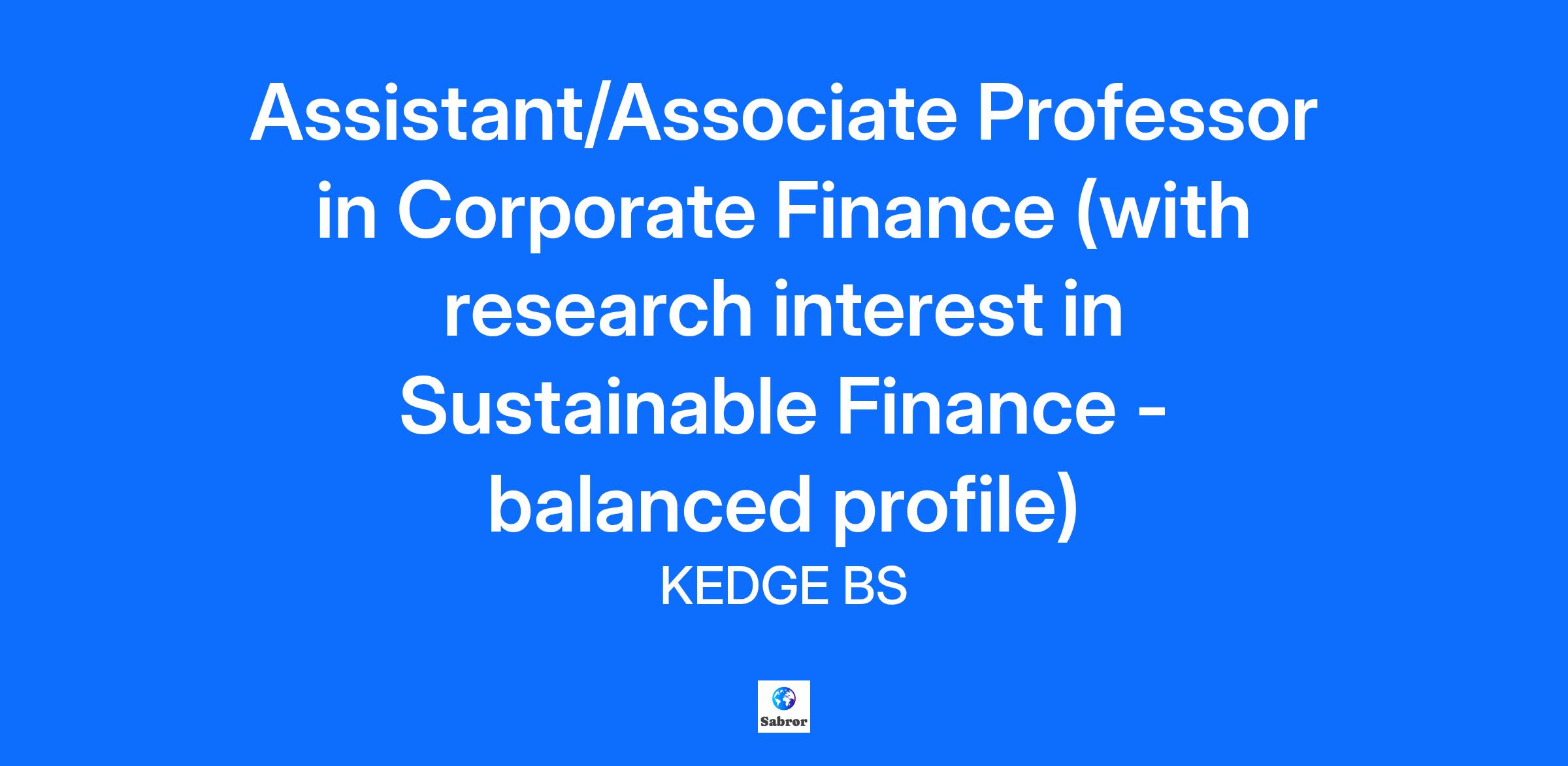 Assistant/Associate Professor in Corporate Finance (with research interest in Sustainable Finance - Balanced profile teaching/research) (Campus of Paris) Finance Department KEDGE Business School is a vibrant business school with 4 campuses in France (Paris, Bordeaux, Marseille and Toulon), 5 international campuses (2 in China, 2 in Africa, and 1 in India), as well as 4 associated campuses in France (Avignon, Bastia, Bayonne, and Mont-de-Marsan). KEDGE Business School offers an international environment, which includes 16,000 students (32% foreign students), 220 full-time faculty members (46% of whom are international) and close to 370 international academic partners. Ranked 34th amongst European Business Schools and 28th worldwide for the Executive MBA by the Financial Times, KEDGE Business School belongs to the elite 1% of business schools worldwide accredited by AACSB, EQUIS, and AMBA, and is a member of the French Conférence des Grandes Écoles. The Finance Department of KEDGE brings together professors from various backgrounds: sustainable and green finance, market finance, corporate finance, data science and fintech. The Finance Department invites applications for 1 position at Assistant/Associate Professor in Corporate Finance (with research interest in Sustainable Finance - Balanced profile teaching/research). Responsibilities : * Teaching and educational development (undergraduate, graduate and post graduate level) * Publication in academic and professional journals * Research Projects with companies or international institutions * Participation in national and international calls for projects * Student supervision and coaching Profile and skills required : * PhD or equivalent in Corporate Finance or related field * Teaching experience related to Corporate Finance * Publication in the areas of Corporate Finance with a specialization in Sustainable Finance * Ability to teach courses in fluent English and French Procedure of application Interested candidates should provide the following elements : * a cover letter containing your motivation for the position * an up-to-date curriculum vitae with a list of publications and most recent representative research papers and experience in research projects engineering * a teaching statement, including course details and recent course evaluations * a research statement * two references that can be contacted * for doctoral students in their last year of PhD, a letter from the thesis director indicating the state of progress of the PhD and the estimated date of defense Compensations and benefits: Permanent contract/ Full time Status: Executive Salary: to be negotiated /over 13 months / Bonuses (research, executive education, extra hours, etc.) Paid leaves 35 days per year + 15 exemption days per year Others benefits: lunch vouchers + mobility bonus + complementary health insurance Support provided for you moving in France (accommodation search, visa procedures, administrative procedures, French lessons, etc.) Starting date: September 2026 If you have questions regarding the position, please contact: Isabelle DUCASSY Head of Finance Department All of the School's employees are aware of the issues of inclusiveness, whether it be disability, gender or equal opportunity. Our school attaches key importance to inclusiveness, which is embodied in two of our strategic pillars: sustainability and inclusiveness.