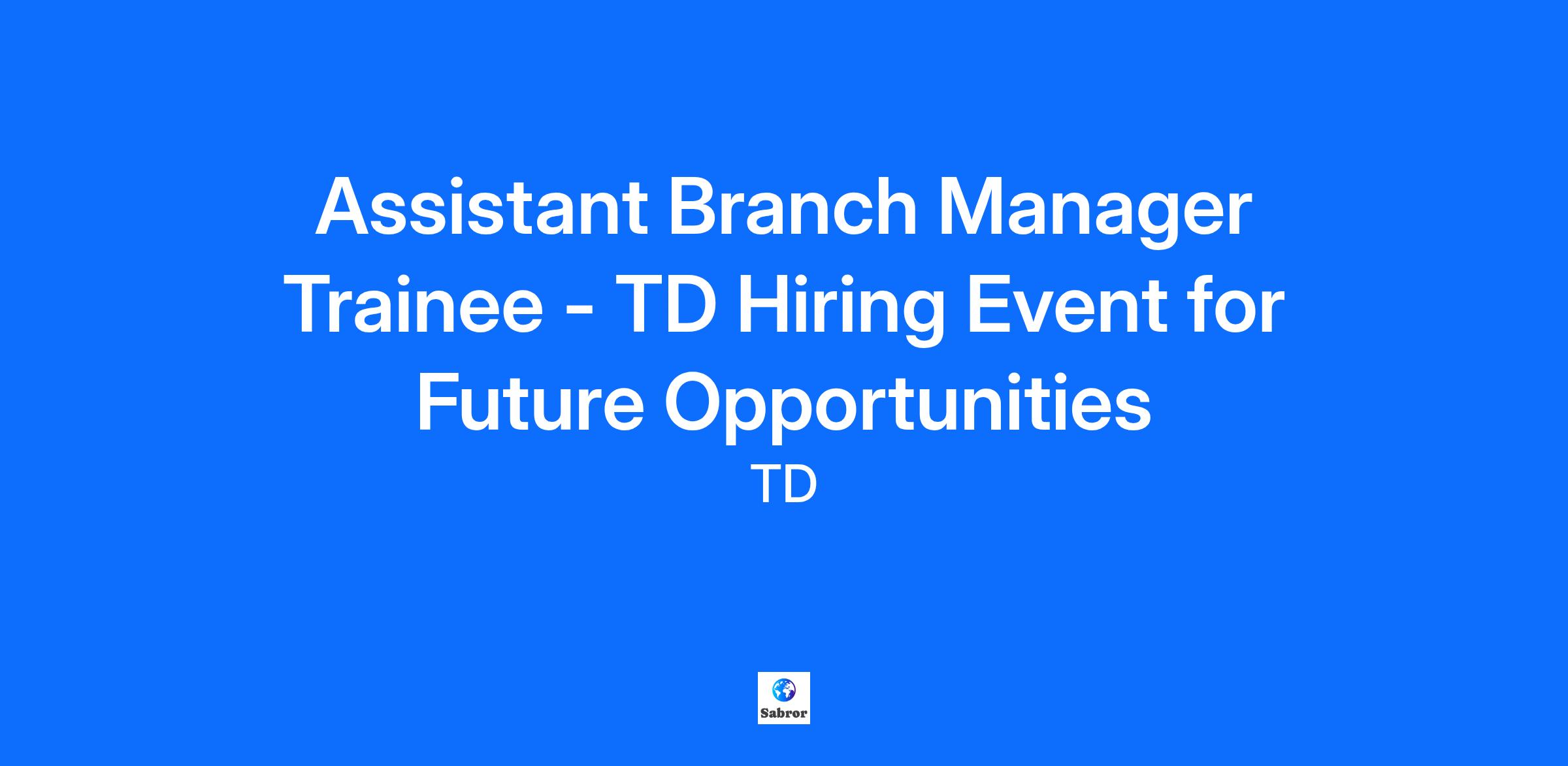 Assistant Branch Manager Trainee - TD Hiring Event for Future Opportunities