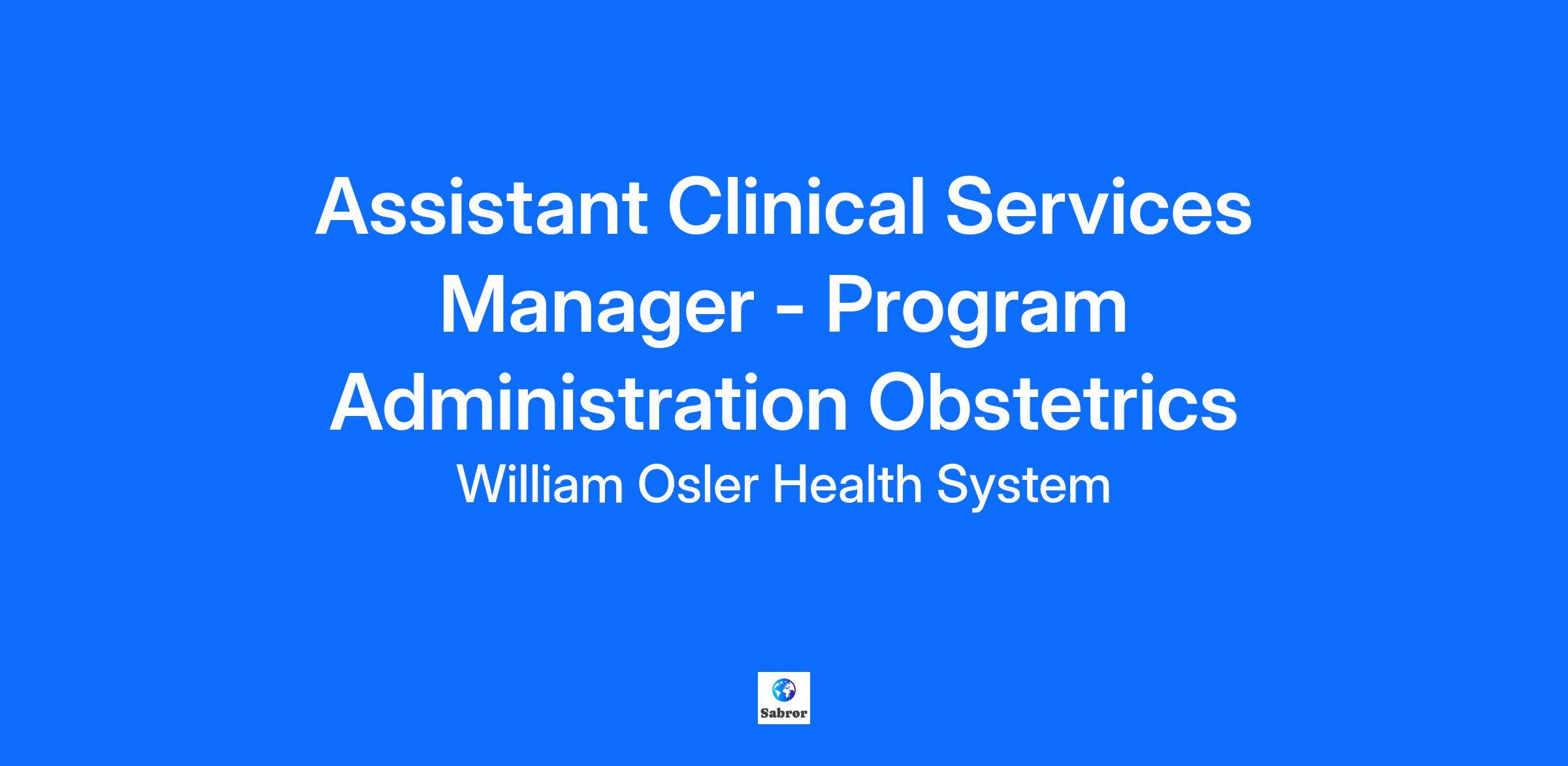 Assistant Clinical Services Manager - Program Administration Obstetrics