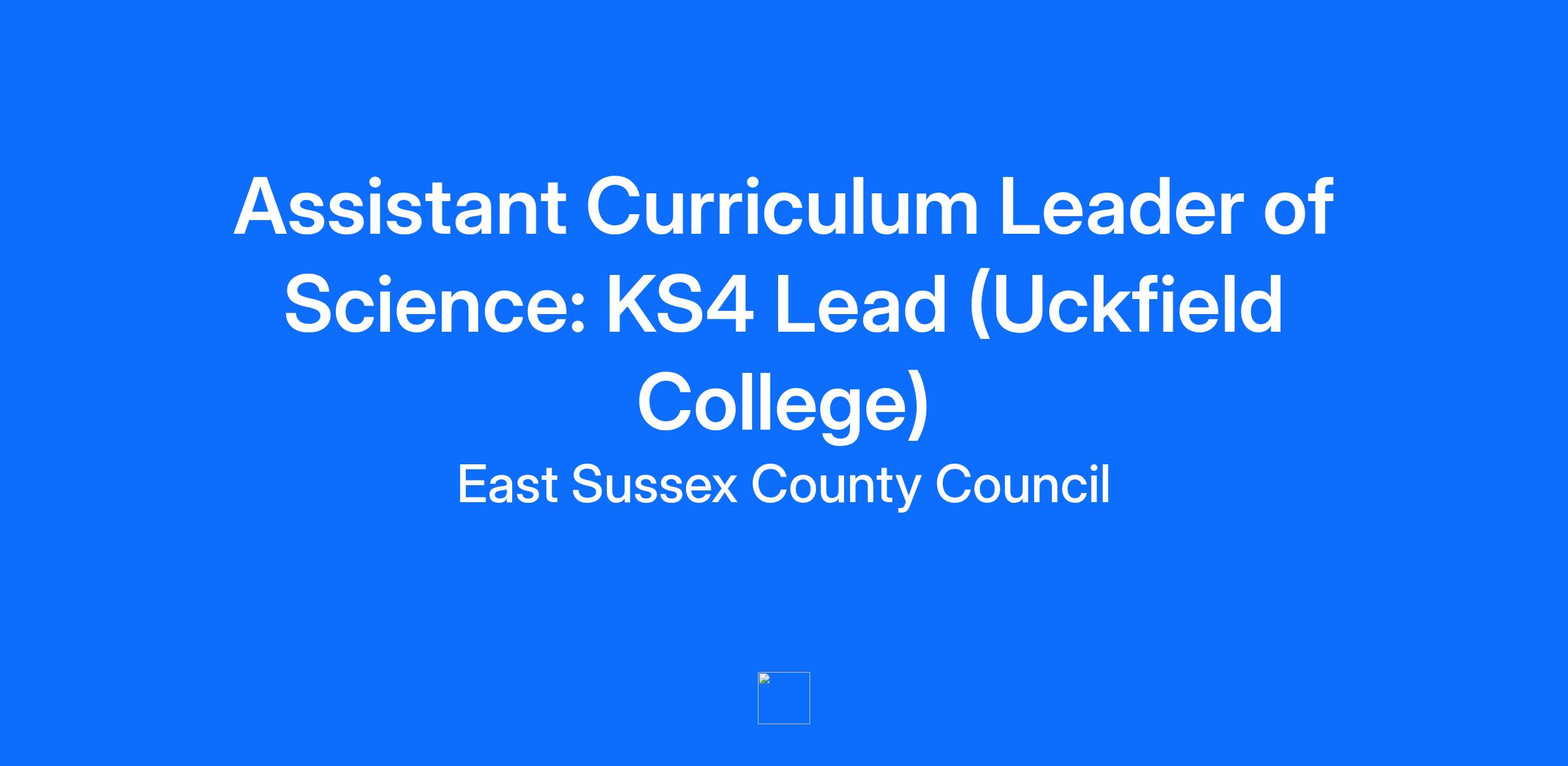 Hours of work: Full-time Teachers Hours Working pattern: Full-time Closing date: 09:00am Monday 12 January 2026 For more information and to apply for the above post, please contact: Uckfield College Downsview Cres, Uckfield TN22 3DJ Phone: 01825 764844 Email: hr@uckfield.college Website: www.uckfield.college Please note, we do not accept CVs. Required for Term 5 2026 or 01 September 2026 Join Our Outstanding Team! Uckfield College is a highly successful and popular college in the heart of rural Sussex yet within commuting distance of Brighton, Eastbourne and the South Coast. The college is an excellent working environment characterised by happy, well-motivated students and innovative and enthusiastic teachers. Following our recent inspection in April 2024, Uckfield College has been awarded an ‘Outstanding’ rating by Ofsted, both as the overall judgement, and in each of the different categories that are evaluated. The Science department is housed in our new main school building. We are seeking to appoint an inspirational and ambitious teacher, who is passionate about Science, to join our forward thinking Science team as Assistant Curriculum Leader of Science: KS4 Lead. A career at Uckfield College offers a rewarding future, with the opportunity to make real changes to the lives and outcomes of our young people. The ideal candidate will be a dynamic and proactive professional who will be responsible for providing excellent teaching in the classroom for Science, lead our Combined Science GCSE cohort from Year 9 to Y11 and who will contribute to our exceptional Super Curricular programme. Working at Uckfield College means joining a vibrant, dedicated and skilled team, who are committed to working collaboratively to achieve real excellence for our students. In return we offer a wealth of staff benefits including: Teachers’ Pension Scheme Extensive professional development opportunities Free on-site parking Employee Assistance Programme, including counselling services Wellbeing initiatives, such as staff breakfasts, free sports activities, and social events For further details and a full application pack, please contact our Human Resources Team on extension 1008, quoting reference ACLS/01/26, or visit our website. Completed applications can be returned via email. We reserve the right to invite candidates for interview prior to the closing date and to close vacancies early if we have sufficient suitable applications. Therefore, we encourage interested applicants to apply as soon as possible. East Sussex County Council is an authority committed to safeguarding and promoting the welfare of children and young people and expects all staff and volunteers to share this commitment.