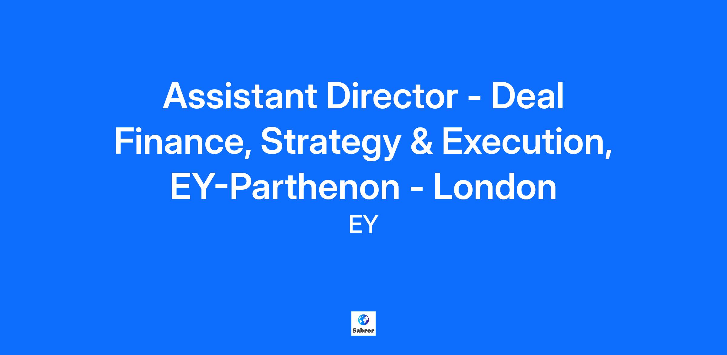 At EY, we’re all in to shape your future with confidence. We’ll help you succeed in a globally connected powerhouse of diverse teams and take your career wherever you want it to go. Join EY and help to build a better working world. Assistant Director (Senior Manager), Deal Finance, Strategy & Execution, EY-Parthenon At EY, you’ll have the chance to build a career as unique as you are, with the global scale, support, inclusive culture and technology to become the best version of you. And we’re counting on your unique voice and perspective to help EY become even better, too. Join us and build an exceptional experience for yourself, and a better working world for all. The opportunity At EY-Parthenon, our unique combination of transformative strategy, transactions, tax and corporate finance delivers real-world value – solutions that work in practice, not just on paper. Benefiting from EY’s full spectrum of services, we’ve reimagined strategic consulting to work in a world of increasing complexity. With deep functional and sector expertise, paired with innovative AI-powered technology and an investor mindset, we partner with CEOs, boards, private equity and governments every step of the way. Join our Deal Finance team within the Strategy and Execution practice. We are looking for self-starters passionate about driving value for CFOs across different sectors, including Advanced Manufacturing & Mobility, Telecommunications Media & Technology, Energy, Health Science & Wellness, and Private Equity. The Deal Finance practice at EY consists of a strong team of individuals, with diverse personal & professional backgrounds who have a mix of deep specialisms from consulting to broader finance experience in a range of industry sectors. This rapidly growing team focuses on transactions, supporting clients throughout the capital lifecycle. We are expanding our Deal Finance team, providing exciting opportunities for those dedicated to delivering client value. Our team works across all of EY, drawing on the best and most relevant expertise for our clients. Your key responsibilities As an Assistant Director (Senior Manager) within our S&E team, you’ll assist in aspects of business origination, including pitches and presentations to help sell work and work in a transaction environment operating under tight M&A timeframes and demands. You’ll be familiar working in a large-scale consulting environment or industry role. As an Assistant Director your key role will be responsibility for core aspects of client delivery, ensuring the team are led and the engagement partner is supported. You will be part of a team who: Advise on the impact of merger and acquisition transactions on the finance function and across CFO priorities. Understand and be able to advise on integration challenges, separation challenges, change in ownership (public to private and vice versa). Have analytical and advisory skills across the deal lifecycle – with specific focus on operational due diligence and value creation, including areas such as P&L optimisation, maturity assessments and designing models for scale and cost out. To qualify for the role, you must: Have extensive broad experience from having worked in transactions / finance function as a consultant with a Big 4 or Management Consultancy firm. We may also consider industry experience with roles in some of the core areas of Finance (e.g. FP&A, Financial Control, Commercial / Operational Finance Business Partnering, CFO). Be a qualified accountant – ACA, CIMA, or internationally recognised equivalent finance qualification. Have strong academics and interpersonal skills. Have an ability to demonstrable analytical skills. Have experience of being a change agent in previous roles. The following will be an advantage: Capability to work in a fast paced, deadline driven environment. Skilled in decision making. Experience of leading & supporting a team. Commercially curious and committed to learning. What we are looking for We are looking for candidates who are highly motivated, driven, and have a passion to be part of a fast-paced, successful transaction team. Being a strong team player is also important as well as someone who is happy to work flexibly over a number of client deals across the UK and Globally. What we offer you We will fuel your ambition and potential with future-focused skills development that equips you with state-of-the-art methodologies and technology-enabled solutions. With more than 25,000 people in 150 countries, you will join an inclusive and empowering culture that values your uniqueness, prioritizes your wellbeing, and immerses you in the diverse thinking and cross-cultural experiences necessary to help deliver impact to clients across the globe and to help build a better working world. Learn more about careers at EY-Parthenon. Are you ready to shape your future with confidence? Apply today. To help create the best experience during the recruitment process, please describe any disability-related adjustments or accommodations you may need. EY | Building a better working world EY is building a better working world by creating new value for clients, people, society and the planet, while building trust in capital markets. Enabled by data, AI and advanced technology, EY teams help clients shape the future with confidence and develop answers for the most pressing issues of today and tomorrow. EY teams work across a full spectrum of services in assurance, consulting, tax, strategy and transactions. Fueled by sector insights, a globally connected, multi-disciplinary network and diverse ecosystem partners, EY teams can provide services in more than 150 countries and territories. EY | Building a better working world EY is building a better working world by creating new value for clients, people, society and the planet, while building trust in capital markets. Enabled by data, AI and advanced technology, EY teams help clients shape the future with conf