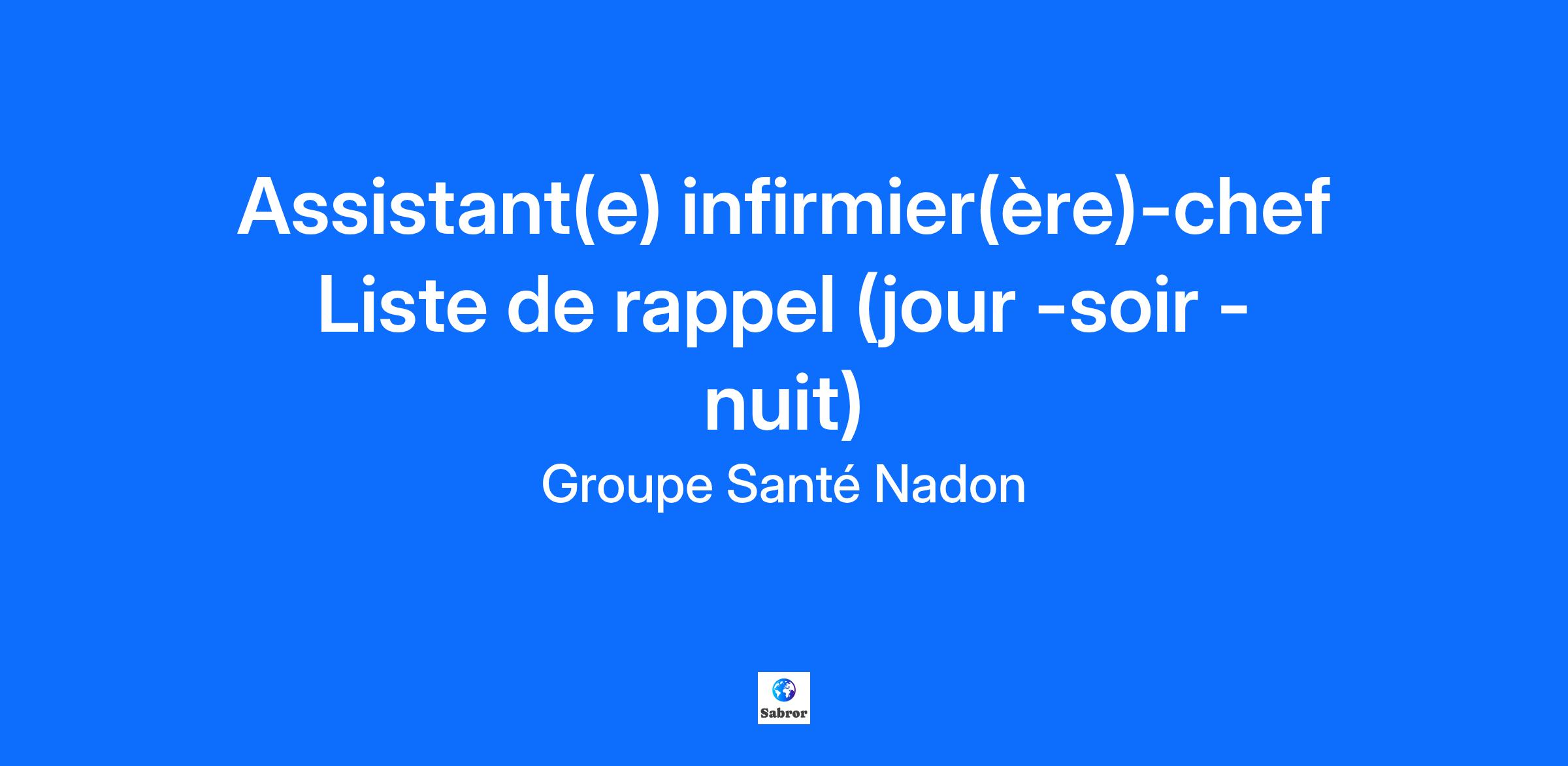 UNE CARRIÈRE QUI FAIT DU BIEN ! Travailler avec des personnes bienveillantes et bien outillées, ça fait du bien ! Choisir le Groupe Santé Nadon, c’est choisir un milieu de travail stimulant et des horaires intéressants. En plus de travailler dans une ambiance chaleureuse, vous pourrez vous réaliser à l’intérieur de notre approche « milieu de vie », où chaque résident est traité en fonction de ses goûts, ses besoins, ses intérêts et ses croyances. Ici, vos idées sont les bienvenues ! DESCRIPTION SOMMAIRE DU POSTE Sous la supervision de son supérieur immédiat, l’assistante infirmière chef assume un rôle à la fois clinique et administratif. Elle doit intégrer la vision globale de l’organisation dans ses prises de décision et le choix de ses interventions. Dans une approche « Milieu de Vie», ses principales responsabilités incluent : Gestion des soins : Assumer la responsabilité d’un ensemble de soins infirmiers et collaborer à l’administration des procédures thérapeutiques, préventives et diagnostiques. Planifier, superviser et coordonner les activités d'un service pour toute la durée de son service. Mobilisation de l’équipe : Rassembler les membres de l’équipe, y compris le nouveau personnel, autour d’un plan d’intervention concerté, répondant aux attentes et besoins personnalisés des résidents, tout en respectant leurs capacités. Agir comme personne-ressource auprès de l'équipe de soins pour la planification, la distribution et l'évaluation des soins infirmiers. Engagement des familles : Encourager la participation des familles et des proches dans le processus de soins. Vérifier et évaluer la qualité des interventions réalisées par l’équipe et assurer la continuité des soins grâce à une communication efficace. Leadership : Exercer un leadership mobilisateur au sein de l’équipe, en faisant preuve d’expertise et de professionnalisme, et en adoptant des comportements qui reflètent l’écoute, le respect, la compréhension et l’empathie. Collaborer à l'orientation, à l'identification des besoins de formation et à l'évaluation du rendement du personnel, y compris le nouveau personnel. Rôle administratif : Assumer des responsabilités spécifiques pour garantir la qualité et la sécurité des soins et services offerts dans l’établissement. Remplacer l’infirmière chef d’unité lors de ses absences régulières, telles que les congés hebdomadaires, fériés, annuels, et autres absences n'excédant pas un mois continu. Participer à l'organisation de la liste de rappel et coordonner les remplacements nécessaires pour assurer la continuité des soins. Participation à la programmation et à l'évaluation : Collaborer à la conception, l'implantation, l'évaluation et à la révision de la programmation d'un service et d'outils cliniques et d'évaluation de la qualité des soins. Exercer, lorsque requis, les fonctions habituelles d'infirmier ou d'infirmière. Pour nous, le bien-être des résidents et de leurs proches est au cœur de notre mission ! EXIGENCES ET COMPÉTENCES RECHERCHÉES Voici les critères essentiels que nous recherchons pour ce poste : Intérêt et vocation : Avoir un véritable intérêt et une vocation pour le bien-être de la clientèle âgée. Travail d’équipe : Posséder un bon sens de l’équipe et de l’organisation. Analyse et jugement : Avoir une bonne capacité d’analyse, un jugement pertinent et savoir travailler en interdisciplinarité. Gestion des conflits : Être capable de gérer des situations conflictuelles. Valeurs humaines : Partager nos valeurs d’écoute, de bienveillance, de respect et d’empathie. Formation : Détenir un DEC en soins infirmiers ou un BAC en sciences infirmières. Permis d'exercice : Avoir un permis d’exercice de l’OIIQ. Formations à jour : S’assurer que vos formations RCR et PDSB sont à jour. Expérience : Posséder au moins un an d’expérience pertinente, incluant un minimum d’un an en milieu de courte durée ou deux ans en gériatrie active, ainsi qu’au moins un an dans un centre d’hébergement de soins de longue durée. Orientation client : Être axé sur l’expérience client, en incarnant nos valeurs d’humanité, de sécurité, d’organisation et de dynamisme. Compétences interpersonnelles : Avoir la capacité d’analyser des situations, de porter un jugement pertinent et d’établir des relations interpersonnelles positives et stimulantes. Leadership : Faire preuve de leadership et d’un sens de l’organisation. Langues : Maîtriser le français (parlé et écrit), l’anglais est un atout Informatique : Avoir une connaissance pratique des outils informatiques. PRIVILÈGES ET AVANTAGES En plus des salaires offerts par le réseau public de la santé nous proposons un environnement de travail unique : Engagement vers un statut d’Employeur de Choix Agréé avec mention d’honneur par Agrément Canada Démarche Expérience Client en pleine réalisation Programmes et activités de reconnaissance Programme d’aide aux employés (PAE) Taux de satisfaction au travail de 97 % (Sondage Pulse - Agrément Canada) Stationnement gratuit et proximité des transports en commun Bâtiment récent avec des équipements à la fine pointe de la technologie INFORMATIONS COMPLÉMENTAIRES Prime de soir, de nuit et de fin de semaine. Salaire TE 2489 : 29.81$ à 51.09 $ l’heure selon expérience. La fonction demande à être disponible pour un minimum de 3 journées par semaine avec une fin de semaine sur deux et sur deux quarts de travail. NOMBRE D’HEURES Variable selon les besoins de la liste de rappel PRÊT À CHOISIR UNE CARRIÈRE QUI FAIT DU BIEN ? Postulez ici ou au https://www.groupesantenadon.com/fr/carrieres/ L'utilisation exclusive du genre féminin a été adoptée afin de faciliter la lecture et n'a aucune intention discriminatoire.