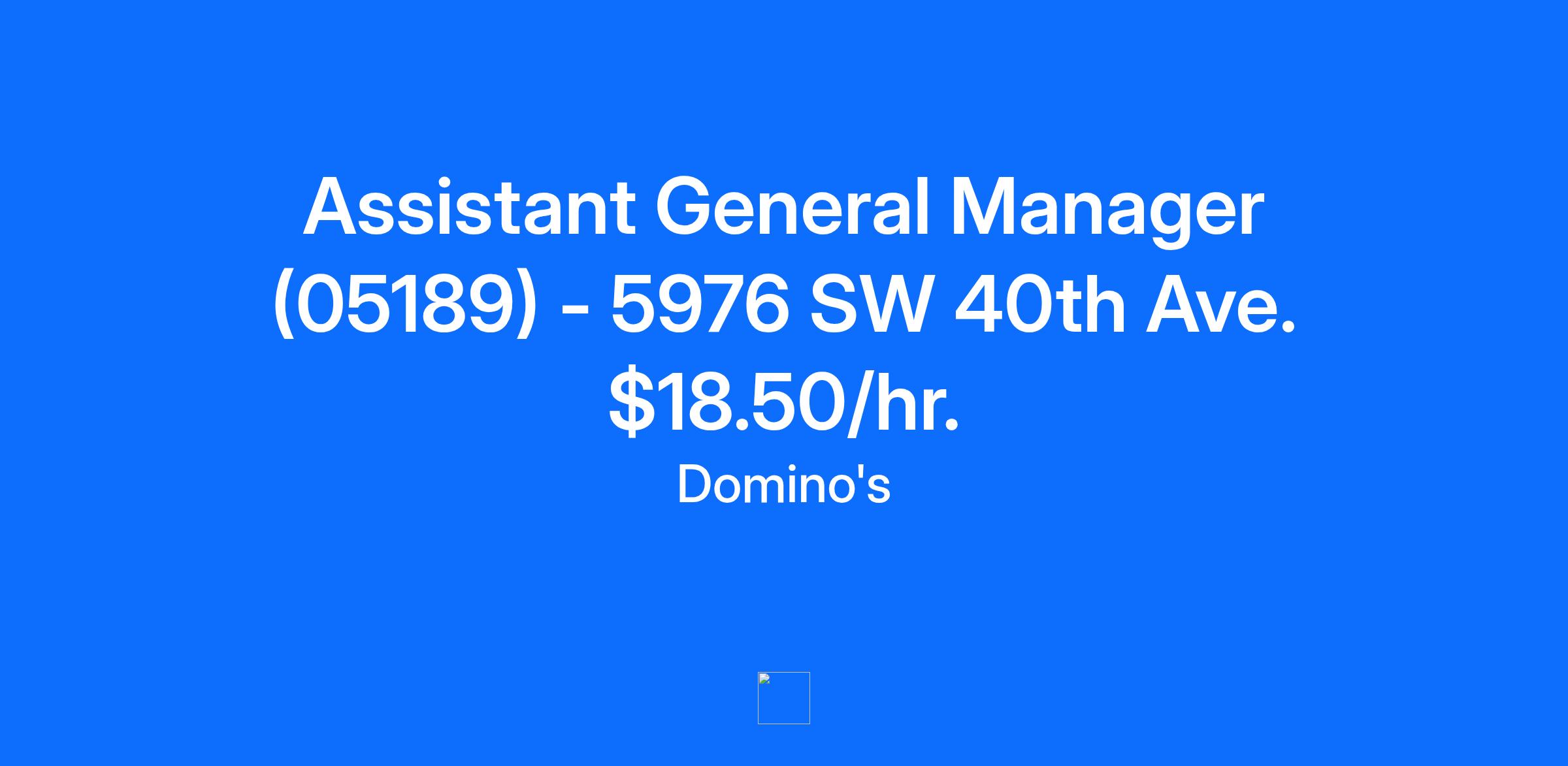 Company Description MAKE GREAT PIZZA — AND MORE — POSSIBLE Be a part of the world's #1 Pizza company and watch your career grow! Job Description Assistant General Managers are responsible for cost controls, inventory control, cash control, and customer relations while they are working a shift. What we offer: A safe, rewarding, and fast paced working environment Competitive hourly rate and benefits package Training with an industry leading brand Excellent career opportunities Awesome discounts on menu items! Qualifications What we’re looking for in our Assistant General Managers: Prior leadership experience preferred Assist with basic operations procedures Experience in employee development Ability to demonstrate team member and food safety protocols Excellent customer service skills Ability to operate and troubleshoot technology Minimum Job Requirements (see the Job Description for full details): Must be at least 18 years of age Additional Information Domino's offers: Paid Holidays and Vacation Positive work environment Benefits on the first day of employment! 401k matching contributions 15% off the purchase price of the stock Company bonus Referral bonuses Career growth! Domino's Team USA stores value honesty, transparency, and accountability, and we want exceptional people like you to join our team! We have continued to prove we “Put our People First” by making sure our work environment is safe and provides stability for our team members. All your information will be kept confidential according to EEO guidelines. Job Category Org: Store Assistant Manager Location Name - Location Code: Corporate Store 05189-05189