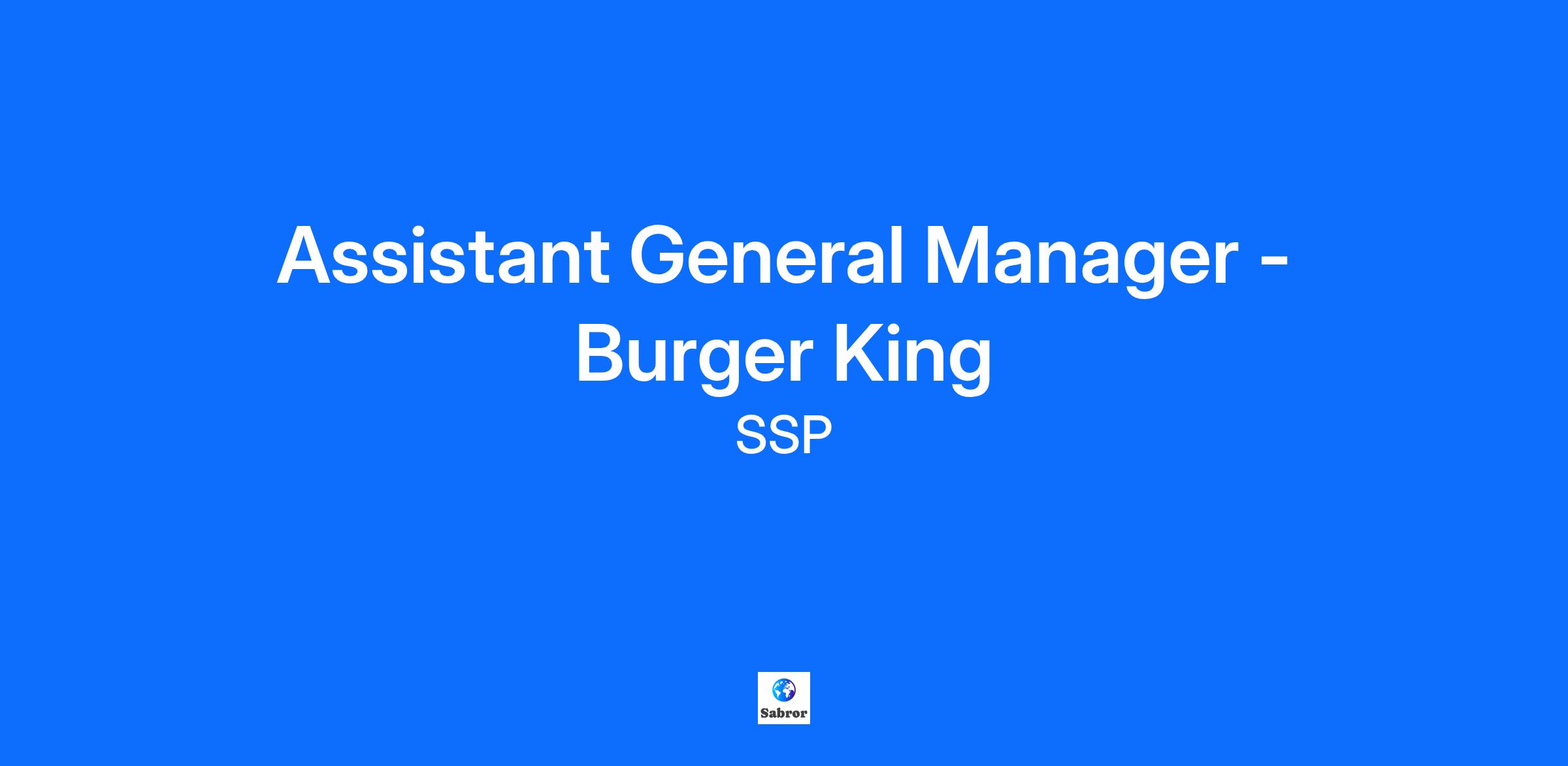 About the Role Assistant General Manager – Burger King Stansted Airport If you're passionate about food and travel, you've come to the right place. We are the Global food travel experts, and we have something delicious for everyone. Whether you're flying, taking a train, or just passing by, we have the best food and drink options for you. We work with more than 500 brands, from our own creations like Upper Crust, Millie’s Cookies, Café Local and Beer House, to well-known franchises like M&S, Starbucks, Burger King, The Breakfast Club & BrewDog. This role is Full time (40 hours pw worked 5 days of 7) you will be required to work flexibly across weekdays, weekends and bank holidays. As Assistant General Manager, you'll be rewarded with a competitive salary of £33,000 p.a and enjoy: Colleague discount - up to 50% Free parking Friends & Family discount 20% (T&C apply does not apply to all brands) Flexible working Management bonus scheme Help at Hand - which includes access to digital GPs, 24/7 helpline for you & family Wellbeing support through Retail Trust and family-friendly leave Variety of networks to support you, Neurodiversity, LGBTQ and many more Life assurance Apprenticeships and ongoing development opportunities Share incentive plan (SIP) We're looking for an inspirational Assistant General Manager to join our team. You'll have the opportunity to make a difference every day, as you support your manager and team to deliver exceptional customer service and operational excellence. As Assistant General Manager you’ll: Be passionate and dedicated and a strong support to the General Manager. Have the highest standards of brand quality and safety for our customers and team. Be an inspiration to the team to deliver outstanding customer service and loyalty. Mentor and train the team to grow and excel. Have proven experience and confidence in leading a team. Set an example of excellent service skills. Communicate effectively and clearly. Be adaptable and resilient in any situation. SSP are proud to be an equal-opportunity employer that seek to recruit and retain the most talented individuals from a variety of backgrounds, skills and perspectives. Start the best part of your journey with us!