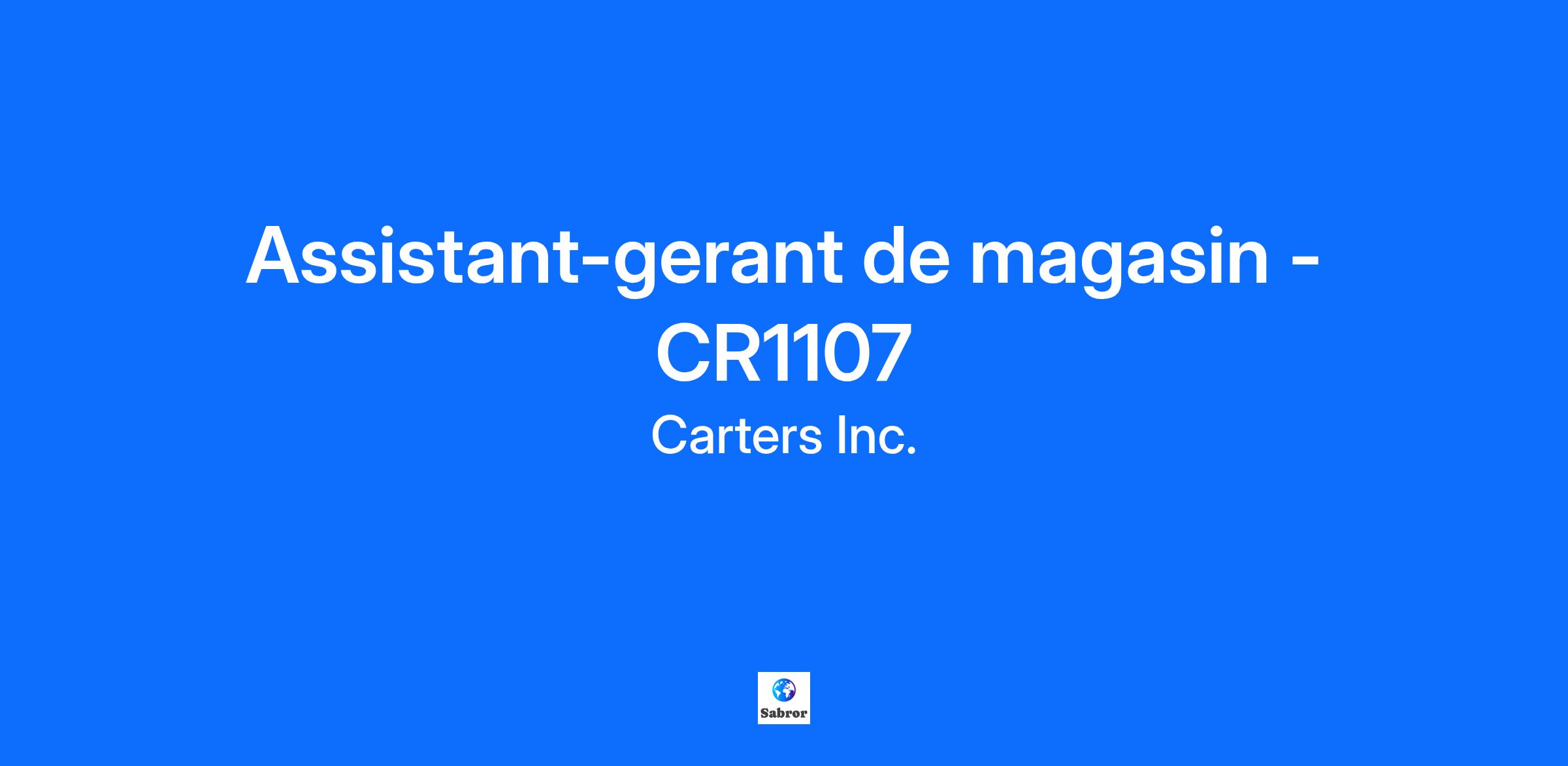 If you are a CURRENT Carter’s employee, do not apply via this external application. Search "Browse Jobs" in Workday to apply internally. Aimez ce que vous faites. Les carrières chez Carter’s. En tant qu’aide-gérant(e) en magasin, vous serez à l’avant-plan de la marque pour des familles en croissance. Vous accueillerez de nouveaux parents et grands-parents, les présenterez à nos articles de base pour nourrisson, les aiderez à préparer la première journée d’école et tous les petits et grands moments de leur journée parentale. Nous recherchons un gérant qui nourrit un environnement accueillant et inclusif, valorise et optimise les compétences et les talents et qui s’éduque continuellement, ainsi que son équipe, sur les types de produits, les caractéristiques et les avantages. Ce que nous adorons de Carters’s : Carter’s Inc. est le détaillant de vêtements nord-américain le plus important. Il s’adresse exclusivement aux bébés et aux jeunes enfants. Il comprend les marques Carter’s, OshKosh B’gosh, Skip*Hop et Little Planet. Carter’s est la marque de vêtements pour enfants la plus achetée. * Nous sommes devenus un chef de l’industrie en fournissant de la qualité — depuis le premier Original Bodysuit® aux plus récentes carrières que nous offrons à notre équipe. Nous avons maintenu notre culture tricotée serrée depuis notre fondation. Nous investissons dans nos équipes grâce à des programmes de formation et de développement. Nous allons tous réussir ensemble. Une carrière chez Carter’s ne ressemble pas à un emploi. Cela ressemble plus à des connexions entre les clients, les équipes et les familles. L’empathie, le travail d’équipe, la flexibilité et la croissance : tout cela nous rend différent. N’est-ce pas adorable? Les avantages que nous adorons : Des horaires qui s’adaptent à votre vie. Maintenir l’équilibre nous importe, c’est pourquoi votre horaire vous permettra de vous concentrer sur tous les aspects de votre vie. Des avantages et des bonus rendant la vie meilleure, y compris des avantages de santé, des avantages de santé mentale, un rabais de 30 % sur nos marques, des bonus de référence et beaucoup plus! Congés, vacances et congés parentaux payés, ainsi que de l’aide à l’adoption, des cadeaux de jumelage aux œuvres de bienfaisance et beaucoup plus! L’occasion de bâtir des compétences et de grandir en tant qu’individu. Nous fournissons un développement professionnel et personnel pour aider à former votre carrière. Les programmes de développement vous aident à grandir dans votre poste actuel et par la suite. Peu importe si vous nous rejoignez pour une courte période ou pour une carrière à long terme, vous avancerez chez Carter’s. Ce que vous ferez : Mettre en œuvre la gestion de la main-d’œuvre pour garantir une vraie attention client sur le plancher des ventes Accueillir les clients avec un mot de bienvenue chaleureux. Fournir de l’aide par rapport à nos superbes styles de produits, caractéristiques et avantages Nourrir un environnement positif, sécuritaire et inclusif pour les employé(e)s et les client(e)s Modéliser de manière constante les normes de service et l’expérience omnicanale tout en formant les autres au succès Analyser efficacement les affaires et prendre les mesures nécessaires pour améliorer les résultats en communiquant et en stimulant les indicateurs de performance clé (IPC) avec l’équipe Aider le gérant de magasin à bâtir et conserver une équipe réussie en participant dans le recrutement, l’embauche, la formation et le développement de l’équipe du magasin Reconnaître le rendement exceptionnel et rediriger les employé(e)s au besoin Planifier, suivre, analyser et rapporter la complétion des tâches et des résultats financiers à l’aide des outils de l’entreprise Être partenaire avec le gérant de magasin pour planifier et mettre en œuvre les normes de marchandisage, la planification promotionnelle, la mise en œuvre du démarquage et le placement des produits Bâtir la fidélisation des clients par le biais de programmes commandités par l’entreprise Réduire la perte par le biais d’un niveau cohérent de service à la clientèle, d’éducation et de contrôles opérationnels Les qualités que nous adorons chez un(e) candidat(e) : Un esprit positif et orienté vers les solutions Des compétences de communication verbale et écrite efficace et professionnelle Compétences démontrées au niveau du leadership, de la supervision et de l’engagement de la clientèle Compétences réelles en informatique et technologiques (Outlook, Excel, navigation Web, etc.) Expérience minime d’1 an dans la gestion de vente au détail ou connexe Un diplôme d’études secondaires Vous pouvez : Lever 18,1 kg (40 lb) au besoin, avec de nombreuses occasions où vous devrez vous pencher, baisser, étirer, pousser et tirer Se tenir debout ou marcher pendant des périodes prolongées. Monter et descendre une échelle Être disponible sur des horaires qui peuvent comprendre des jours, des nuits, des fins de semaine et des congés avec un minimum de deux quarts de fermeture par semaine Carter est pour tous : Carter’s est un employeur d’opportunités égales. Il encourage tous les candidats intéressés et qualifiés à postuler. Si vous avez besoin de tout genre d’accommodation, veuillez ne pas hésiter à nous contacter. REMARQUE : Cette description d’emploi n'est pas toute exhaustive. Les tâches décrites peuvent être changées ou réassignées à la discrétion de la gestion. Il peut être requis à l’employé(e) d’effectuer des tâches non indiquées dans la description d’emploi. Carter’s pourrait raisonnablement modifier vos tâches, responsabilités, titre de poste et emplacement. Carter’s | OshKosh is an equal opportunity employer and encourages all interested and qualified candidates to apply. Should you re