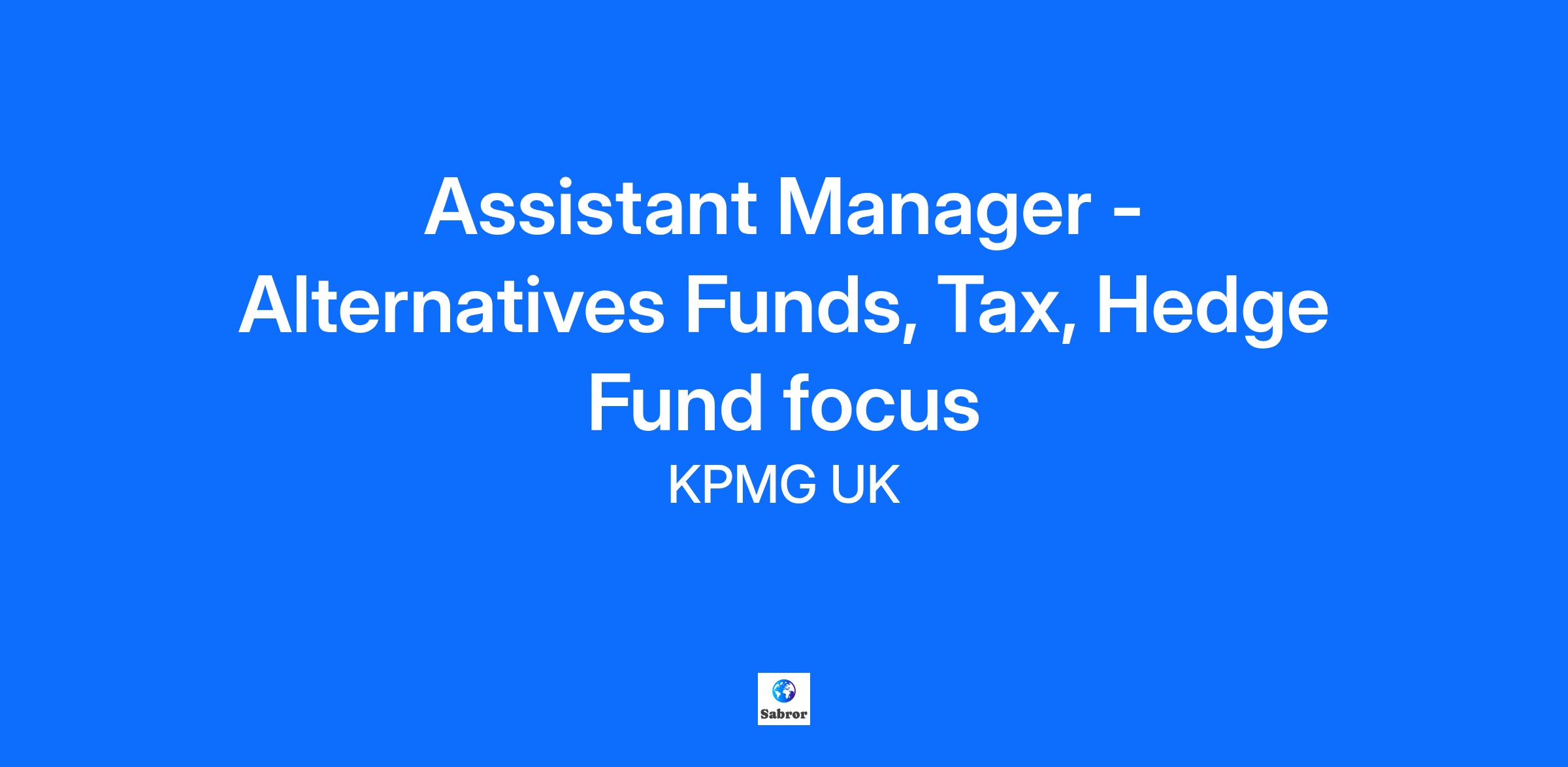 Assistant Manager – Alternatives Funds, Tax, Hedge Fund focus Location: London & Other locations Introduction The KPMG Alternatives team provides high-quality and impactful tax advisory and compliance services to the Alternative Investment Fund sector. This includes private equity, hedge funds, credit funds and real estate funds. Due to our ongoing growth, we have a number of job openings for exceptional candidates. This posting is for a role focussed on Hedge Fund tax and would be well suited to a driven and motivated candidate with experience in the Hedge Fund or Alternative Investment Funds sector, or someone with a keen interest in developing this as a specialism. We are also hiring for other roles across the Alternatives tax team – see separate postings. Key responsibilities As an Assistant Manager, your responsibilities will include: Preparing tax advice on a wide range of UK and international tax matters relevant to the Hedge Fund sector, including UK corporation tax and partnership tax matters. This will require undertaking detailed technical research of legislation, case law and HMRC manuals. If you don’t have a background in Hedge Funds or Alternative Investment Funds, we will support you in learning about the sector and applying your existing UK corporation tax and partnership tax knowledge. Reviewing corporation tax and partnership tax returns that have been prepared by team members, identifying any errors or changes, and getting them ready for final review and sign-out. Attending client meetings and calls, including playing an active role in the discussion of tax technical topics. Interacting with HMRC, including by telephone and letter. Build long-term trusted client relationships with the clients that you are aligned to. This will include understanding the client’s business and pro-actively think about their needs, in order to identify other KPMG services that they may benefit from. Working collaboratively with other members of the Alternatives team in the UK, as well as with other KPMG offices globally. Adapting your style and approach when needed in order to achieve the best possible outcome. Supporting the team with business development initiatives, which may include researching potential clients, preparing flyers or other marketing material, and preparing for seminars and in-person events. Relevant skills and experience for this role The successful candidate will be able to demonstrate all of the following attributes: Qualified as a Chartered Accountant (CA or ACA), Chartered Tax Advisor or solicitor (or international equivalent). Career drive to develop a specialism in Hedge Fund taxation and to be part of a fast-growing, high-performing Alternatives tax team. Positive approach to personal development and motivation for progression to Manager grade and beyond, as your experience and knowledge develops. Track record of delivering high-quality corporate tax advisory and compliance services to clients. Experience in the Hedge Fund or Alternative Investment Funds sector is preferred, but this is not essential. Ability to manage competing deadlines by planning ahead and prioritising, and communicating effectively with colleagues and clients, including when under pressure. Strong level of UK corporation tax knowledge and the ability to communicate complex rules and ideas in a simple way, both verbally and in writing. Delivers written work to a consistently high standard, with a strong attention to detail. Why choose KPMG? At KPMG you can be a part of something big and are welcome to come as you are. Through the talent of our 16,000 people in the UK, we make a meaningful and positive difference for clients, people and the communities we serve. We’ve been doing this for more than 150 years. We offer flexible (hybrid) working, competitive remuneration, and exceptional coaching and developmental opportunities. You will benefit from the opportunity to continuously develop your tax technical, client relationship and people management skills, in an environment which is both supportive and stimulating. We offer both full time and part time roles with flexible working arrangements which can include early or late starts to fit around other commitments, shorter working days and seasonal working arrangements. We would be happy to discuss your own requirements and our range of flexible working arrangements in more detail, should that be of interest. To get the very best outcomes for our clients and our communities, we want different perspectives and diversity of thought. We believe that gender, race or background shouldn't limit anyone's career potential and so we're working hard to recruit and retain people that represent the world we want to work in. We back this up with targets for inclusion, diversity and social equality and we'll hold ourselves accountable to them.