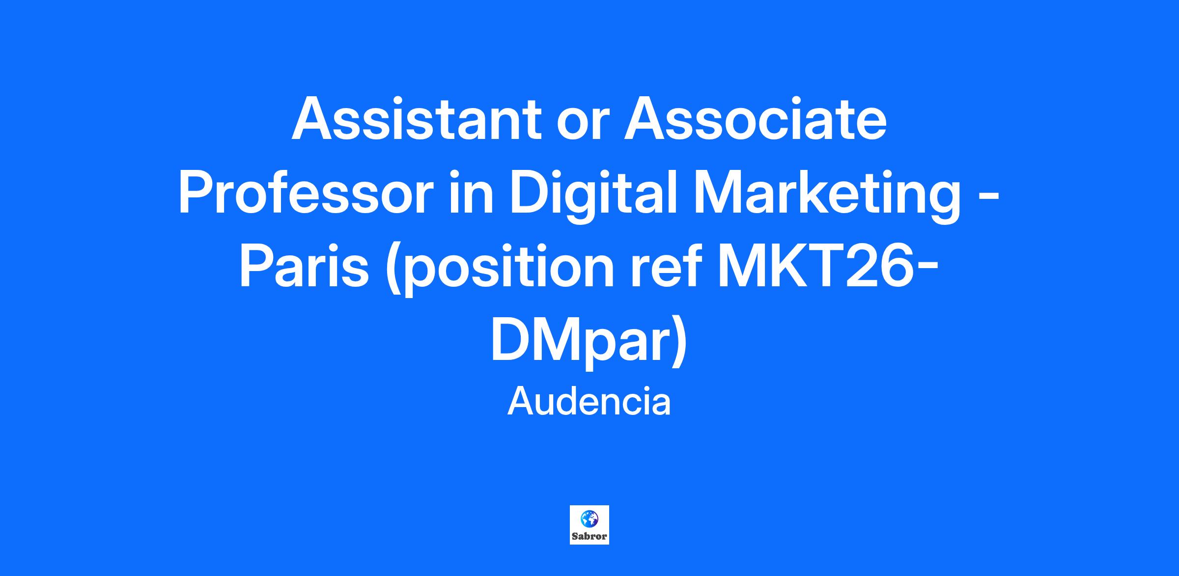 Audencia (www.audencia.com) invites applications for a position as Assistant or Associate Professor in the Marketing department. This is a full-time, permanent position based at our Paris campus (Saint-Ouen), with an expected start date of September 1, 2026. Position requirements We are looking for applicants specialized in social media and digital marketing in terms of both research and teaching. Applicants shall hold a Ph.D. In accordance with our programs and in line with our school strategic axes, we particularly welcome candidates whose scientific and pedagogical activities, in addition to the above-mentioned subjects, are multi-disciplinary and are related with the economic, technological, environmental, social or (geo)-political challenges of today's world. Applicants shall have successfully published in high-impact peer-reviewed international journals. They shall have developed or have the ability to develop a track record in publishing top research articles, to conduct funded projects and, to have an impact through one’s research on the scientific community and beyond. They shall be able to demonstrate their ability to teach effectively a range of undergraduate and graduate courses such as fundamentals of marketing, web analytics, and digital marketing. The teaching associated with the position will be in French and English. Position overview The new faculty member will join our Marketing department, consisting of 26 core faculty members. The research and pedagogy axes of the department are: Consumer Centricity, Marketing and Society, Digital and Data Driven Marketing’, and Transformation of Retail. The department manages several programs such as an MSc in Data Science and AI for Marketing and an MSc in Digital Marketing and Strategy. Salary is negotiable and commensurate with potential and experience. There are a number of benefits attached to the contract including an individual research or pedagogical budget, the possibility to apply for additional internal funding opportunities, performance-based bonuses and family medical coverage. The School Audencia is triple accredited (AACSB, EQUIS and AMBA) and one of the leading European and French business schools. The school offers a wide range of programs including Grand Ecole Program, Bachelors, BBAs, MScs, MBA, Executive MBA, Doctorate in Business Administration and Executive Education Programmes, with 186 core faculty members from 37 countries. The school is very dynamic, has grown significantly in the most recent years and will continue to do so with new positions opening in the future. The school has campuses in France and abroad. This position is primarily based in Paris (Saint-Ouen) but the successful candidate must also be willing to teach across campuses. Application Candidates should submit a cover letter, a recent curriculum vitae (including a complete list of publications), recent teaching evaluations, and the contact information of three referees. Applications must be addressed to Prof. Thibaut BARDON, Associate Dean for Faculty & Research, and submitted exclusively through this webpage. Review of applications will begin immediately and will continue until the position is filled. For more information: Marketing Head of Department: Prof. Claire-Lise ACKERMANN, clackermann@audencia.com Marketing Head of Research: Prof. Koen DE BOCK, kdebock@audencia.com Audencia Marketing department: https://www.audencia.com/en/faculty-research/departments/marketing