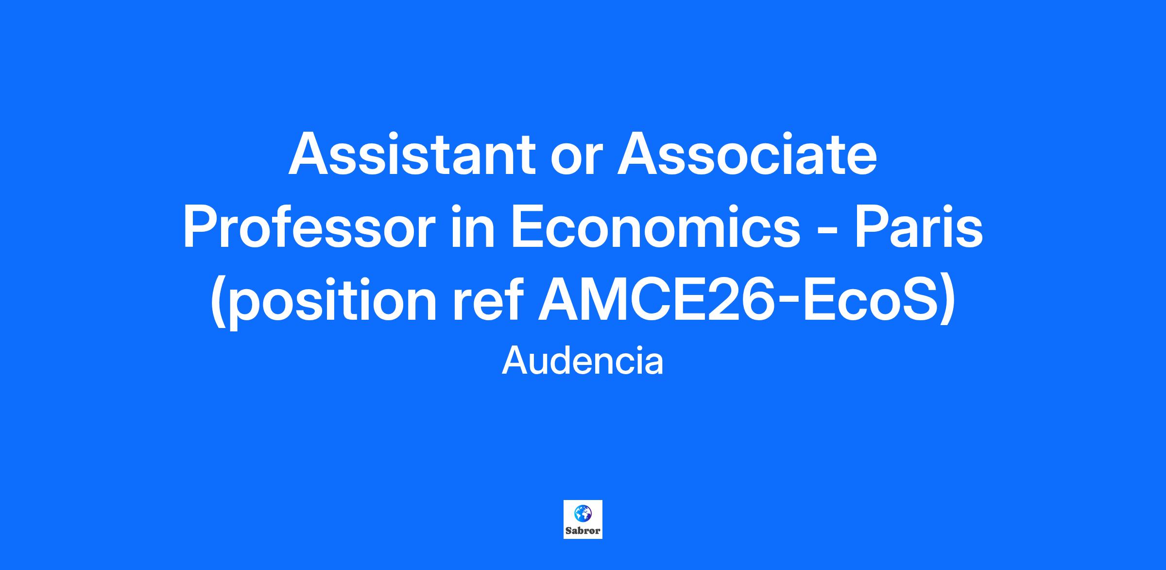 Audencia (www.audencia.com) invites applications for a position as Assistant Professor in the Accounting, Management Control and Economics (AMCE) department. This is a full-time, permanent position based at our Paris campus (Saint-Ouen), with an expected start date of September 1, 2026. Position requirements We are looking for applicants specialized in Economics in terms of both research and teaching. Applicants shall hold a Ph.D. In accordance with our programs and in line with our school strategic axes, we particularly welcome candidates whose scientific and pedagogical activities, in addition to the above-mentioned subjects, are multi-disciplinary and are related with the economic, technological, environmental, social or (geo)-political challenges of today's world. Applicants shall be able to demonstrate their ability to publish in high-impact peer-reviewed international journals. They shall have developed or have the ability to develop a track record in publishing top research articles and to have an impact through one’s research on the scientific community and beyond. They shall be able to demonstrate their ability to teach effectively a range of undergraduate and graduate courses such as macro/micro-economics, business economics and/or international economics. The teaching associated with the position will be in English. Position overview The new faculty member will join our AMCE (Accounting, Management Control and Economics) department, consisting of 26 core faculty members. The research and pedagogy axes of the department are: Accounting Data Analytics, Sustainability issues in Accounting and Management Control and Economics. The department manages several programs such as MSc in Data management for Finance, Auditing Major, BBA Big Data and Management and the Finance/Management Control specialisation in the 3rd year of the Bachelor in Management. Salary is negotiable and commensurate with potential and experience. There are a number of benefits attached to the contract including an individual research or pedagogical budget, the possibility to apply for additional internal funding opportunities, performance-based bonuses and family medical coverage. The School Audencia is triple accredited (AACSB, EQUIS and AMBA) and one of the leading European and French business schools. The school offers a wide range of programs including Grand Ecole Program, Bachelors, BBAs, MScs, MBA, Executive MBA, Doctorate in Business Administration and Executive E ducation Programmes, with 186 core faculty members from 37 countries. The school is very dynamic, has grown significantly in the most recent years and will continue to do so with new positions opening in the future. The school has campuses in France and abroad. This position is primarily based in Paris (Saint-Ouen) but the successful candidate must also be willing to teach across campuses. Application Candidates should submit a cover letter, a recent curriculum vitae (including a complete list of publications), recent teaching evaluations, and the contact information of three referees. Applications must be addressed to Prof. Thibaut BARDON, Associate Dean for Faculty & Research, and submitted exclusively through this webpage. Review of applications will begin immediately and will continue until the position is filled. For more information: AMCE Head of Department: Prof. Myriam Mincheneau, mmincheneau@audencia.com AMCE Head of Research: Prof. Ramzi Benkraiem, rbenkraiem@audencia.com Audencia AMCE department: https://www.audencia.com/en/faculty-research/departments/accounting-management-control-economics