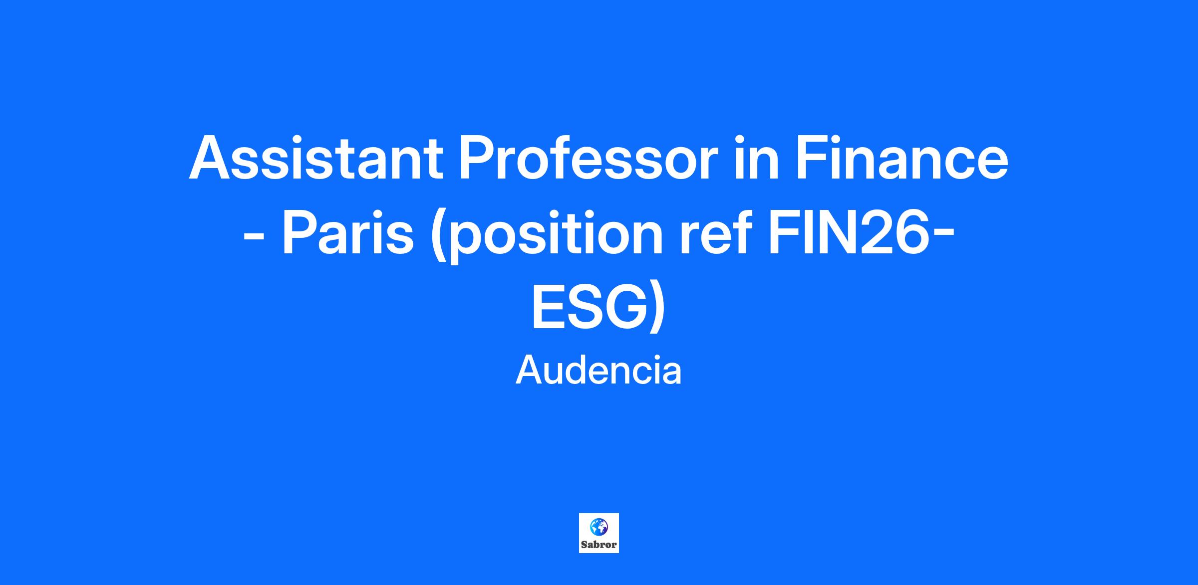 Audencia (www.audencia.com) invites applications for a position as Assistant Professor in the Finance department. This is a full-time, permanent position based at our Paris campus (Saint-Ouen), with an expected start date of September 1, 2026. Position requirements We are looking for applicants specialized in Finance in terms of both research and teaching. Applicants shall hold a Ph.D. In accordance with our programs and in line with our school strategic axes, we particularly welcome candidates whose scientific and pedagogical activities, in addition to the above-mentioned subjects, are multi-disciplinary and are related with the economic, technological, environmental, social or (geo)-political challenges of today's world. Applicants shall have successfully published in high-impact peer-reviewed international journals. They shall have developed or have the ability to develop a track record in publishing top research articles, to conduct funded projects and, to have an impact through one’s research on the scientific community and beyond. They shall be able to demonstrate their ability to teach effectively a range of undergraduate and graduate courses such as ESG Investment, Alternative Investment or Smart Beta Investing. The teaching associated with the position will be in English. Position overview The new faculty member will join our Finance department, consisting of 35 core faculty members. The research and pedagogy axes of the department are: Corporate Finance and Banking, Financial Markets, Data Analysis and Financial Innovation. The department manages several programs, such as a Specialized Master in Financial Strategy and Responsible Investments, and three Masters of Science: one in Corporate Finance and Investment Banking, one in Financial Analysis and Investment Management, and one in Financial Markets and Sustainable Investments. Salary is negotiable and commensurate with potential and experience. There are a number of benefits attached to the contract including an individual research or pedagogical budget, the possibility to apply for additional internal funding opportunities, performance-based bonuses and family medical coverage. The School Audencia is triple accredited (AACSB, EQUIS and AMBA) and one of the leading European and French business schools. The school offers a wide range of programs including Grand Ecole Program, Bachelors, BBAs, MScs, MBA, Executive MBA, Doctorate in Business Administration and Executive Education Programmes, with 186 core faculty members from 37 countries. The school is very dynamic, has grown significantly in the most recent years and will continue to do so with new positions opening in the future. The school has campuses in France and abroad. This position is primarily based in Paris (Saint-Ouen) but the successful candidate must also be willing to teach across campuses. Application Candidates should submit a cover letter, a recent curriculum vitae (including a complete list of publications), recent teaching evaluations, and the contact information of three referees. Applications must be addressed to Prof. Thibaut BARDON, Associate Dean for Faculty & Research, and submitted exclusively through this webpage. Review of applications will begin immediately and will continue until the position is filled. For more information: Finance Head of Department: Prof. Etienne Redor, eredor@audencia.com Finance Head of Research: Prof. Aristogenis Lazos, alazos@audencia.com Audencia Finance department: https://www.audencia.com/en/faculty-research/departments/finance