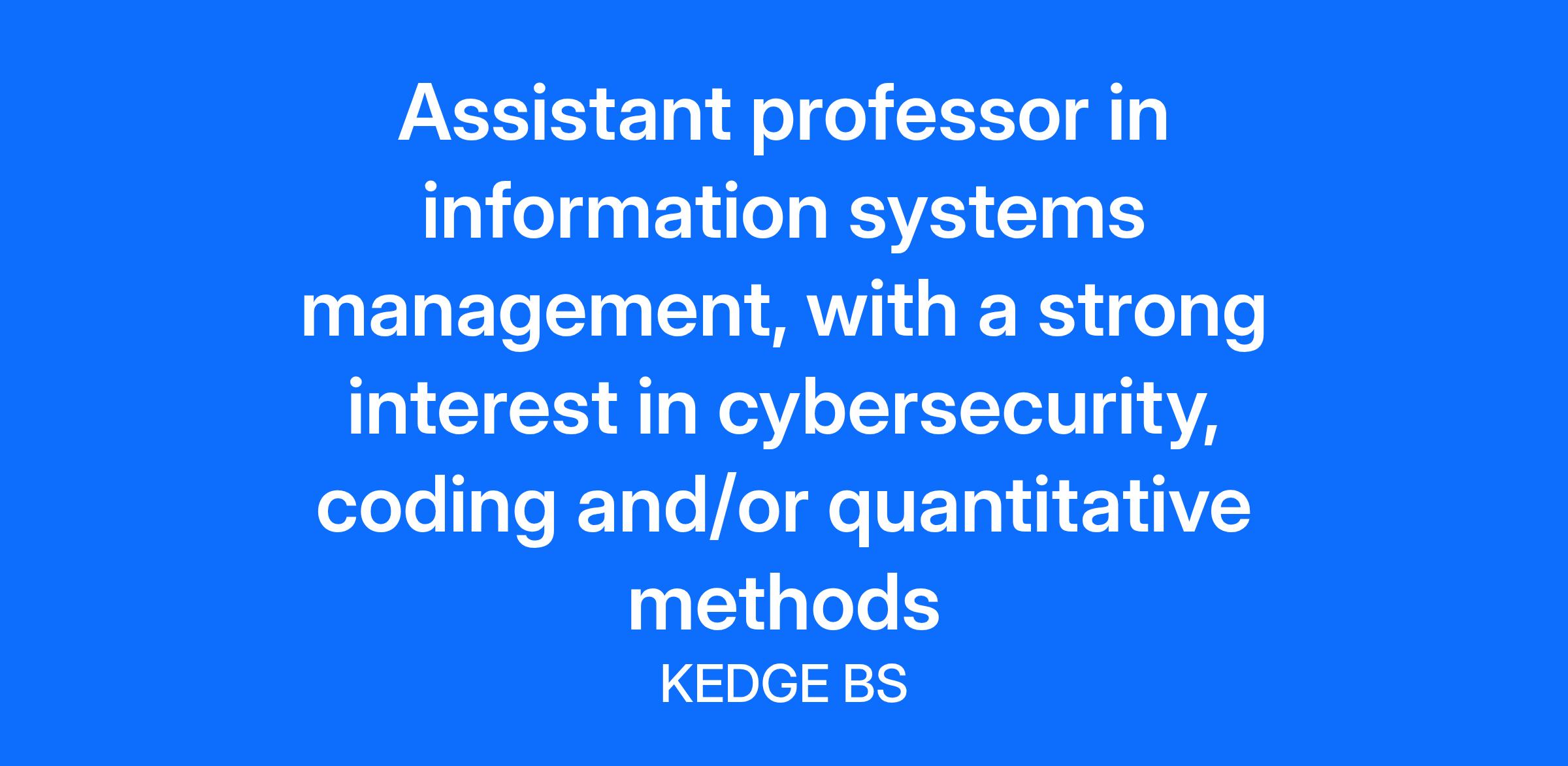 Assistant professor in information systems management, with a strong interest in cybersecurity, coding and/or quantitative methods (Campus of Paris) Operations Management and Information Systems Department Department KEDGE Business School is a vibrant business school with 4 campuses in France (Paris, Bordeaux, Marseille and Toulon), 5 international campuses (2 in China, 2 in Africa, and 1 in India), as well as 4 associated campuses in France (Avignon, Bastia, Bayonne, and Mont-de-Marsan). KEDGE Business School offers an international environment, which includes 16,000 students (32% foreign students), 220 full-time faculty members (46% of whom are international) and close to 370 international academic partners. Ranked 34th amongst European Business Schools and 28th worldwide for the Executive MBA by the Financial Times, KEDGE Business School belongs to the elite 1% of business schools worldwide accredited by AACSB, EQUIS, and AMBA, and is a member of the French Conférence des Grandes Écoles. The Operations Management and Information Systems Academic Department (MOSI) at KEDGE Business School brings together professors from disciplines including procurement management, supply chain management, quality management, and information systems management. These professors combine theoretical and practical teaching with the aim of providing students with specific knowledge, as well as giving them global and cross-disciplinary insight into supply chain management. The MOSI Department invites applications for 1 position at Assistant professor in information systems management, with a strong interest in cybersecurity, coding and/or quantitative methods. Responsibilities : Teaching and educational development (undergraduate, graduate and post graduate level) Publication in academic and professional journals Research Projects with companies or international institutions Participation in national and international calls for projects Student supervision and coaching Profile and skills required : Doctoral degree with a focus on information systems management Teaching experience related to information systems management A strong interest in cybersecurity, coding and/or quantitative methods Experience in Collaborative research projects (H2020, ANR, etc.) is appreciated Ability to teach courses in fluent English (A2/B1 French would be appreciated as well) Procedure of application Interested candidates should provide the following elements : a cover letter containing your motivation for the position an up-to-date curriculum vitae with a list of publications and most recent representative research papers and experience in research projects engineering a teaching statement, including course details and recent course evaluations a research statement two references that can be contacted for doctoral students in their last year of PhD, a letter from the thesis director indicating the state of progress of the PhD and the estimated date of defense Compensations and benefits: Permanent contract/ Full time Status: Executive Salary: to be negotiated /over 13 months / Bonuses (research, executive education, extra hours, etc.) Paid leaves 35 days per year + 15 exemption days per year Others benefits: lunch vouchers + mobility bonus + complementary health insurance Support provided for you moving in France (accommodation search, visa procedures, administrative procedures, French lessons, etc.) Starting date: September 2026 If you have questions regarding the position, please contact: Armand BAJARD Head of MOSI Department All of the School's employees are aware of the issues of inclusiveness, whether it be disability, gender or equal opportunity. Our school attaches key importance to inclusiveness, which is embodied in two of our strategic pillars: sustainability and inclusiveness.