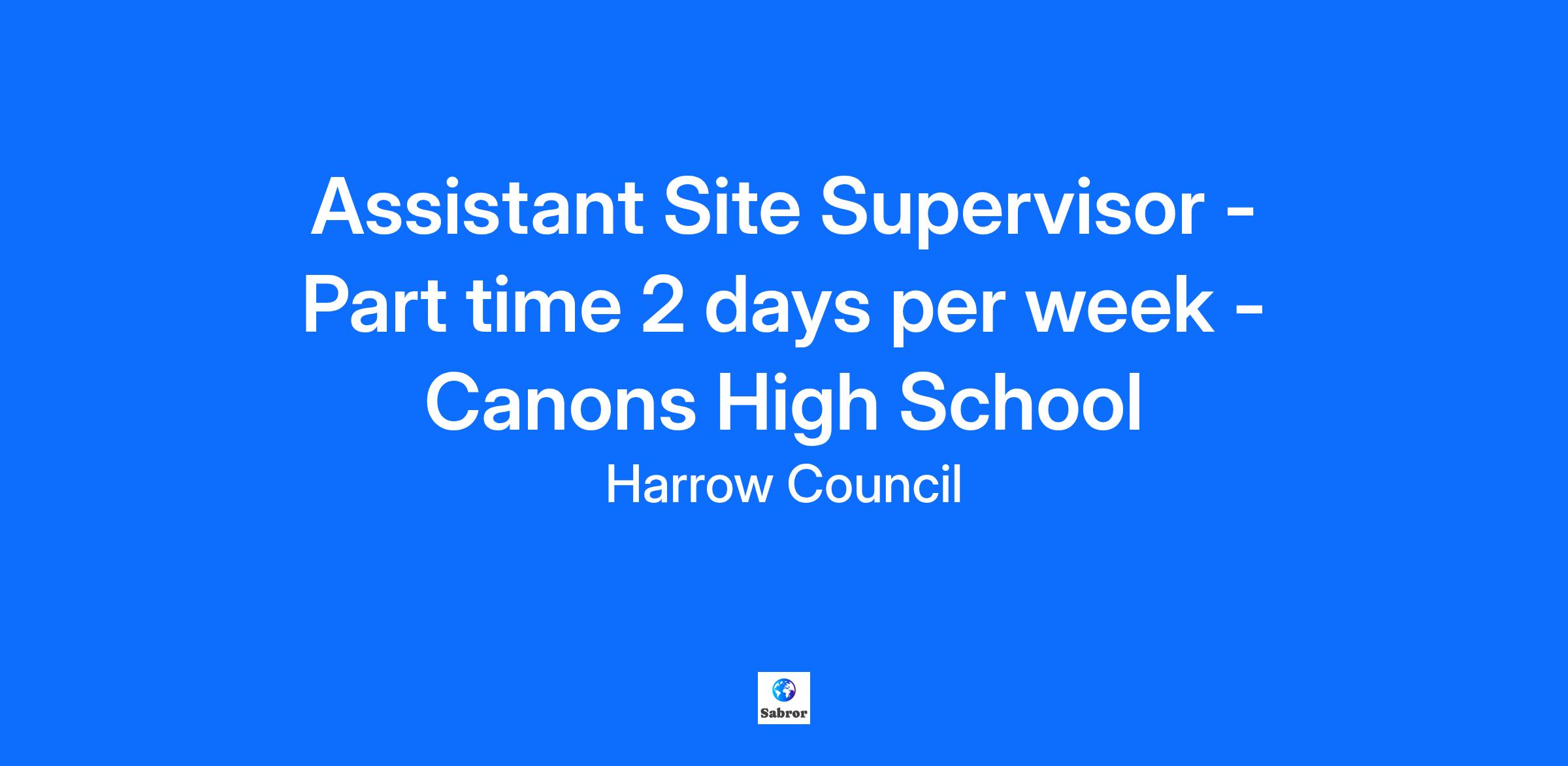 Overview School Canons High School Address: Shaldon Road, Harrow, Middlesex, HA8 6AN Website: https://www.canons.harrow.sch.uk Assistant Site Supervisor - Part Time 2 days per week Salary Range: £12,744 to £13,511 per annum Days required: 2 days per week Hours: 14.4hpw Canons High School is a vibrant and dynamic multicultural school community in Edgware, NW London. Our school is renowned for being one in which people matter. Relationships are strong, opportunities for progression are many and the personal and professional development of adults and children is at the heart of what we do. There is a strong ethos of teamwork and support throughout the school and a commitment to continuing professional development. About you We are seeking to appoint an energetic, resourceful and flexible individual to undertake this key role. To be a key member of the Academy, responsible for the development and general maintenance of the Academy site (including the grounds), ensuring the highest possible standards are delivered. To ensure that the relevant policies are followed in relation to contractors i.e. security, safeguarding, tendering and to provide a safe, secure, clean, warm and stimulating environment for all site users and visitors. Working as part of a team to positively market the school, its facilities and activities to all potential hirers and community groups in order to generate additional income and improve relations How to apply Canons High School is committed to the safeguarding of all children, and all offers of employment are subject to satisfactory references and an enhanced DBS Check. Application forms and job details are available at: https://www.canons.harrow.sch.uk/Community--Partnerships/Work-for-us/ Completed application forms should be returned to: Recruitment@canons.harrow.sch.uk Applications close at date. Tuesday 02nd December 2025 at 12pm. Apply
