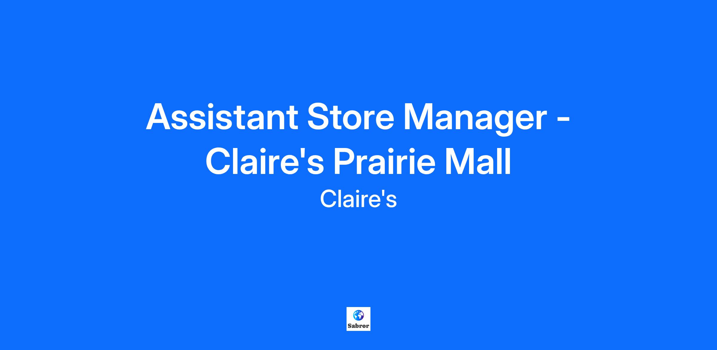 Assistant Store Manager - Claire's Prairie Mall