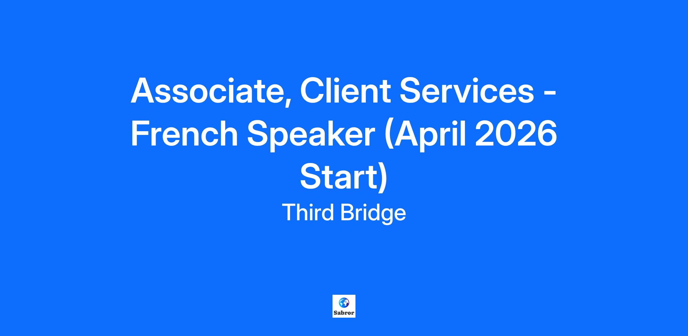 Company Description Start Dates: April, July & September 2026 Want to accelerate your career in a high-energy, commercial role? If you’re competitive, a confident communicator, both on the phone and in person, and hungry to grow fast, our Associate role at Third Bridge could be your next big move. About Third Bridge We connect the world’s top investors and business leaders to the insights that shape investment decisions. From private equity firms and hedge funds to leading consultancies, our clients count on us to find the exact expert they need - fast. Since 2007, we’ve grown to 1,500+ people across global financial hubs, becoming a trusted research partner to thousands of decision-makers. This is where ambitious people come to accelerate their careers. Job Description Why Join Us? We’re offering more than a role - we’re offering a career launchpad. As a Client Services Associate, you’ll develop the commercial awareness and business acumen that open doors to long-term careers in sales, account management, leadership, research and so much more. We promote from within, and our top performers move into management in as little as two years. You’ll thrive if you: Love a fast-paced, target-driven environment Have the confidence to pick up the phone and start conversations with anyone Are naturally curious, quick to learn and love to solve complex problems Build rapport fast and think on your feet Are resilient and motivated to exceed goals What You’ll Do You’ll be at the heart of our business - finding, calling, and engaging industry experts to deliver the insights our clients need, often under extremely tight deadlines. Expect to spend much of your day on the phone, persuading specialists to share their expertise and securing their time for client calls. Day to day, you’ll: Own projects end-to-end, truly understanding the specific client needs and scheduling high-calibre expert calls. Cold call and engage experts across industries, overcoming objections and winning buy-in Work at speed, managing multiple projects and clients at once Learn fast, gaining broad knowledge of markets, business models, and regulations Cross-Sell the full range of Third Bridge services including content library, surveys, advisory, as well as 1-1 calls. What You’ll Gain Commercial edge: Sales, negotiation, relationship-building skills and the opportunity to develop leadership skills very early in your career Client exposure: Work with leading private equity firms, hedge funds, and consultancies Clear progression: Every manager started in the Associate role; promotion possible within 2 years Annual Personal Development Allowance to invest in your growth Would you like to learn more about our Associate position? Take our free virtual job simulation and learn what it is like to work in this role. Qualifications What We’re Looking For Business fluency in French (written and oral - Level C1 and above). You’re intellectually strong, you’re ambitious, have leadership or extracurricular experience, and have shown grit through internships, work experience, or other achievements. Additional Information Salary and Benefits: Total first-year salary is expected to be £51,000–£68,000 (based on average-high performance). This is in line with a £40,000 base salary plus an uncapped performance bonus accessible after your first month. Enjoy comprehensive benefits including health, dental, vision, pension contributions, and more. Appreciate good work-life balance with 25+ vacation days, flex days, and work from anywhere for one month per year Be part of our engaging culture with social events, professional development, and a dynamic, supportive team. Key Words: Graduate Job, Graduate Scheme, Graduate Programme, Entry Level Job, Financial Services, Degree, Early Careers, Communication Skills, Problem-Solving Skills, Drive, Team Work, Management Consultancy Clients, Private Equity Firms Clients, Hedge Fund Clients, Investment Decisions, Cross-Sell, Expert Network, Client Services, Cold Call, Jobs in London, London Jobs, April, French Language Skills